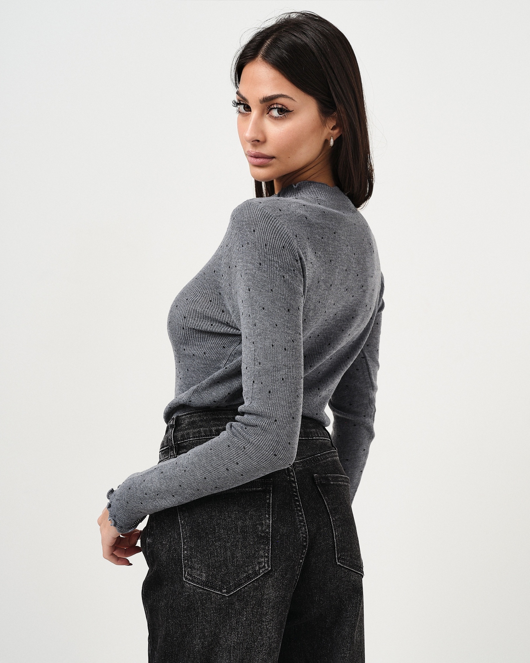 T-shirt slim fit a costine a manica lunga con collo a lupetto a pois.