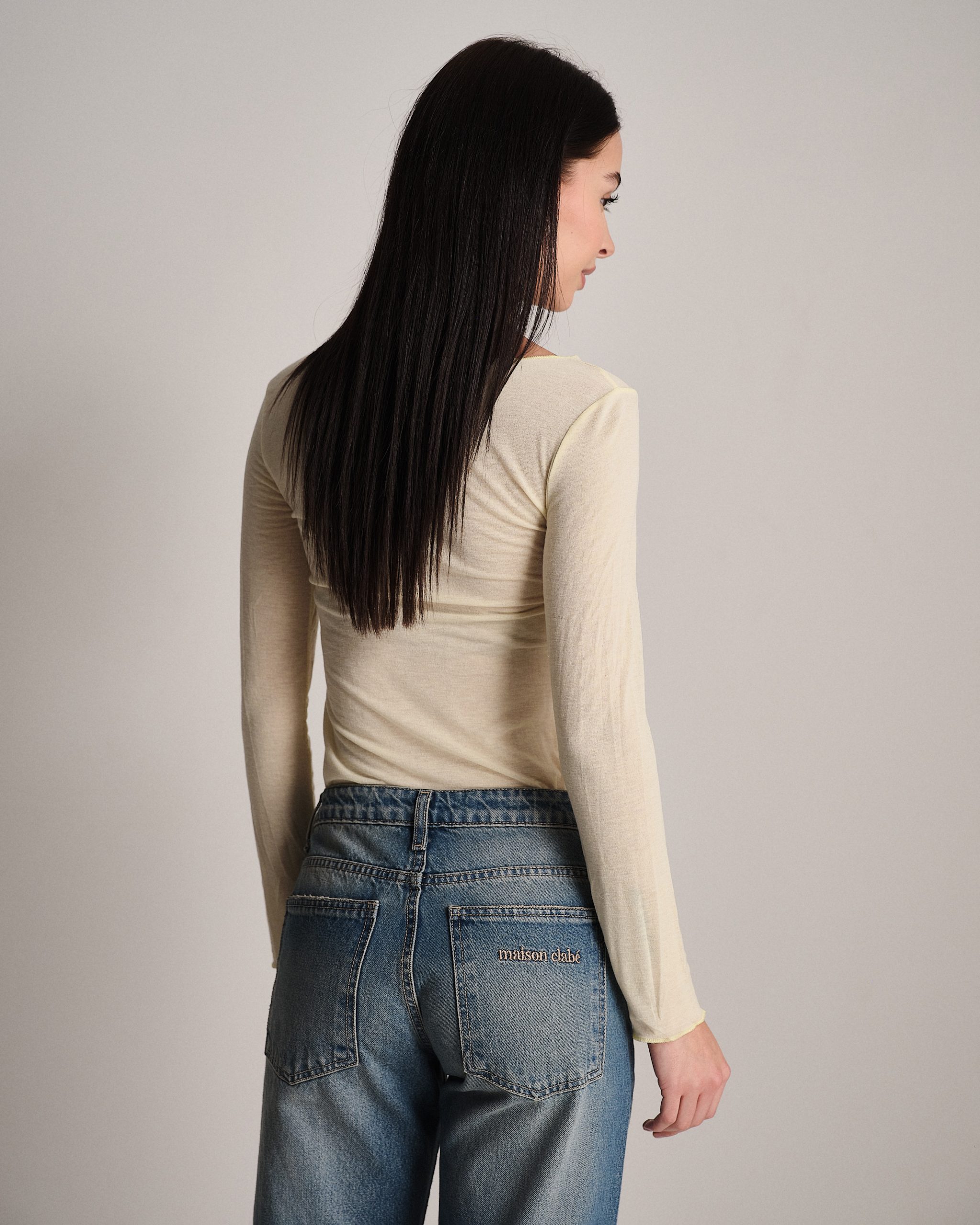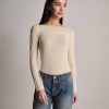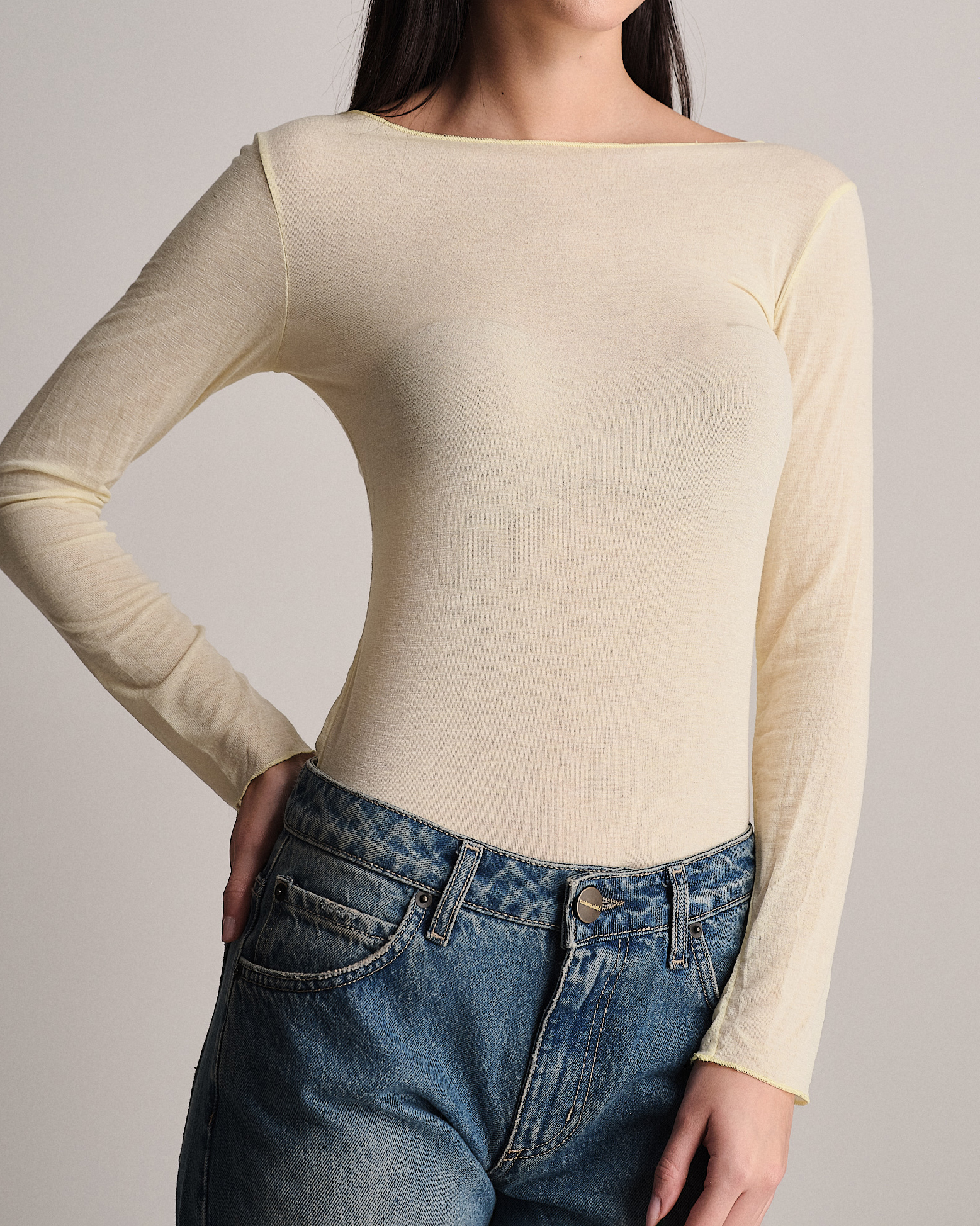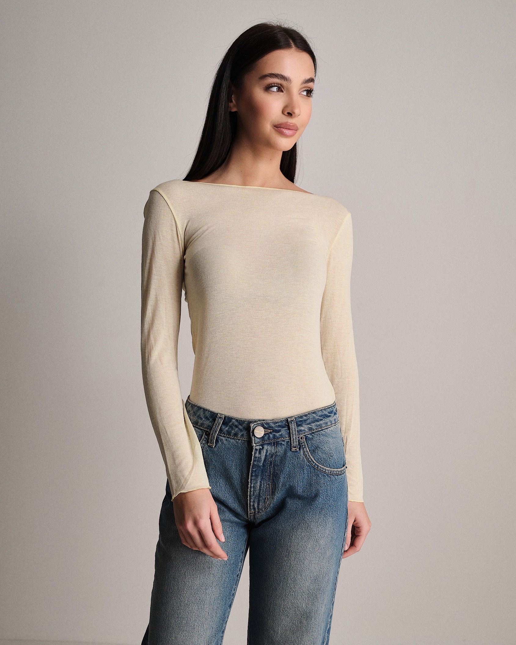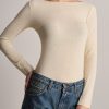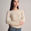 T-shirt leggera a manica lunga con scollatura a barchetta in misto cashmere.