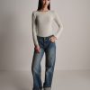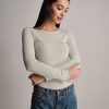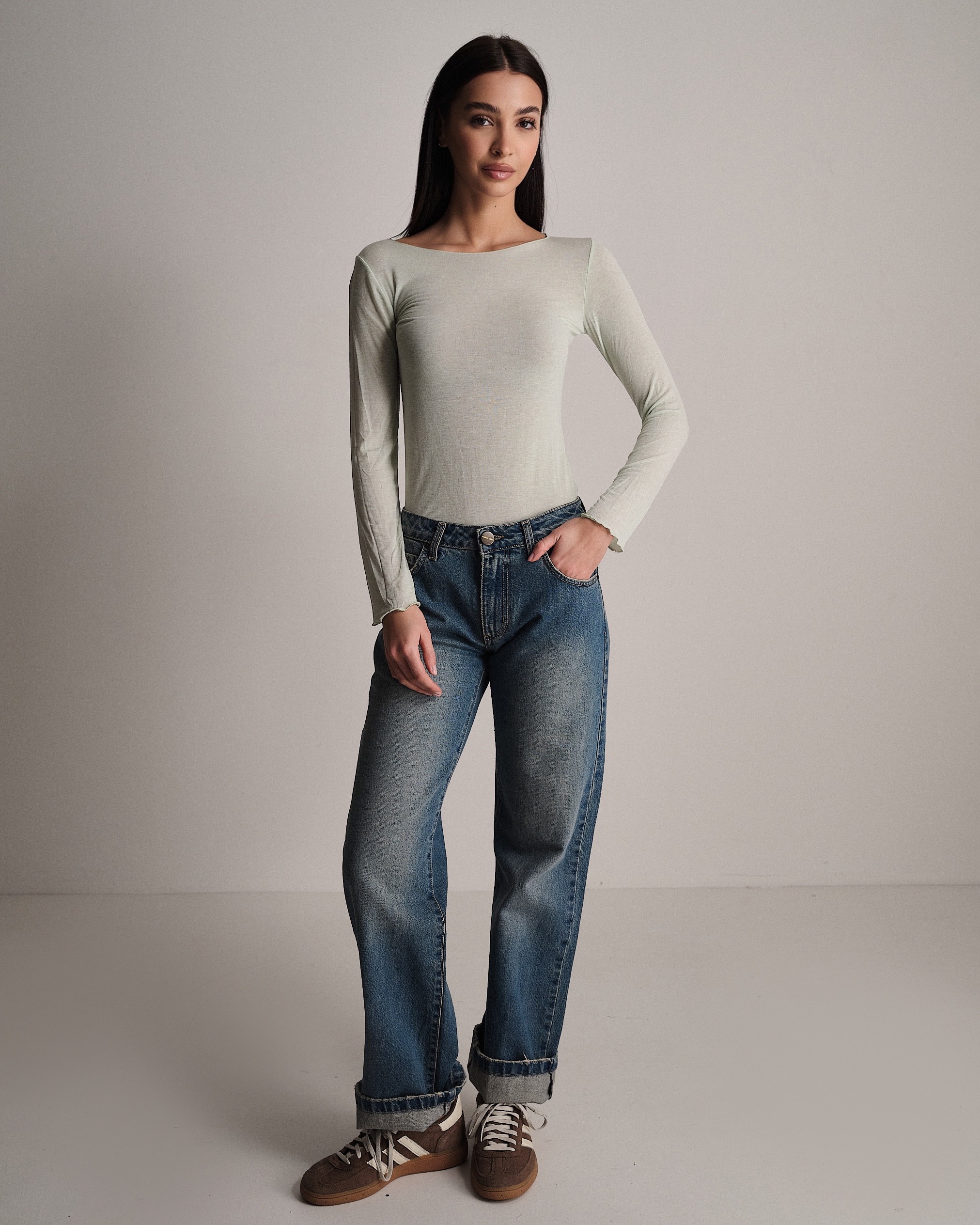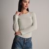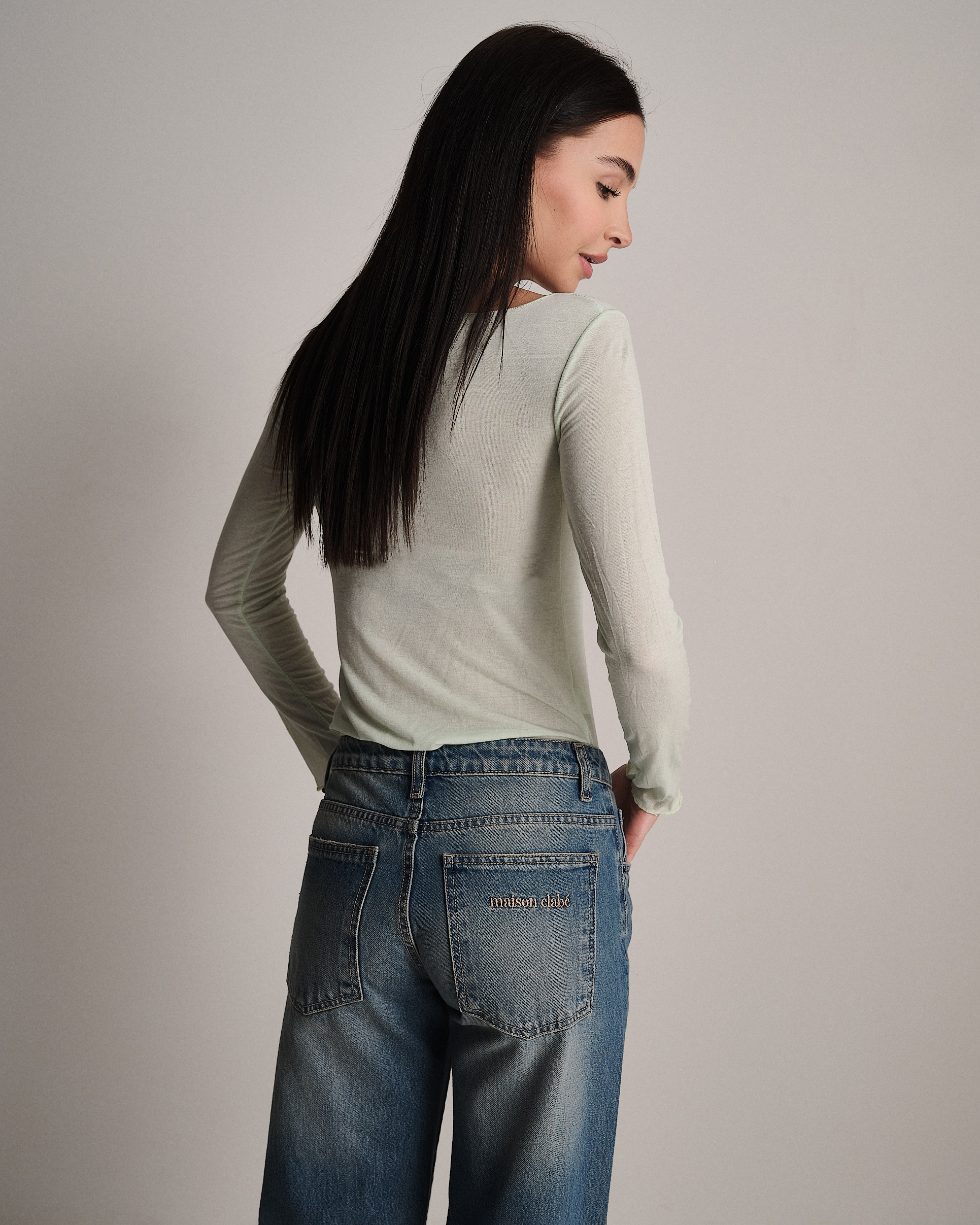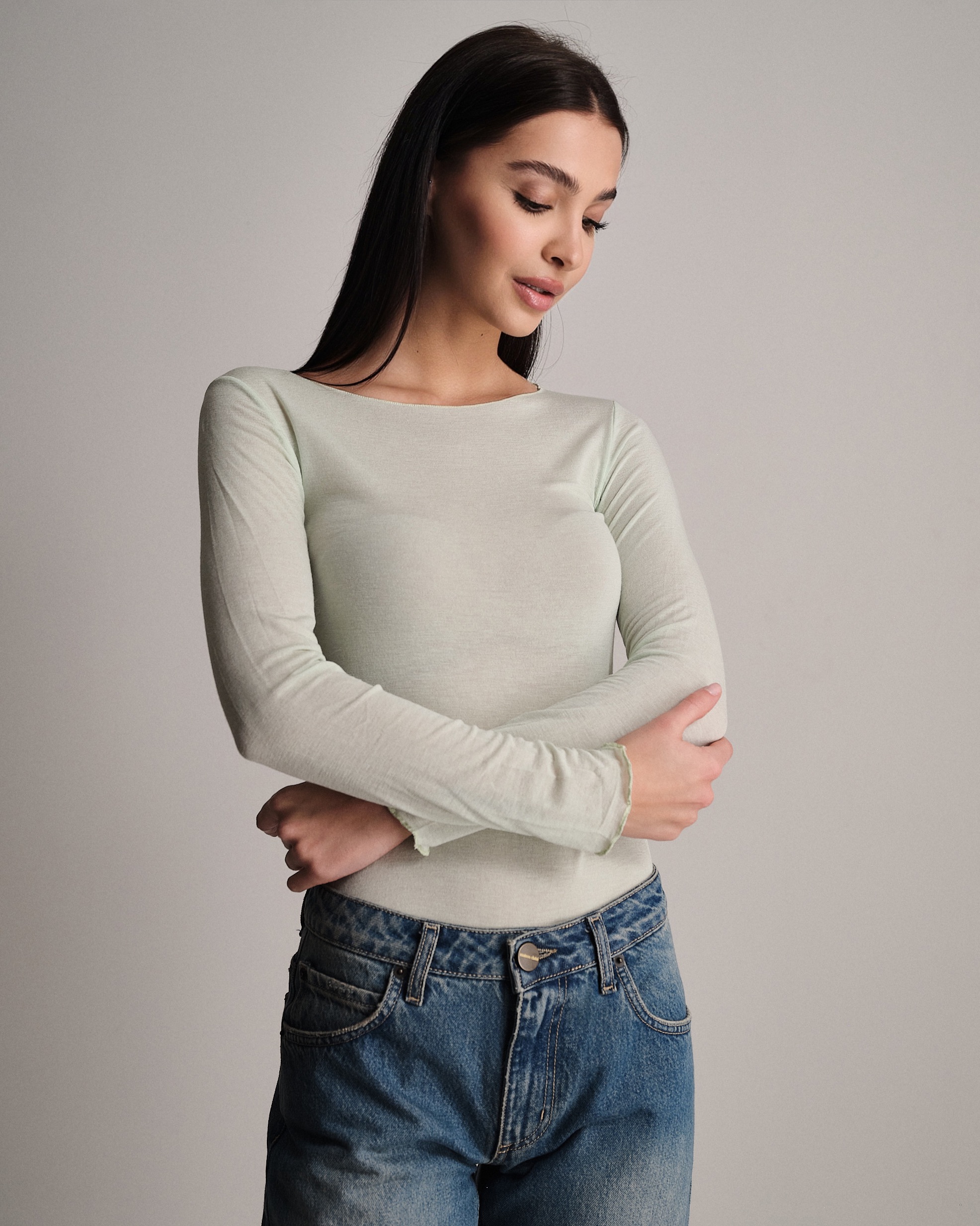 T-shirt leggera a manica lunga con scollatura a barchetta in misto cashmere.