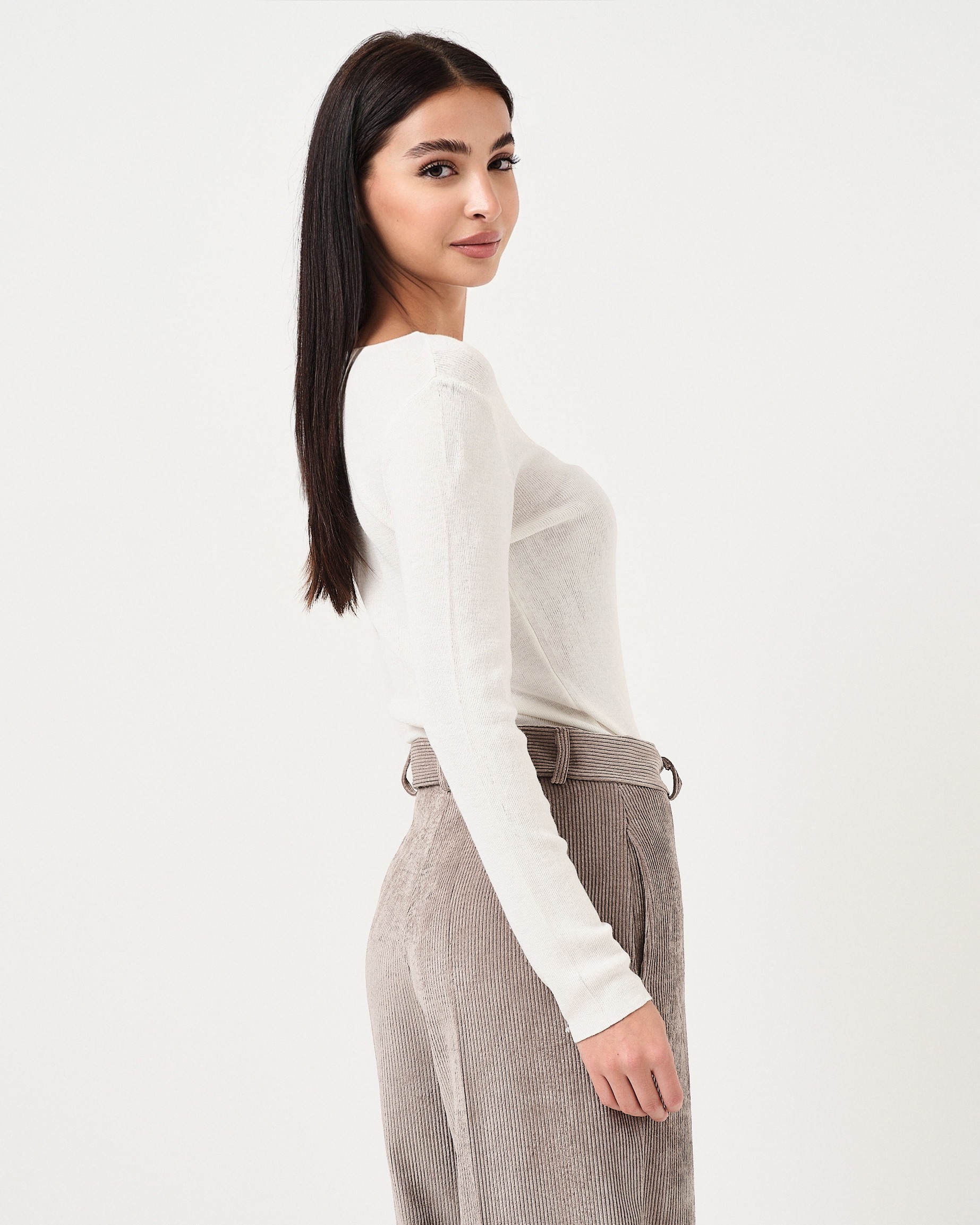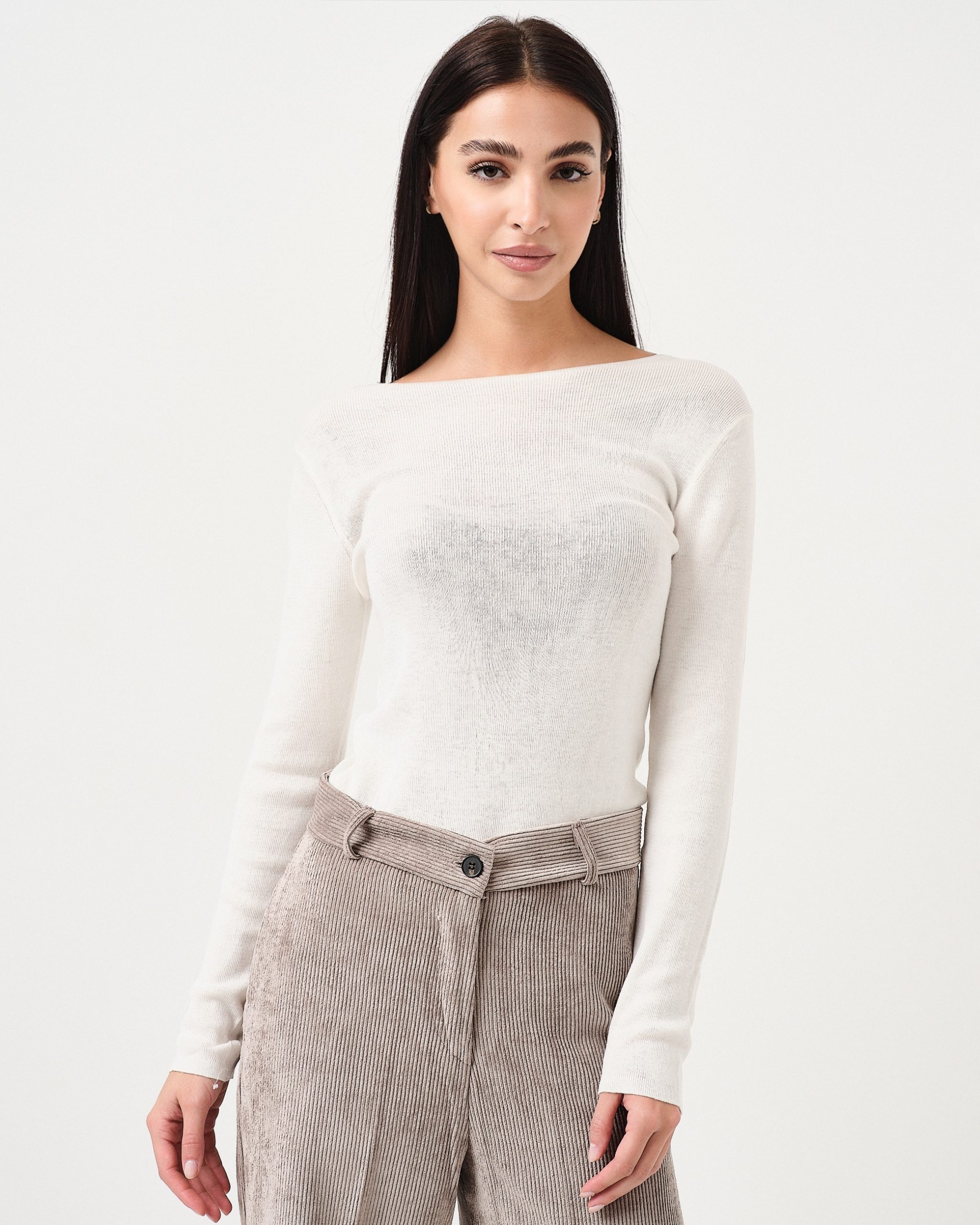 Maglia a maniche lunghe in misto cashmere con scollo a barchetta.