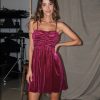 Mini abito svasato in velluto con top arricciato e spalline regolabili.