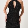 Mini abito tempestato di paillettes con scollatura e schiena scoperta.