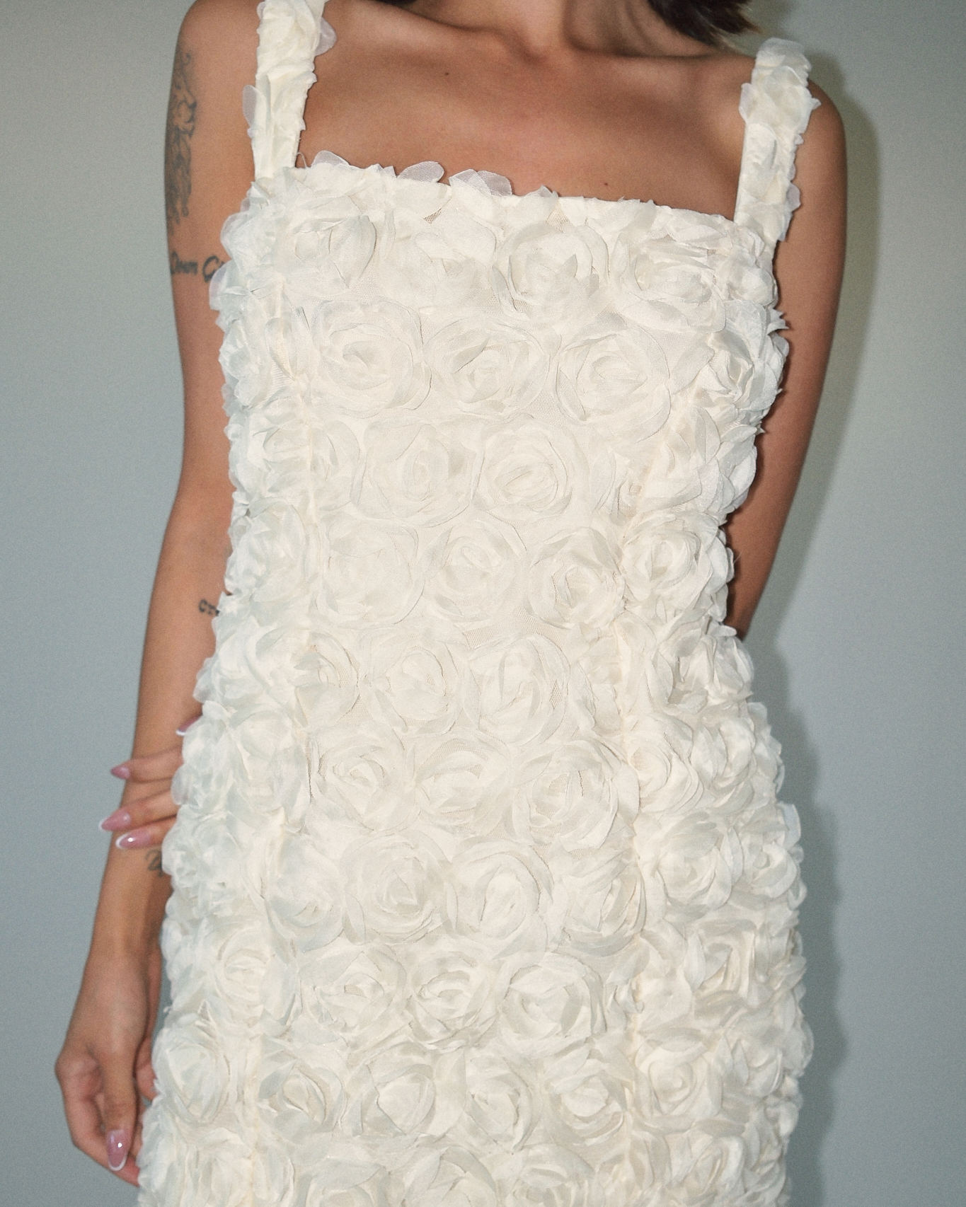 Mini abito smanicato con fiori in rilievo e chiusura a zip.