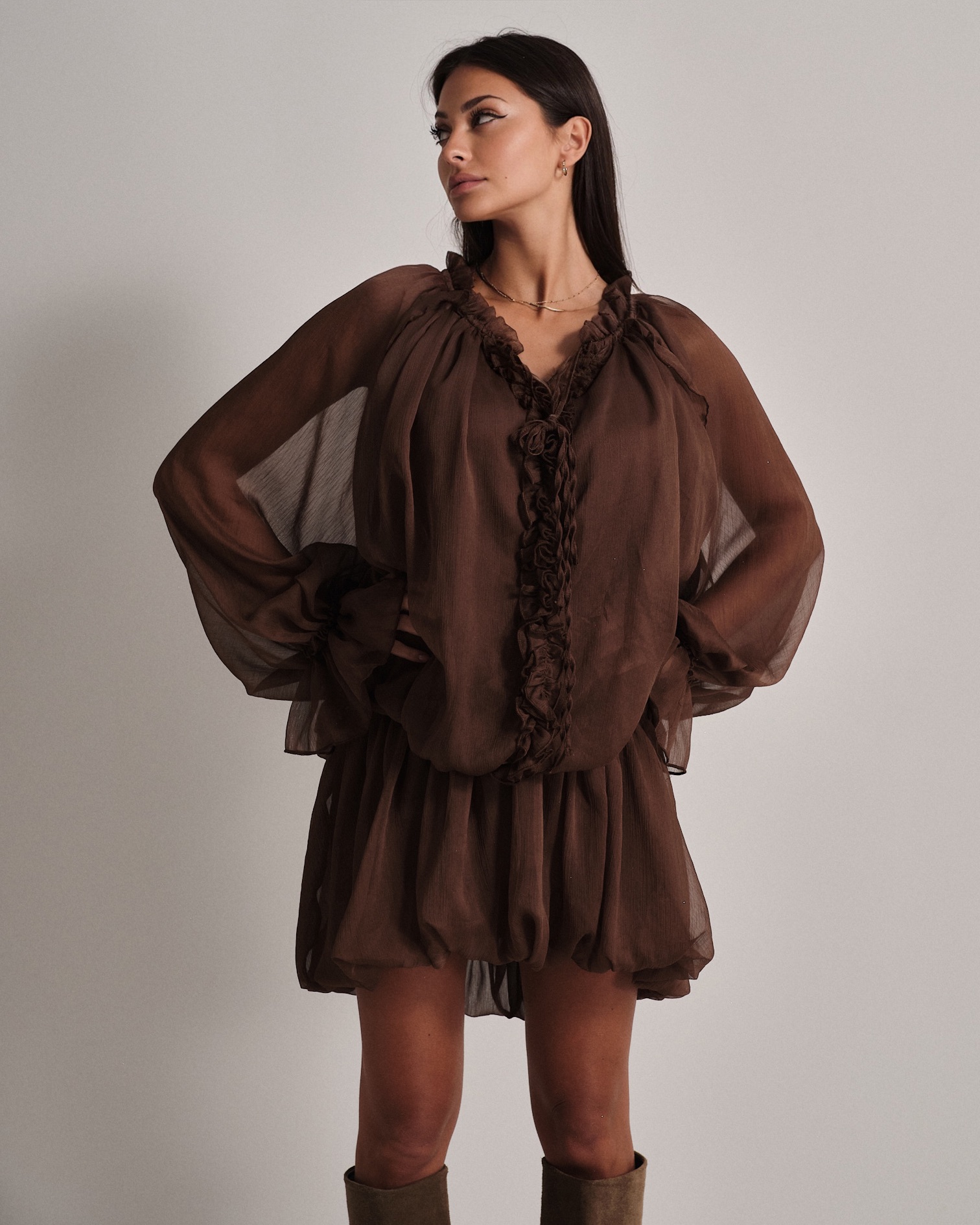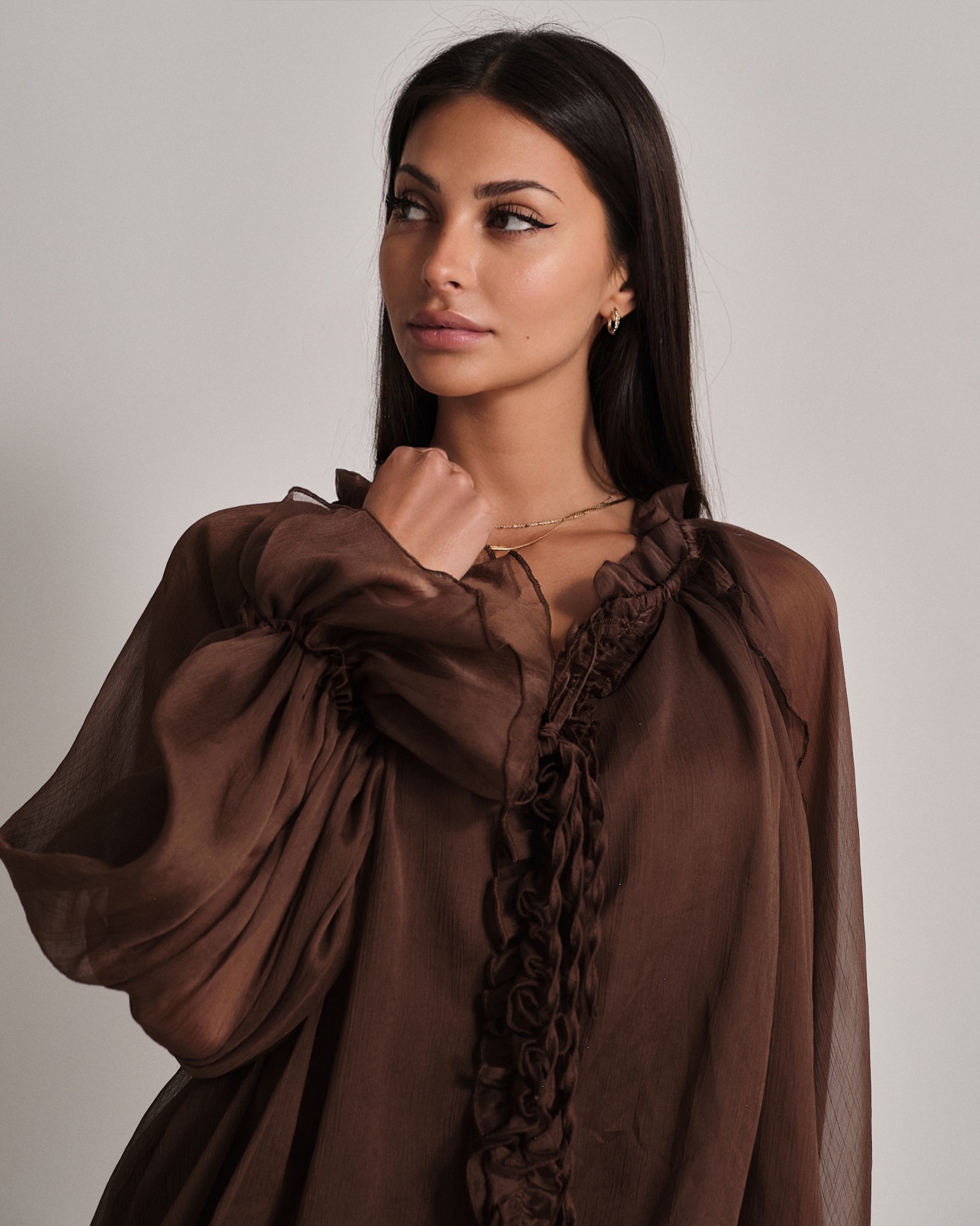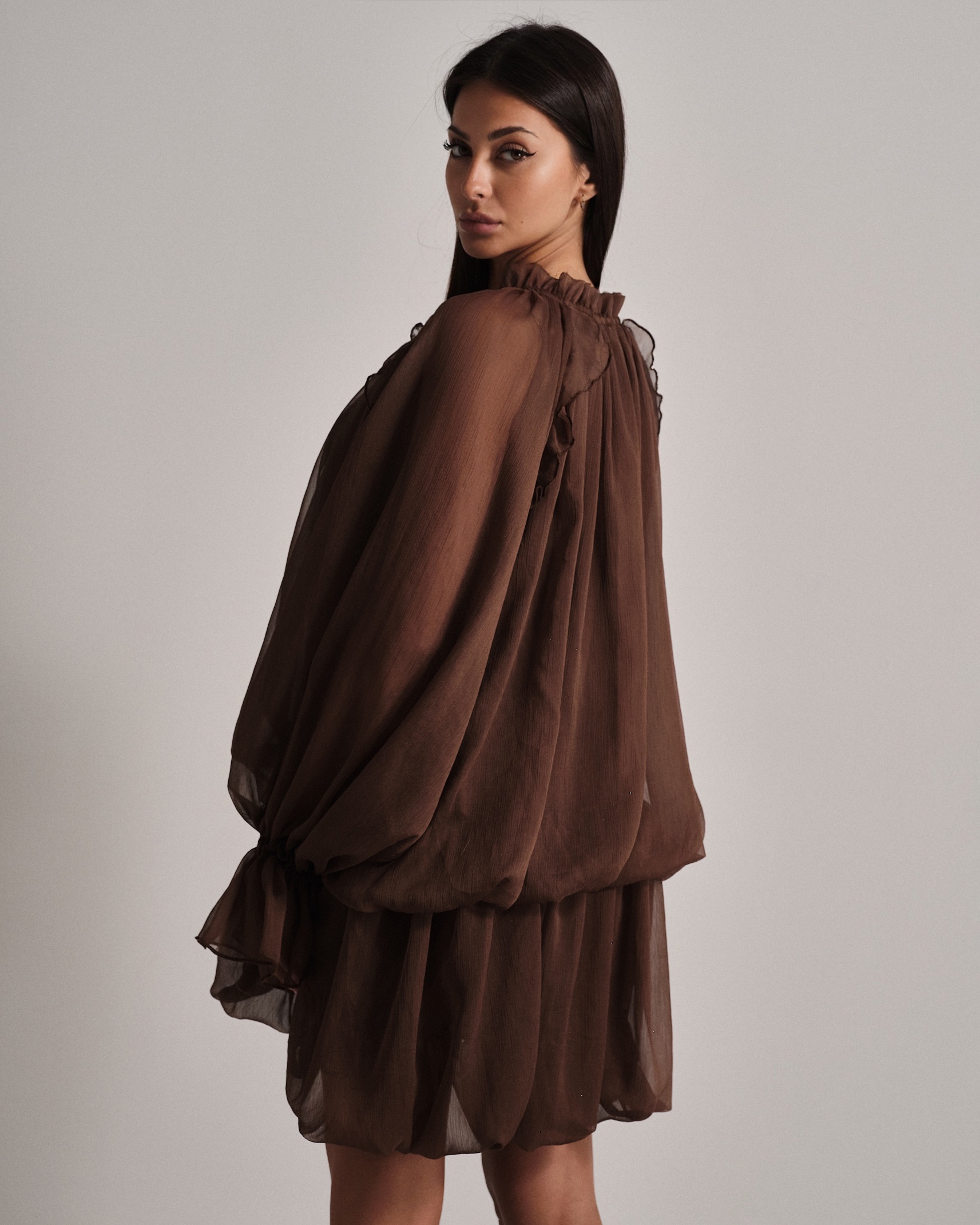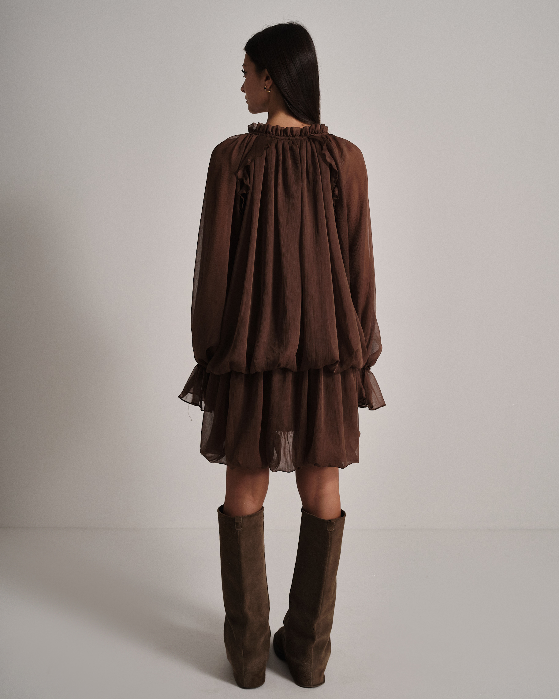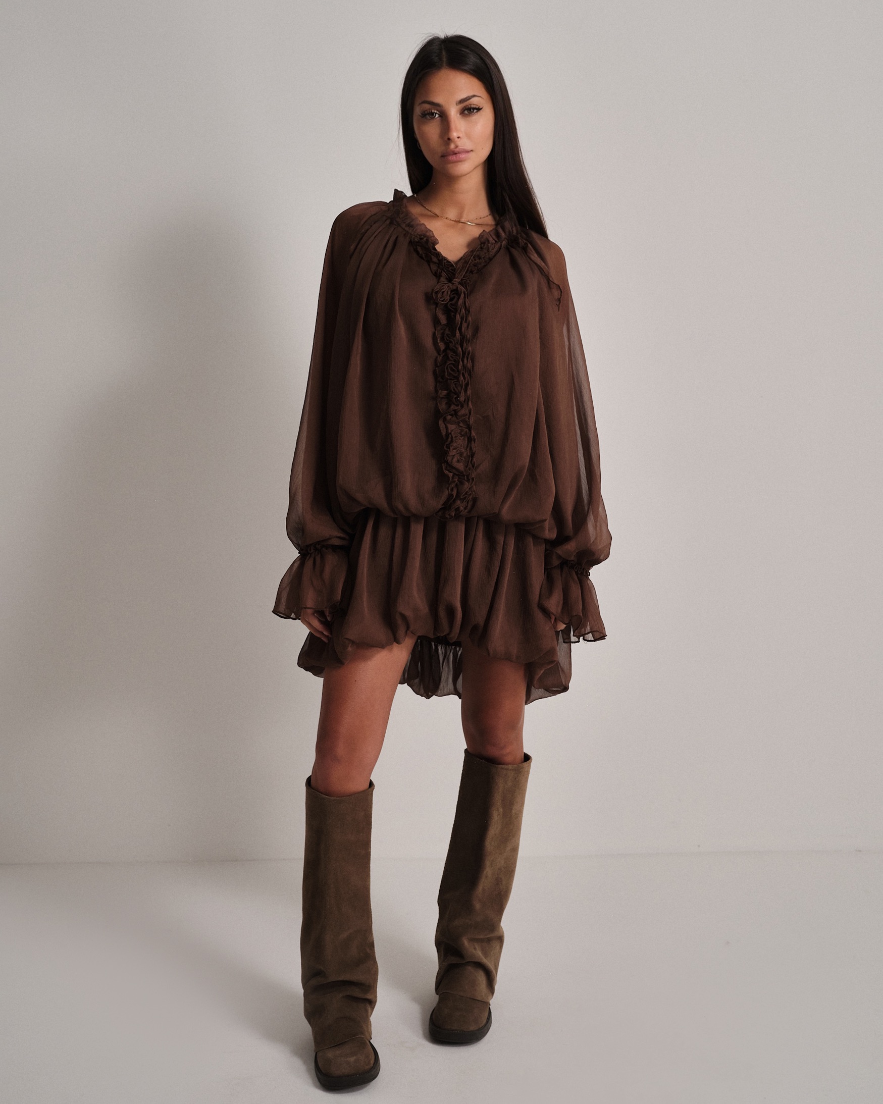La modella è alta 1,63m e indossa la taglia UNI.