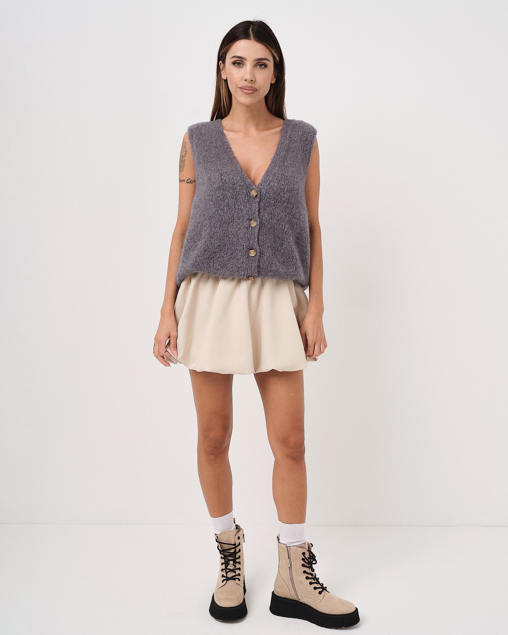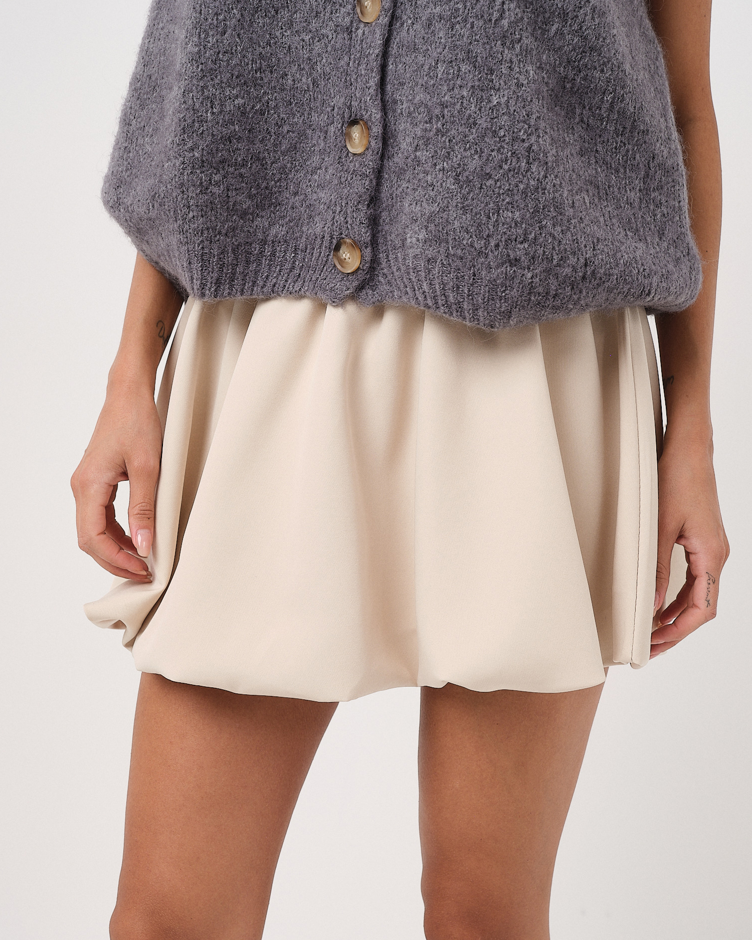Minigonna a palloncino con vita arricciata ed elasticizzata.