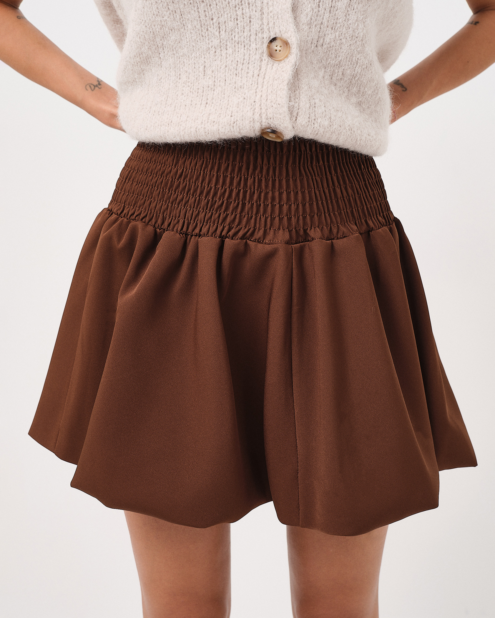 Minigonna a palloncino con vita arricciata ed elasticizzata.