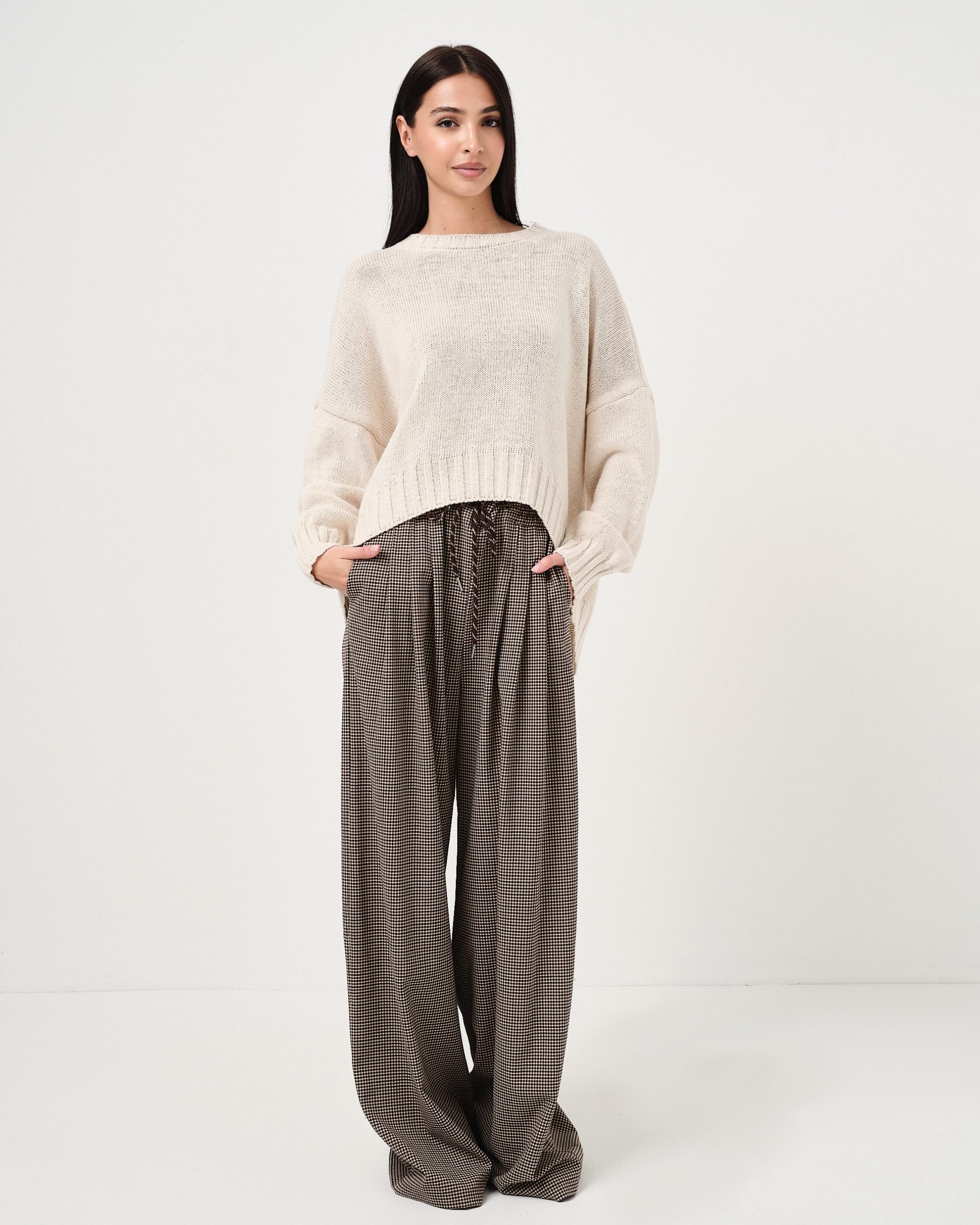 La modella è alta 1,73m e indossa la taglia UNI.