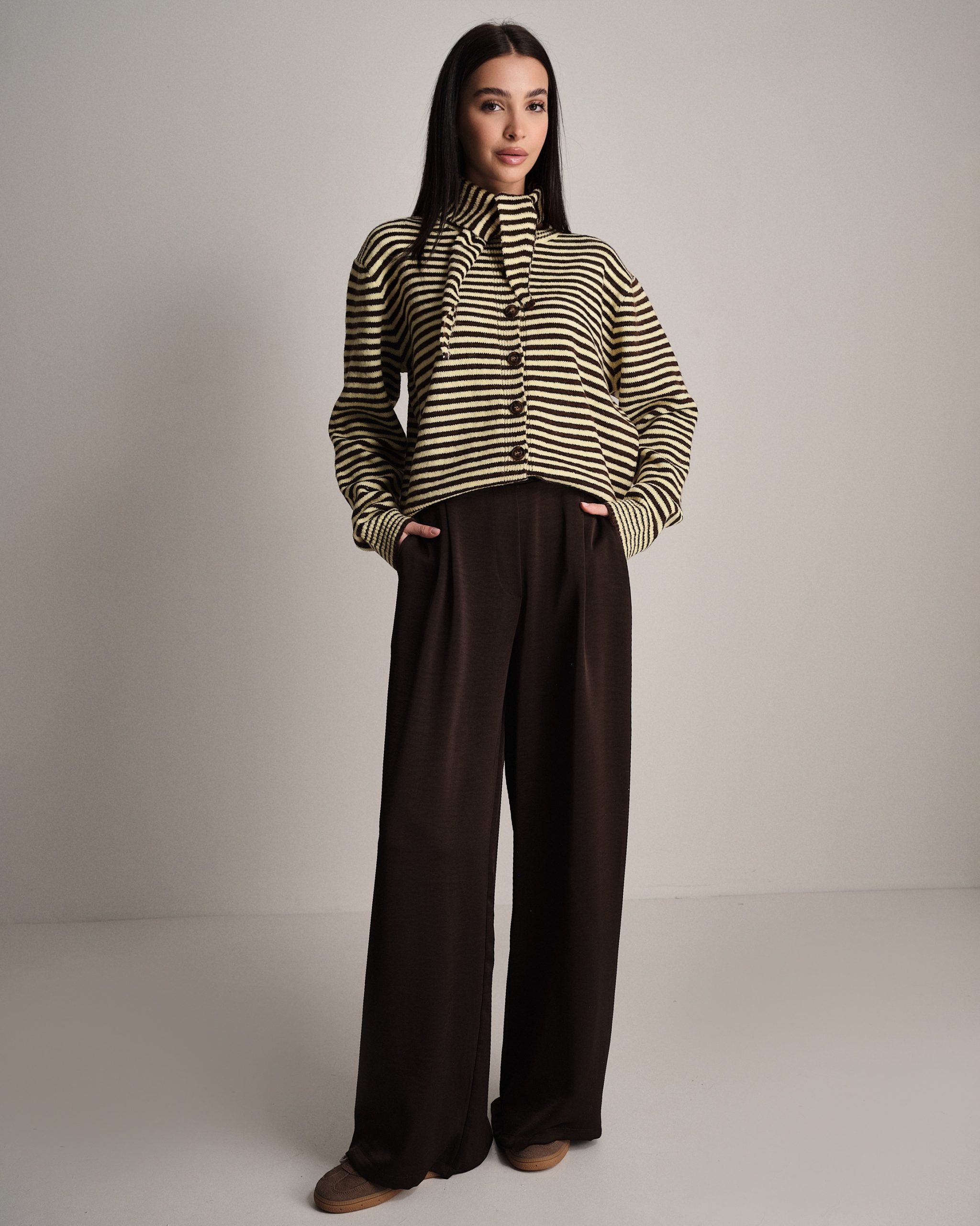 La modella è alta 1,73m e indossa la taglia UNI.