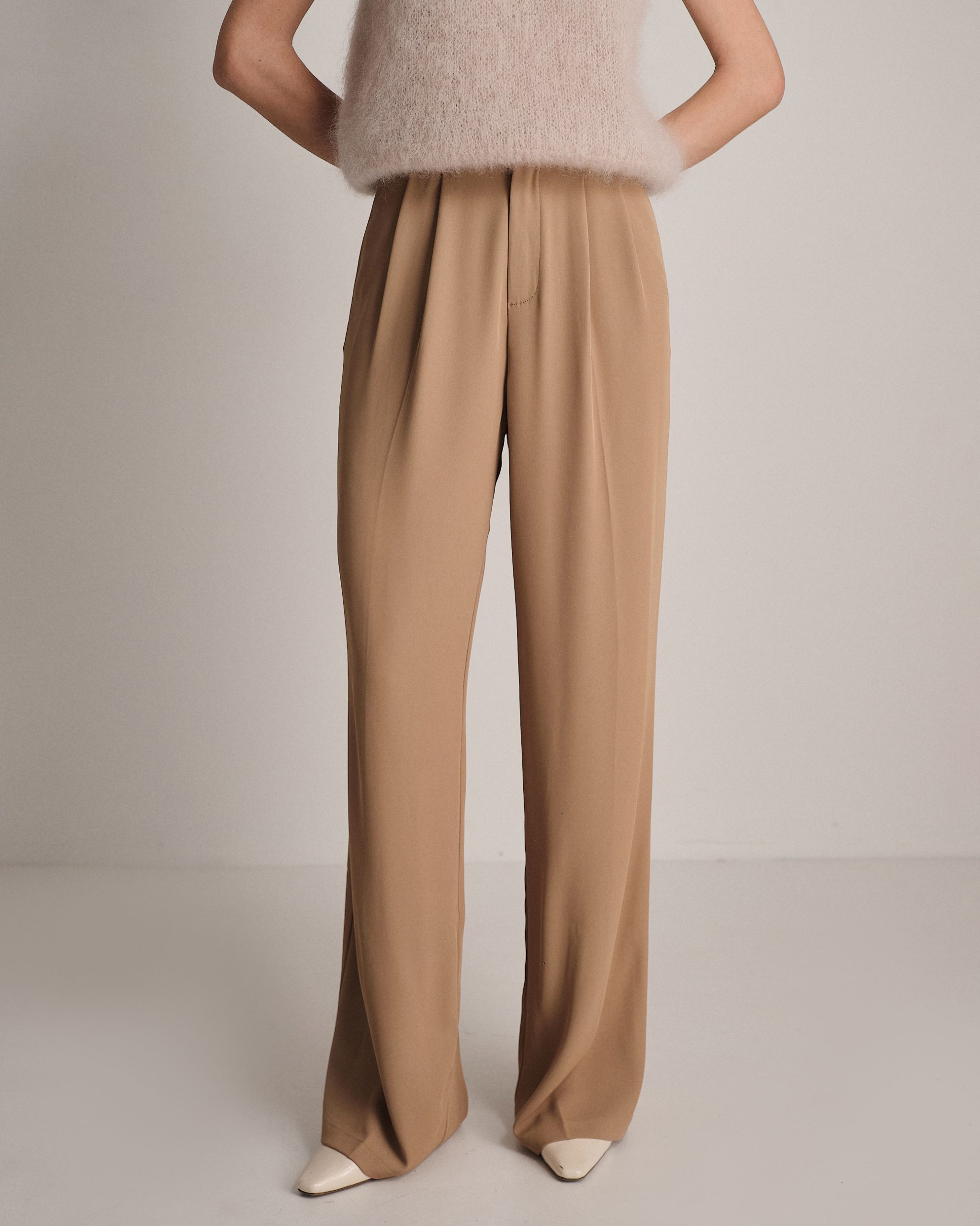 Pantalone ampio in crepe fluido con chiusura invisibile, pence e tasche.