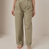 Pantalone in cotone a vita alta con pence