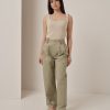 Pantalone in cotone a vita alta con tasche e bottoni.