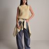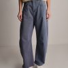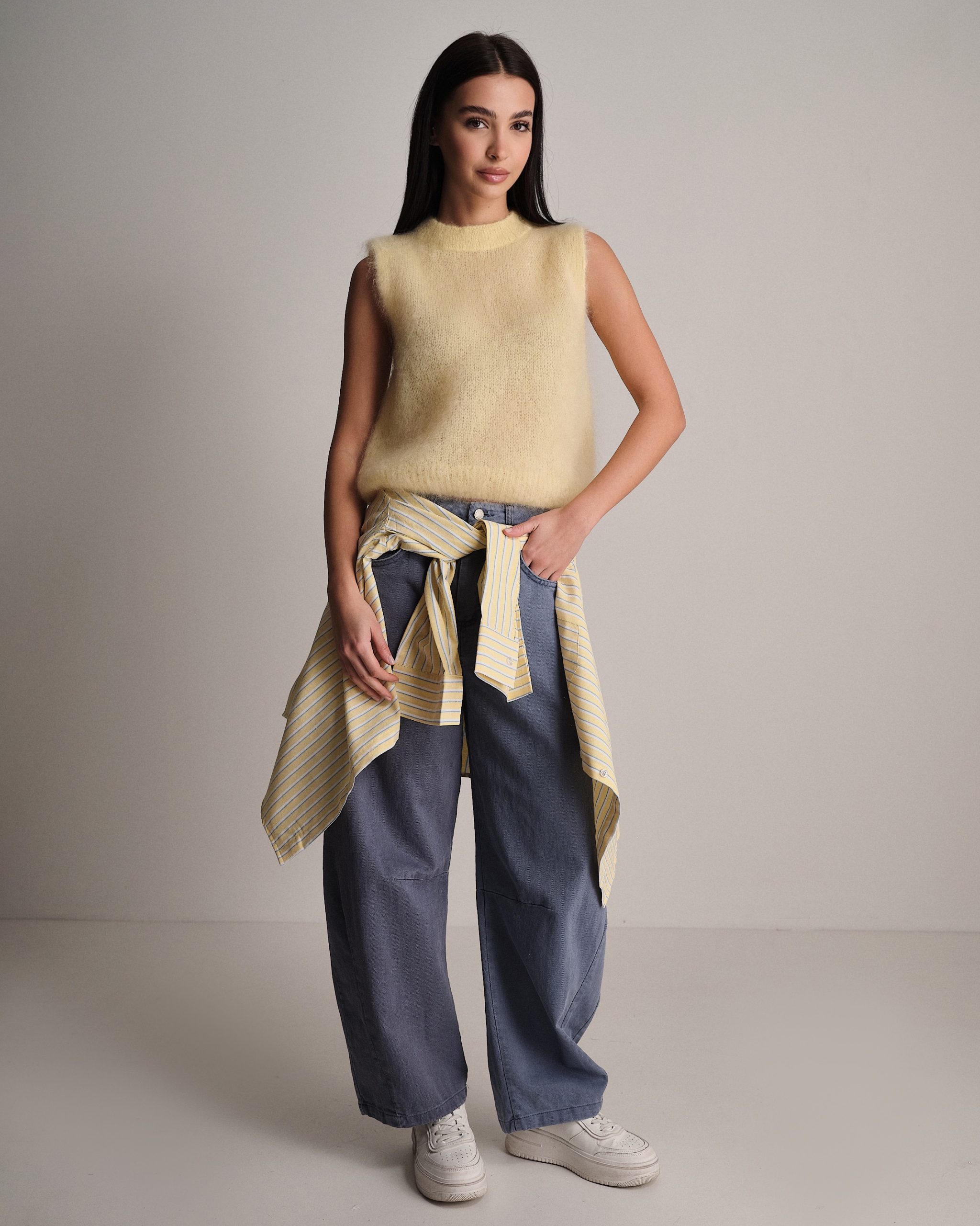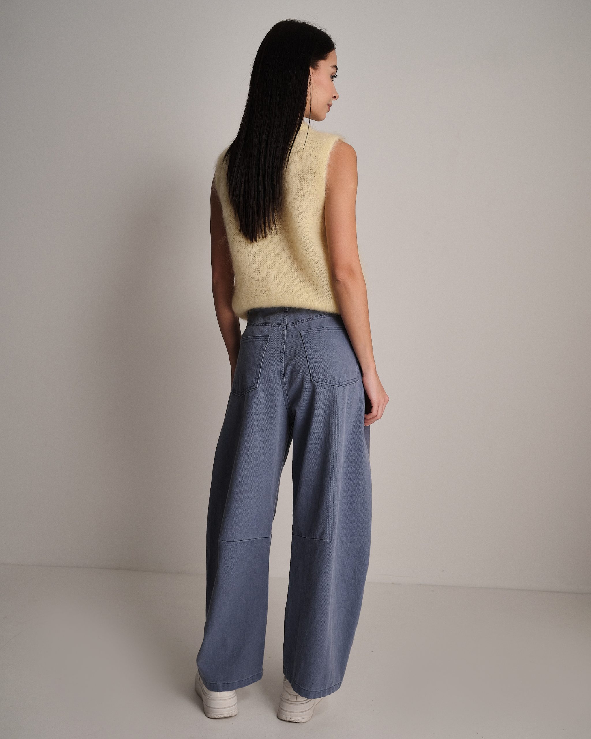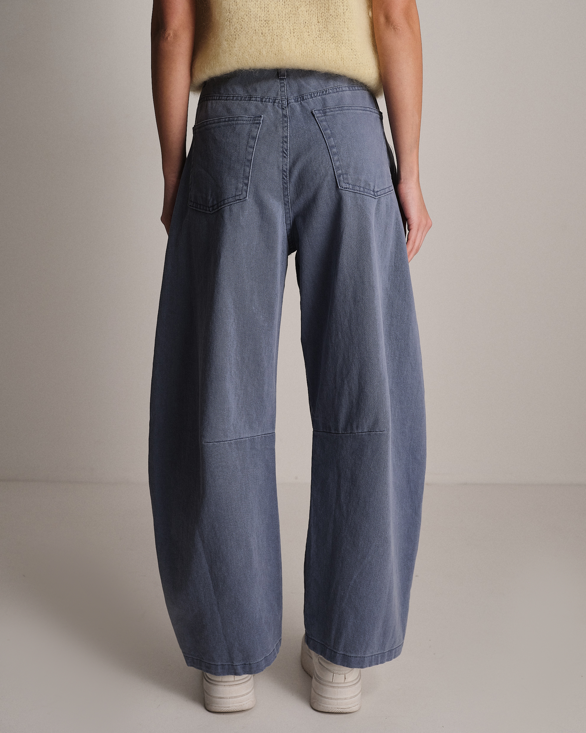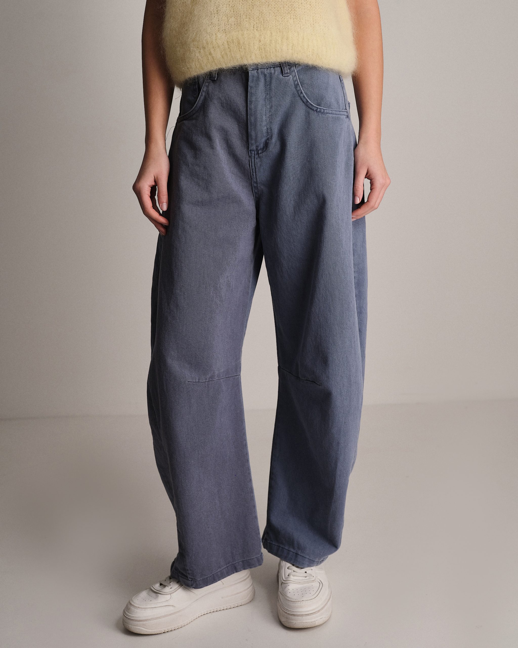 Pantalone in denim a vita alta balloon fit con cuciture a vista.