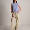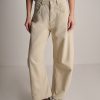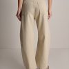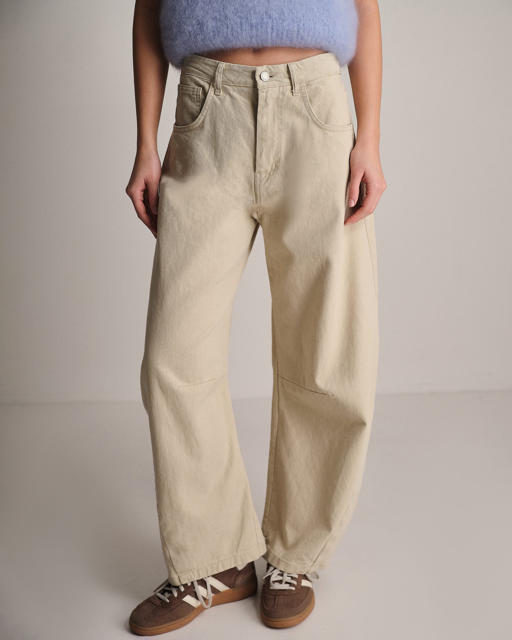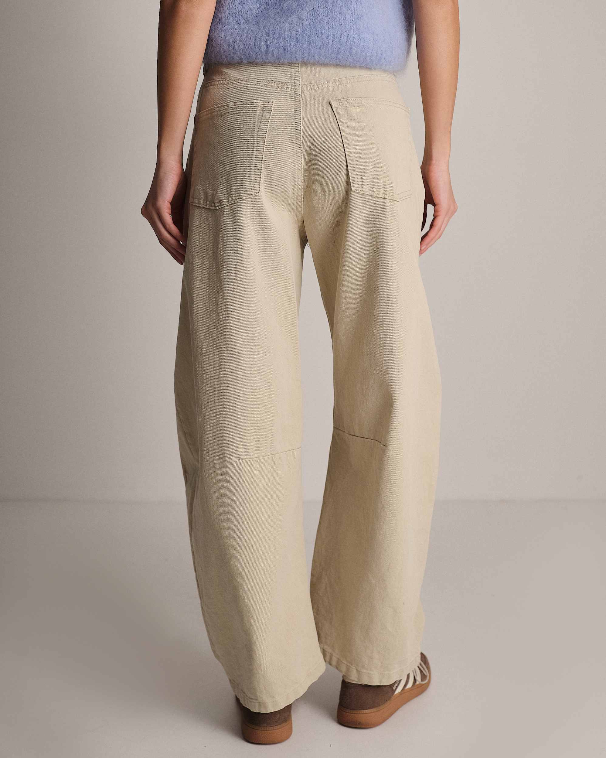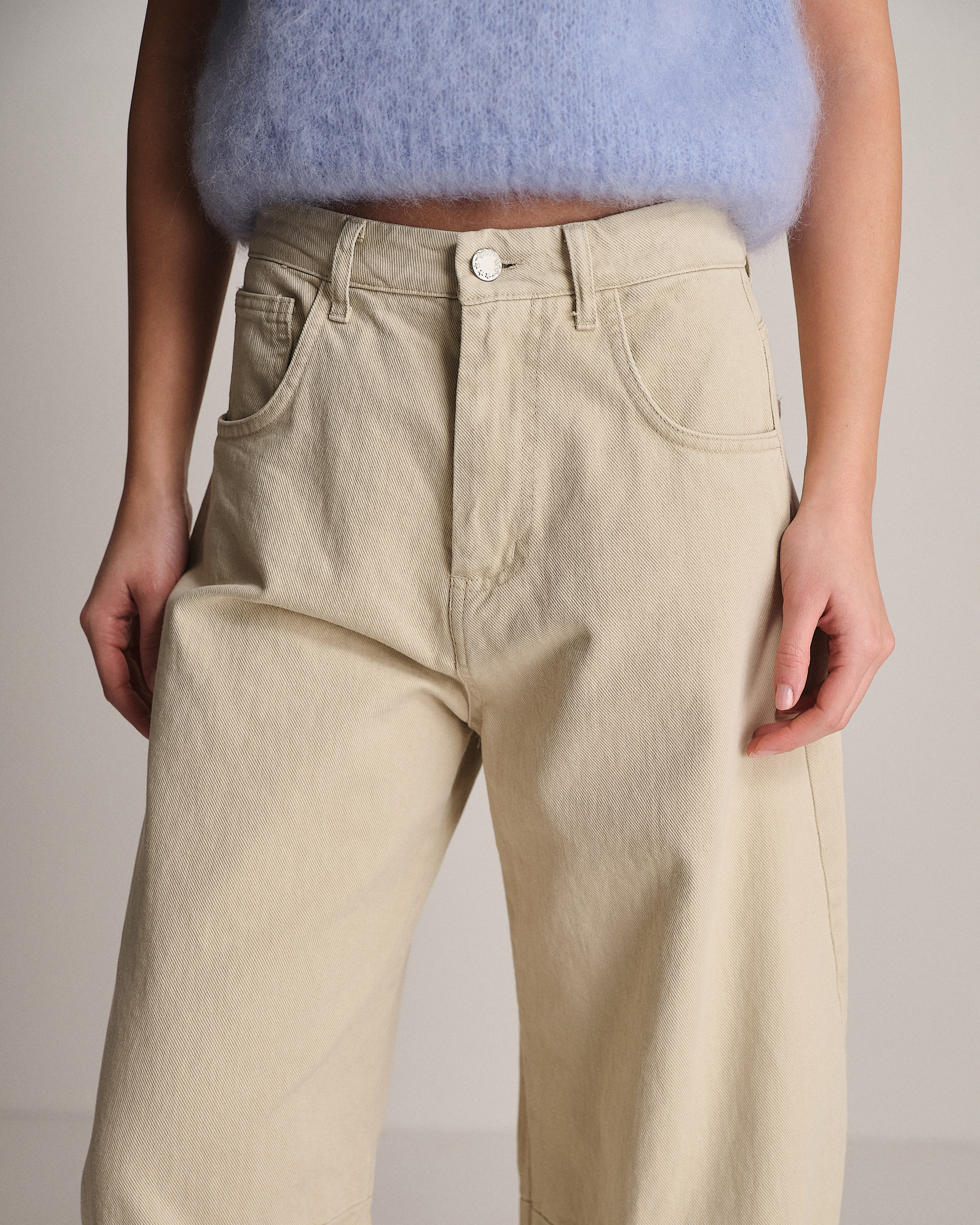 Pantalone in denim a vita alta balloon fit con cuciture a vista.