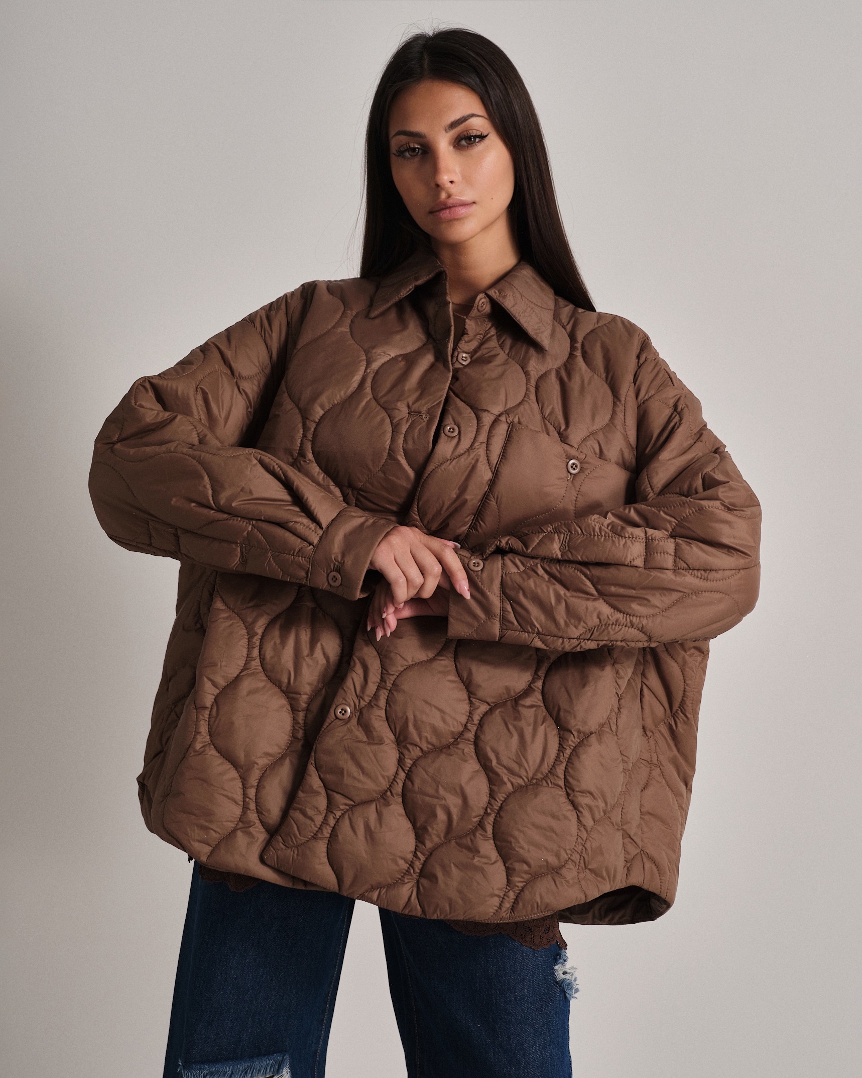 Piumino cento grammi oversize trapuntato con coulisse regolabile e bottoncini.