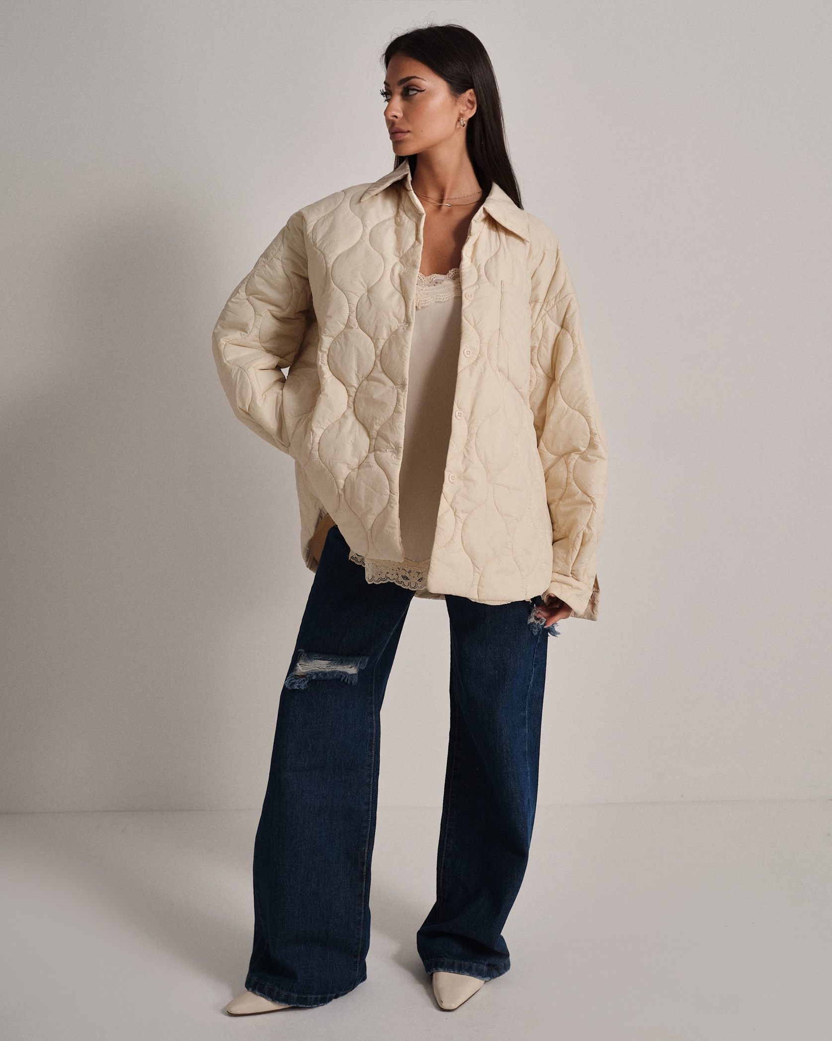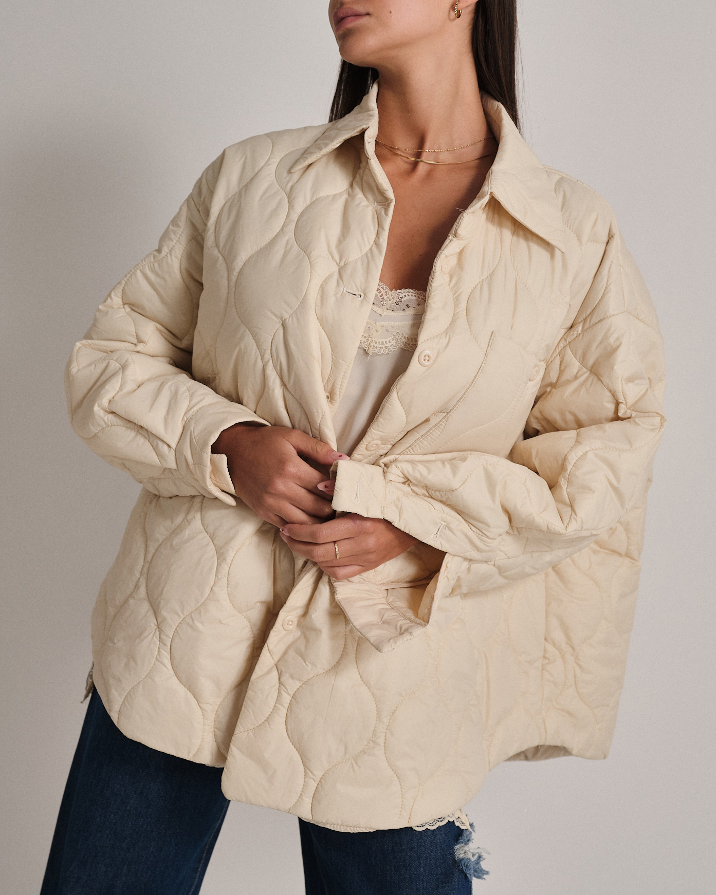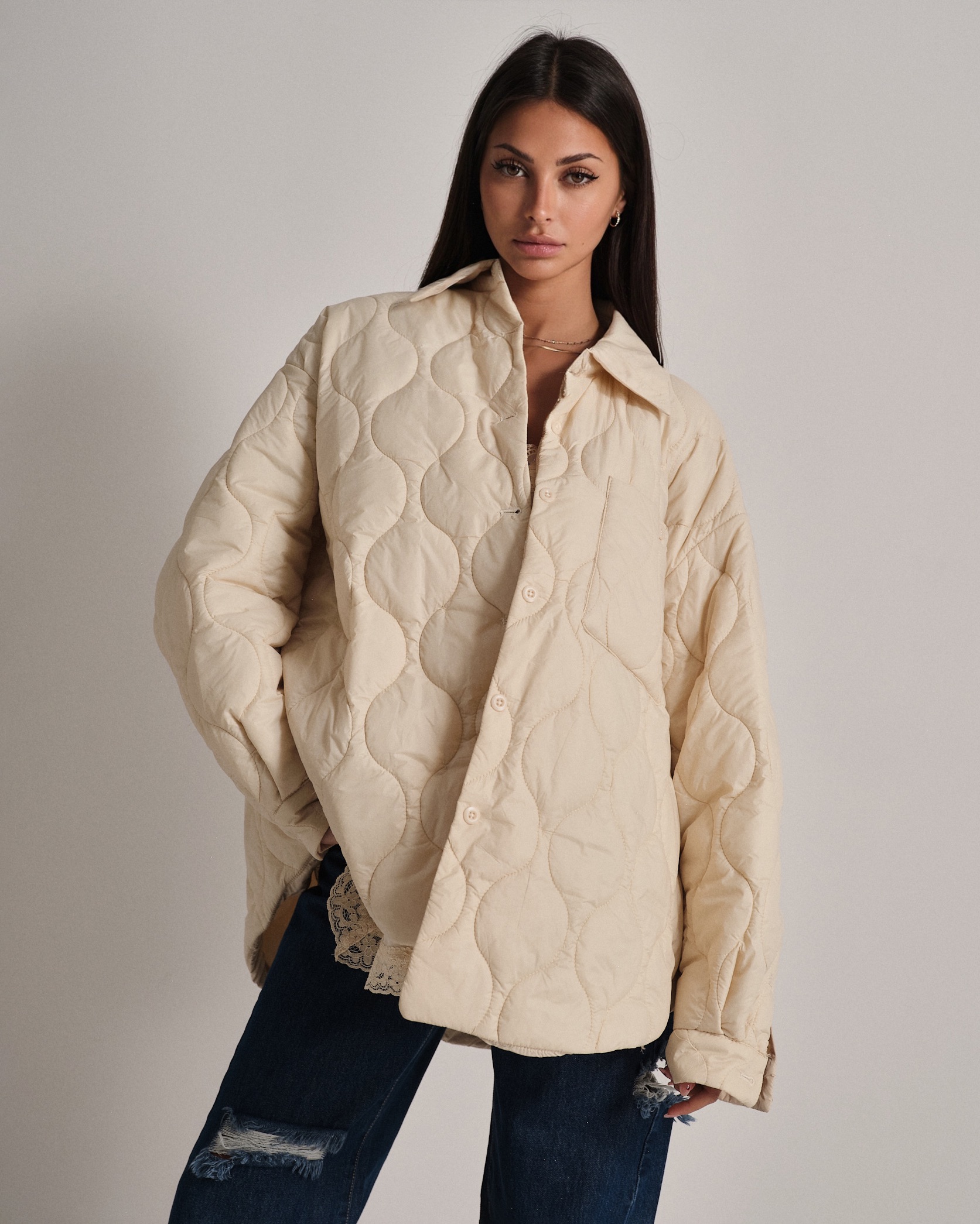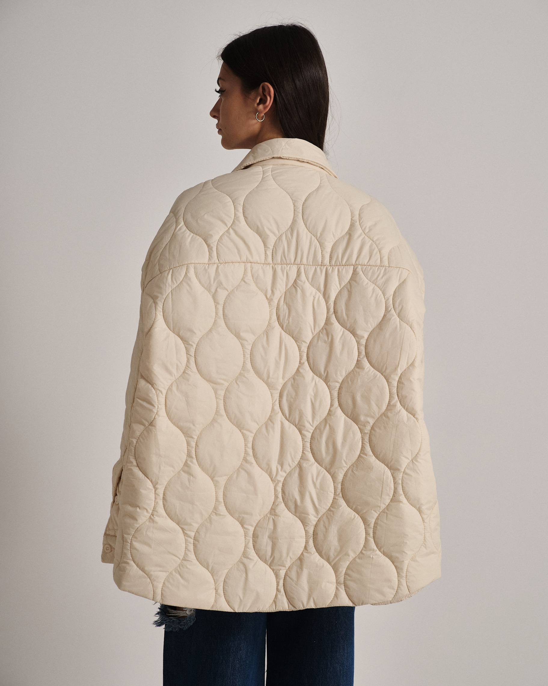 Piumino cento grammi oversize trapuntato con coulisse regolabile e bottoncini.