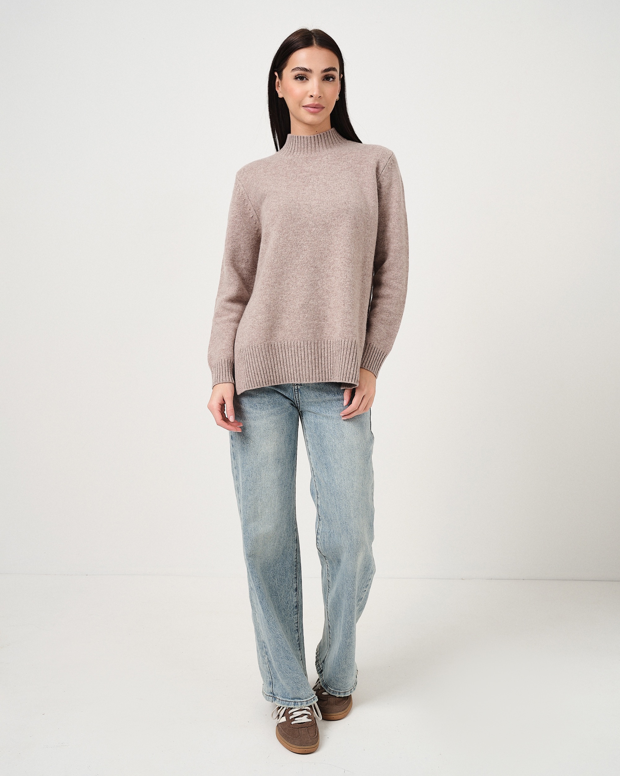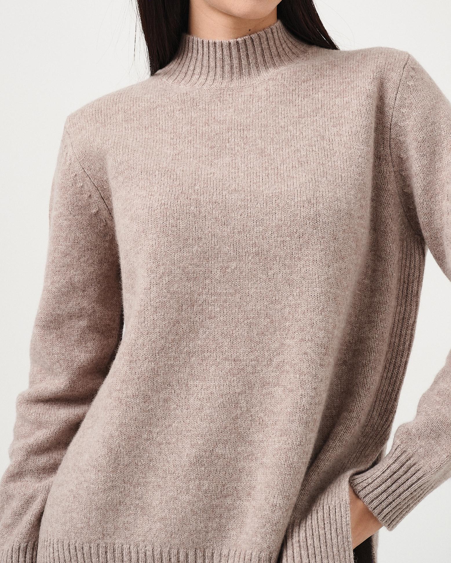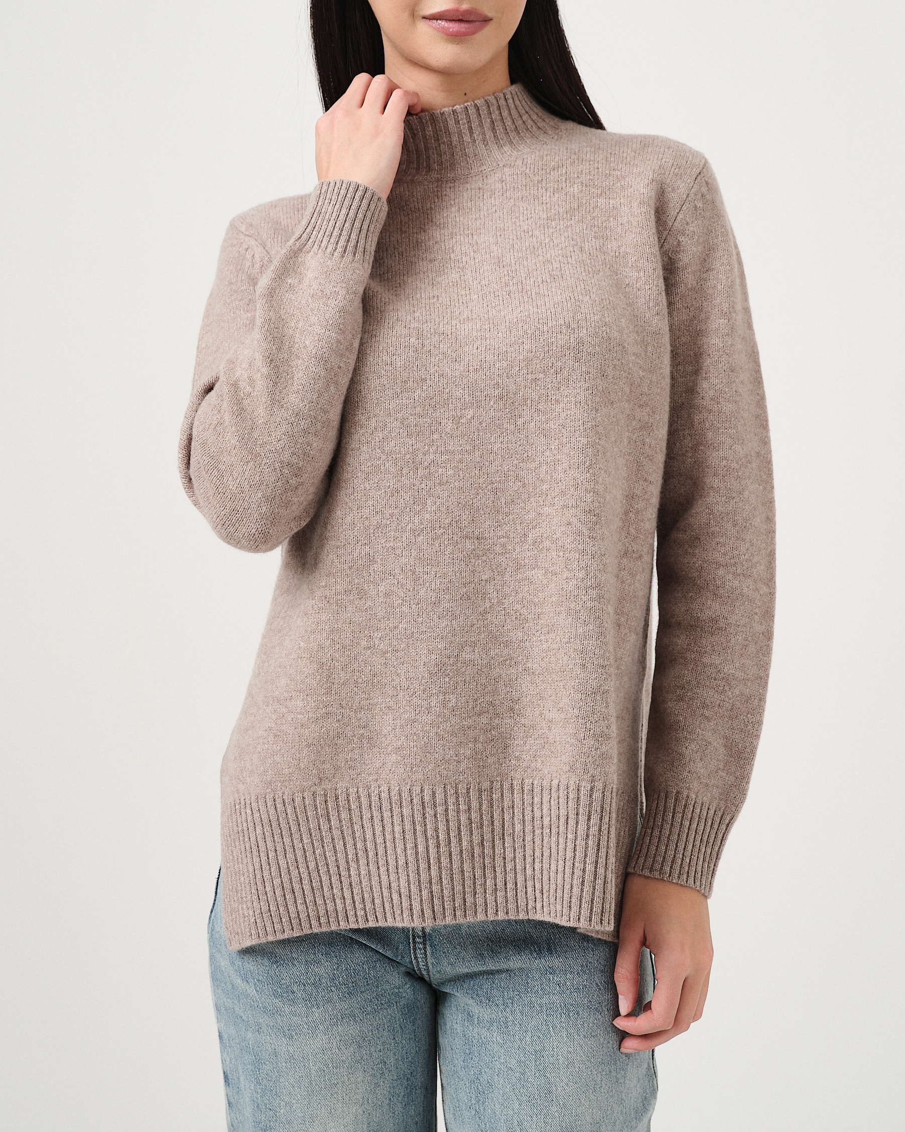 Pullover oversize con collo a lupetto e spacchi laterali in pura lana.