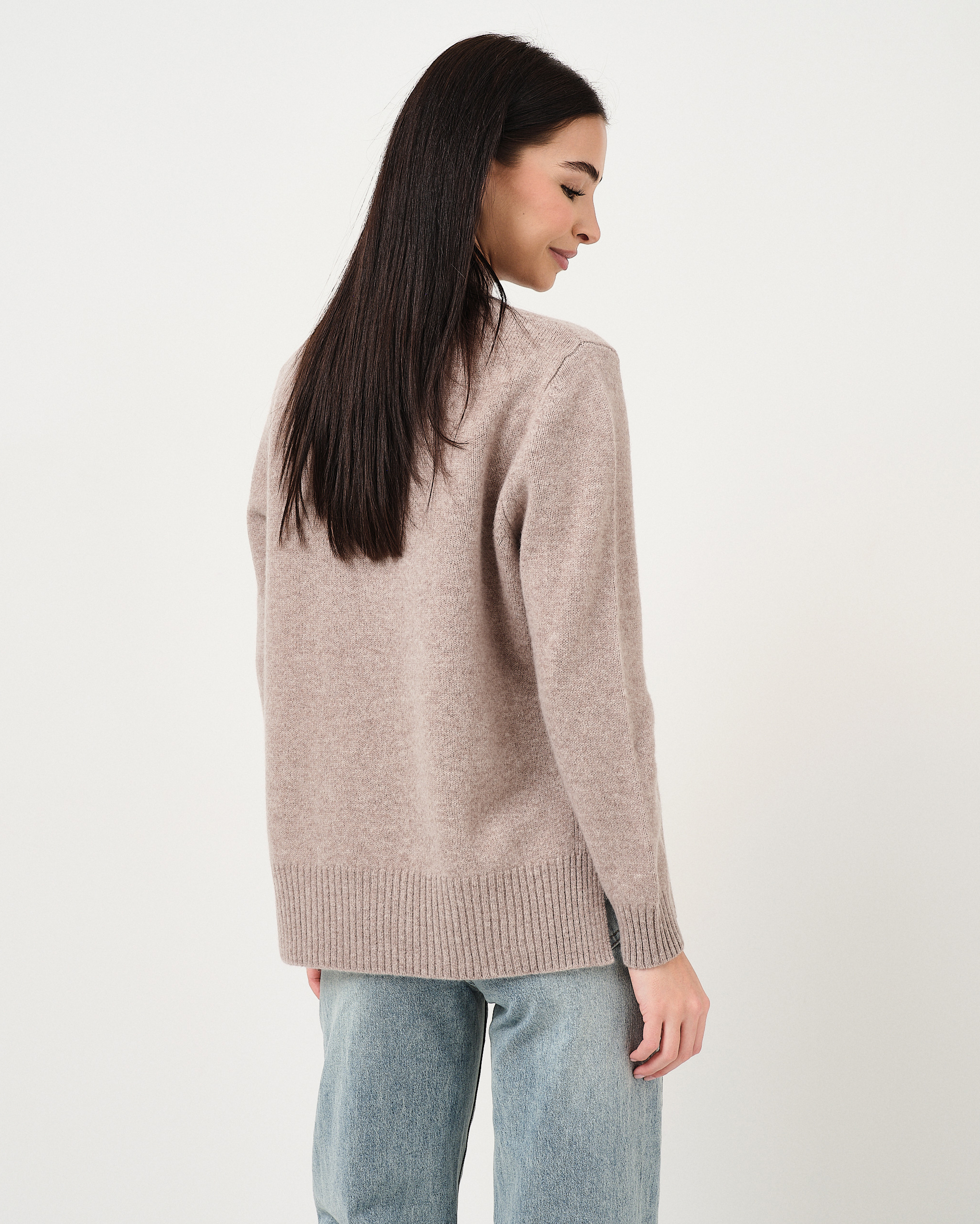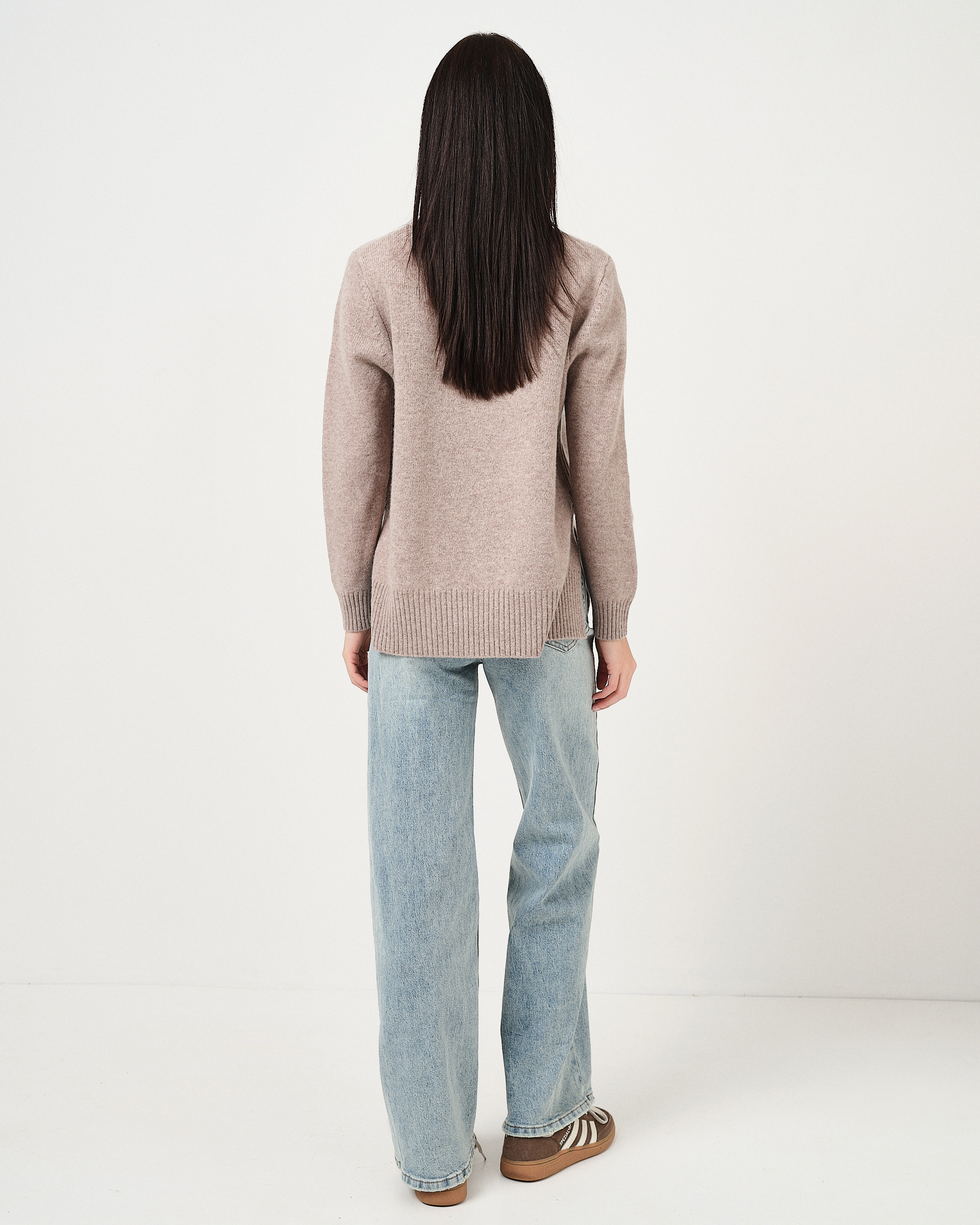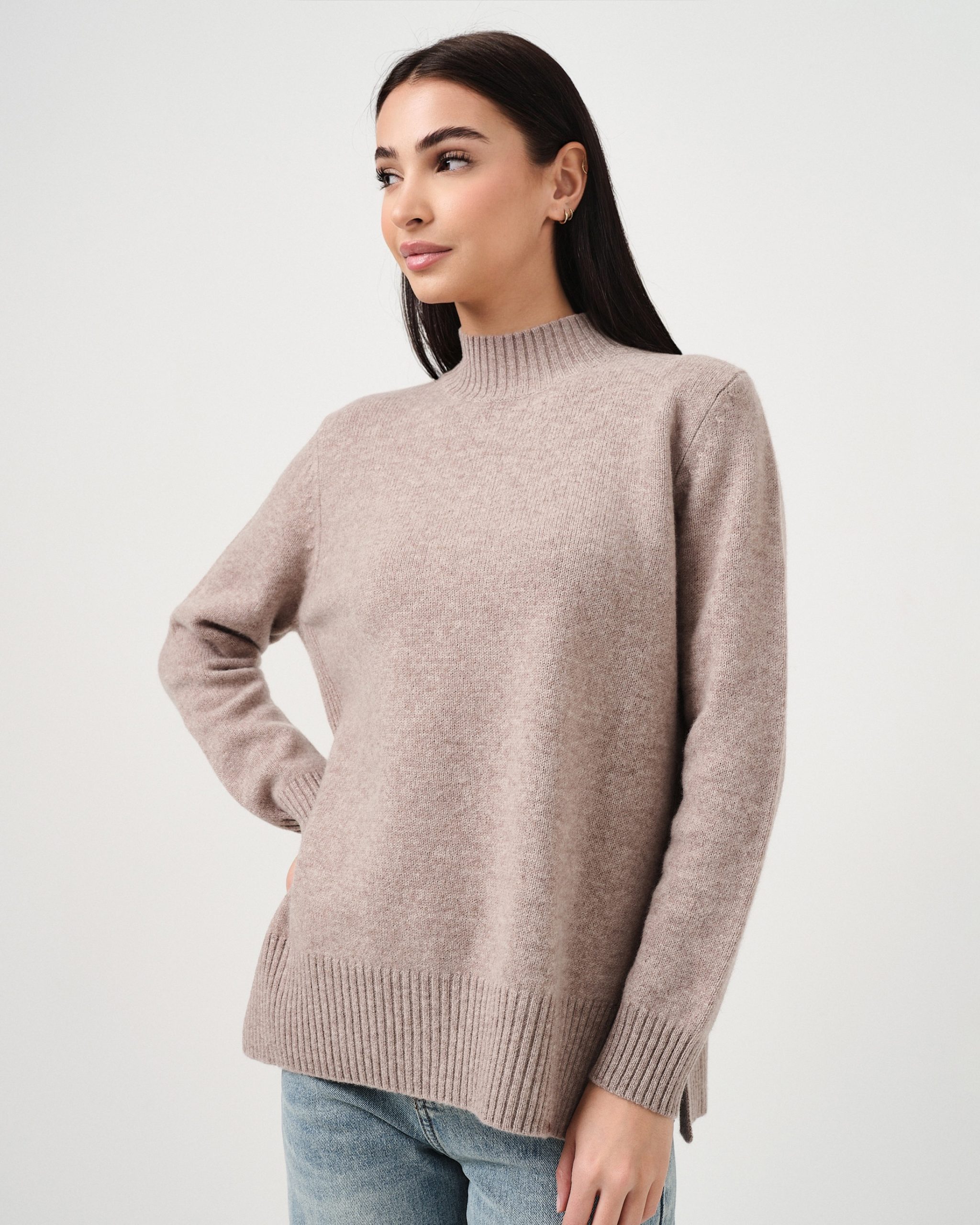 Pullover oversize con collo a lupetto e spacchi laterali in pura lana.