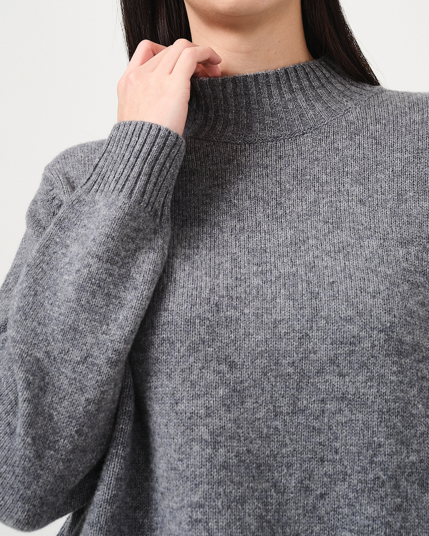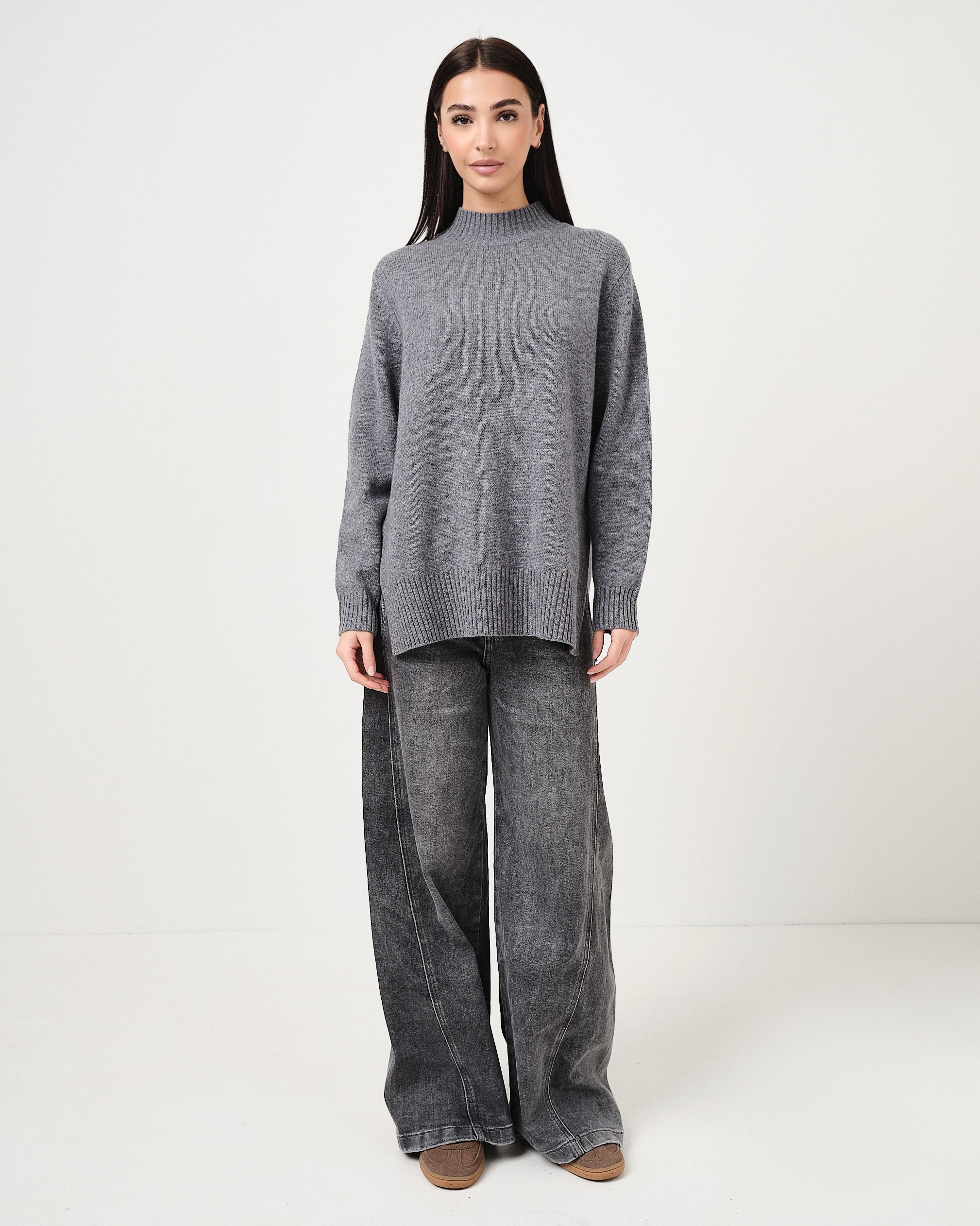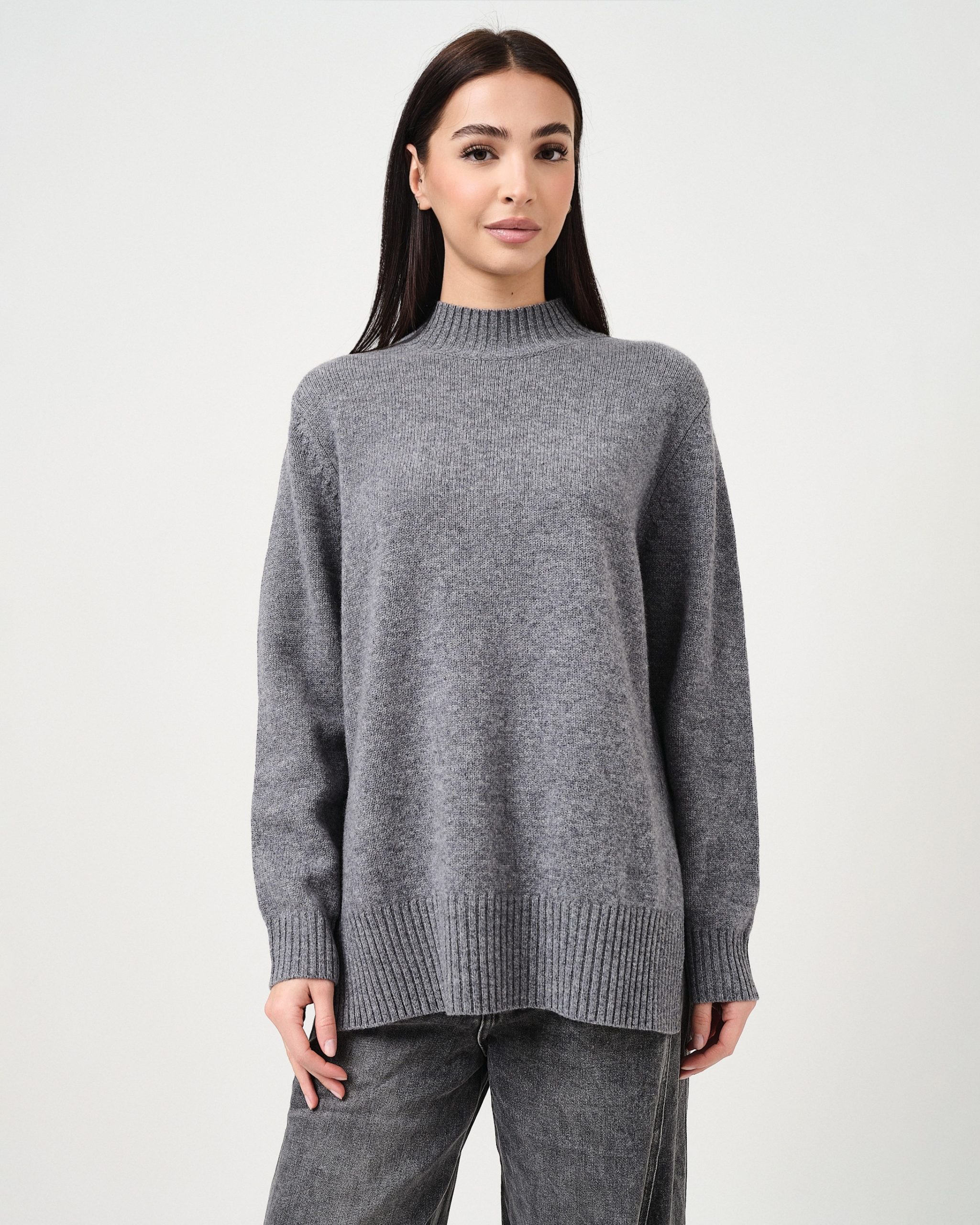 Pullover oversize con collo a lupetto e spacchi laterali in pura lana.