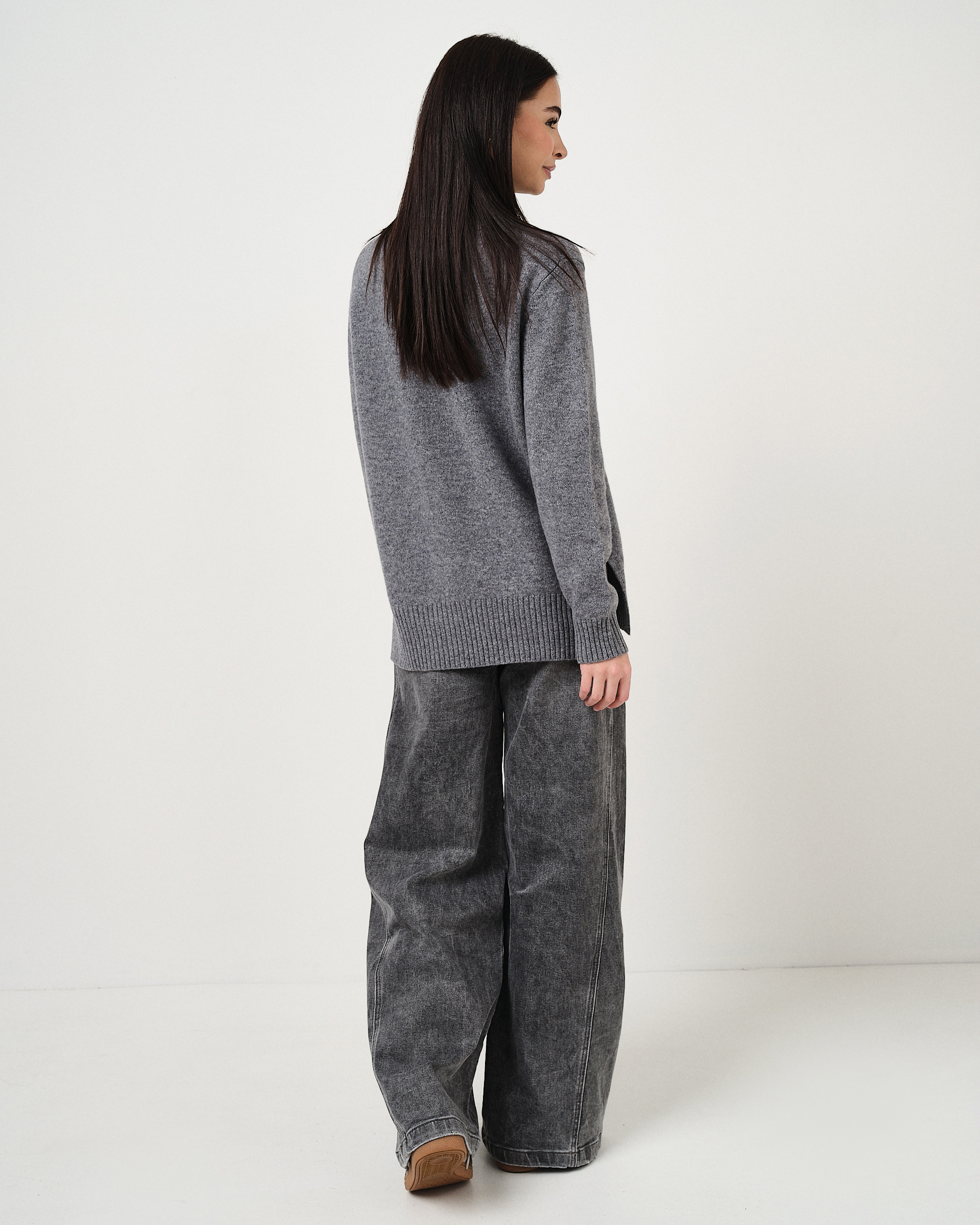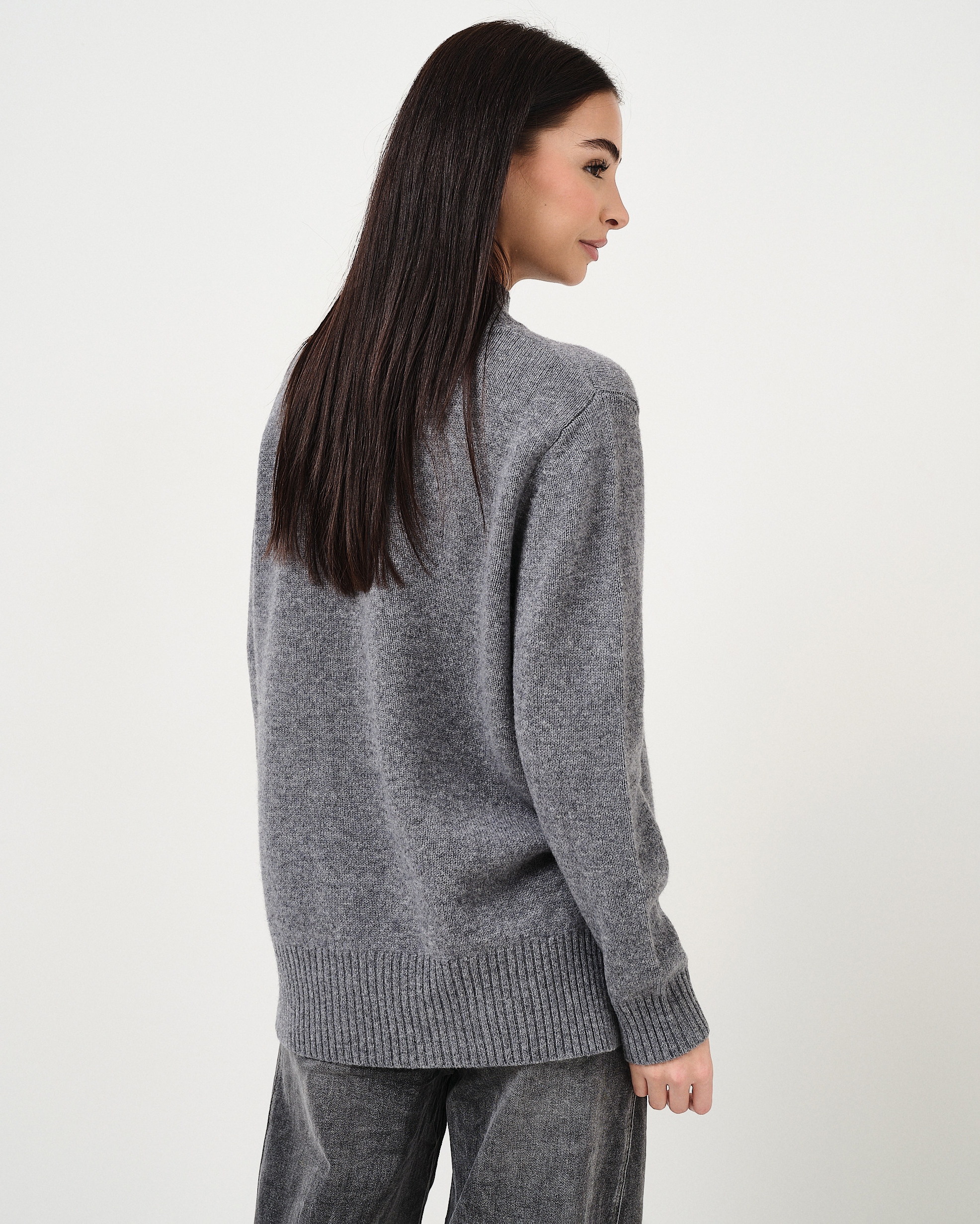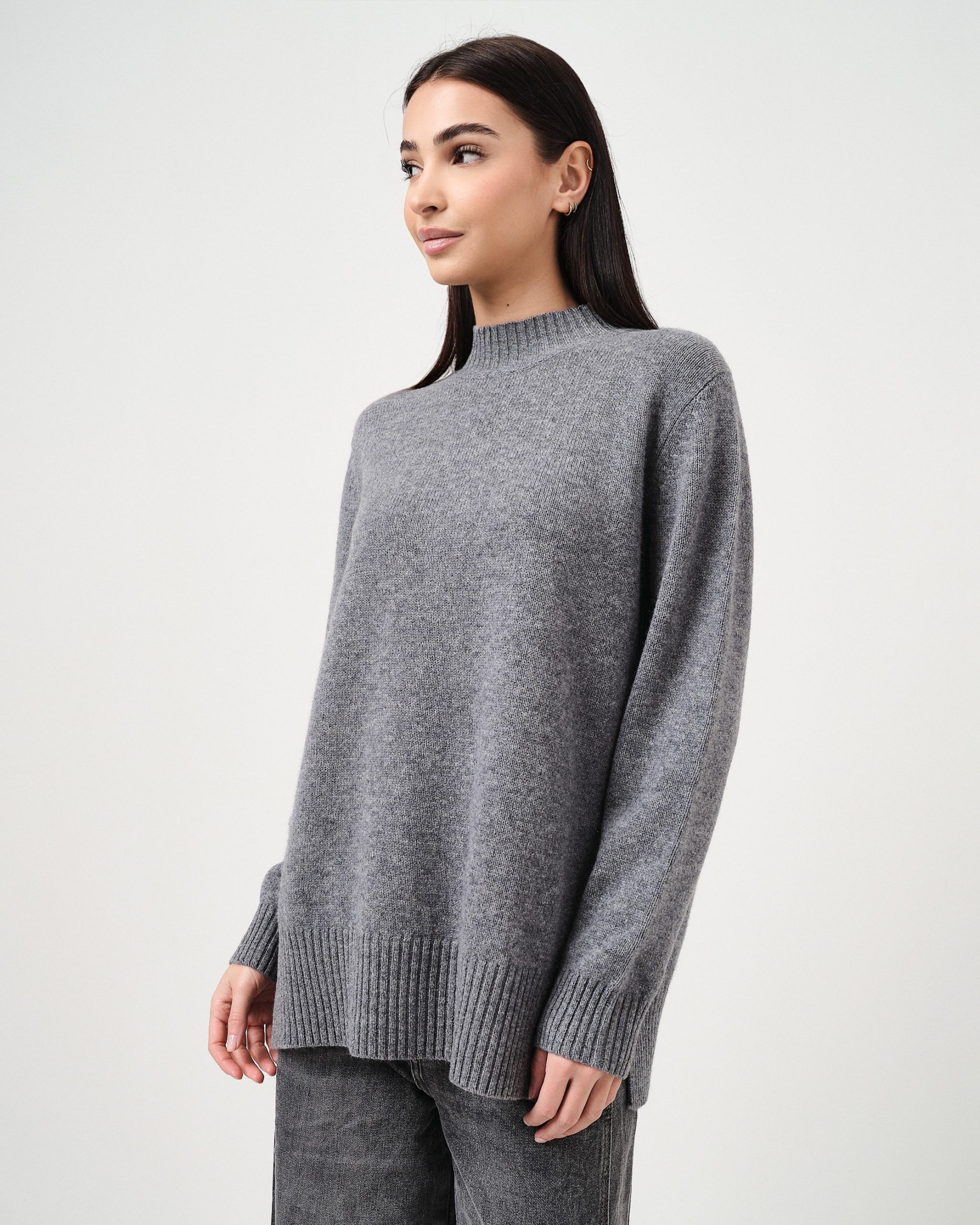Pullover oversize con collo a lupetto e spacchi laterali in pura lana.
