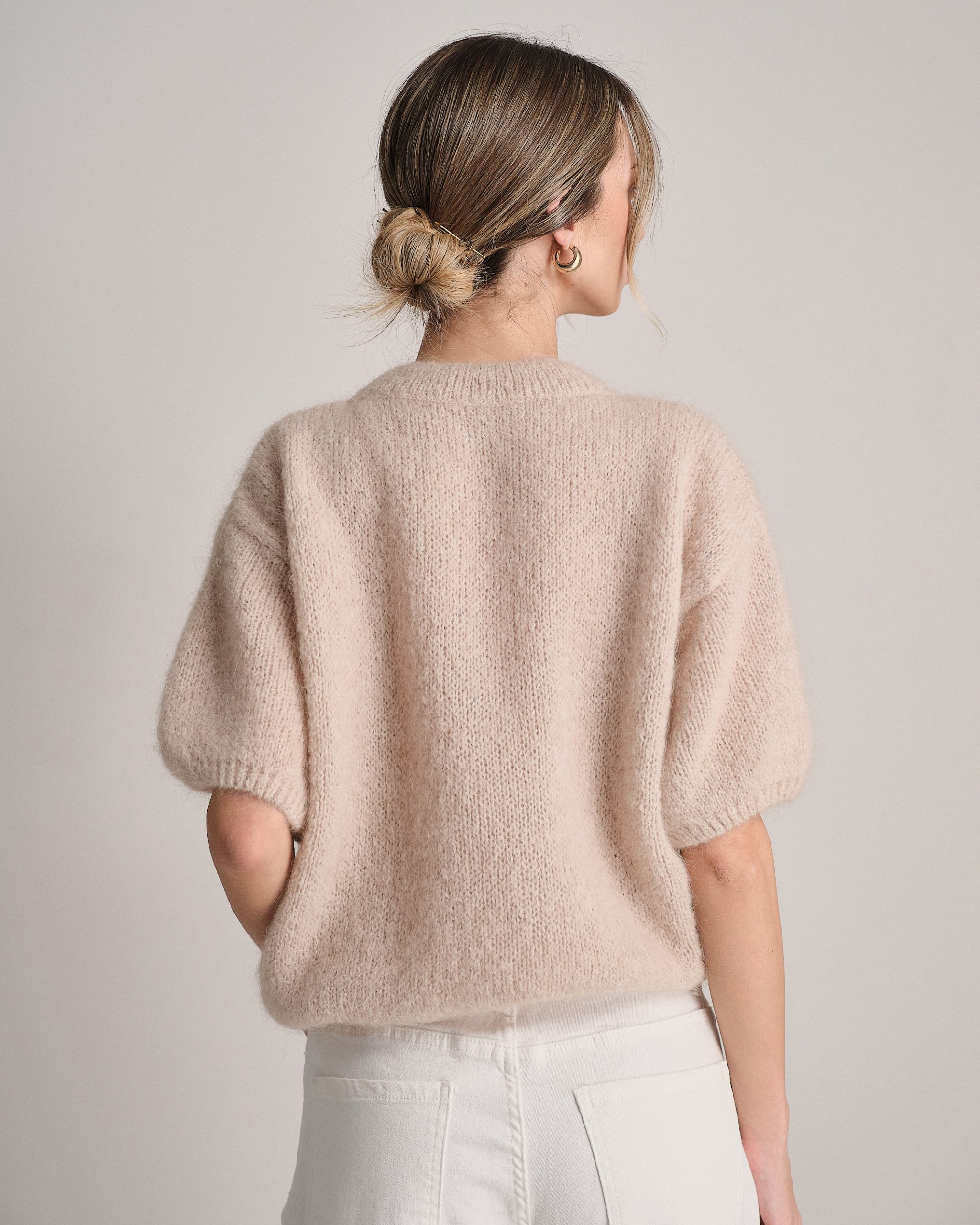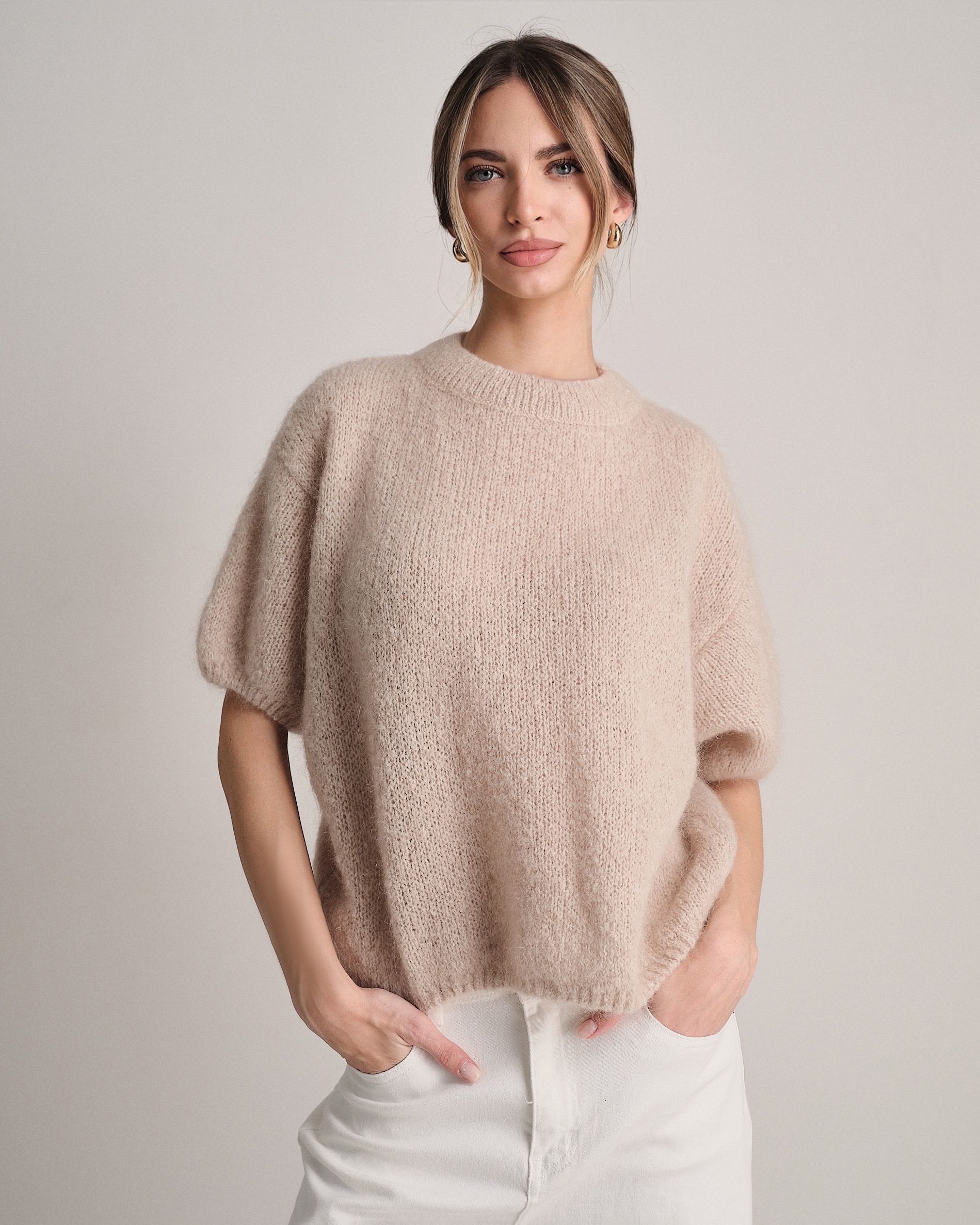 Pullover morbido a mezza manica in lana mohair.