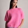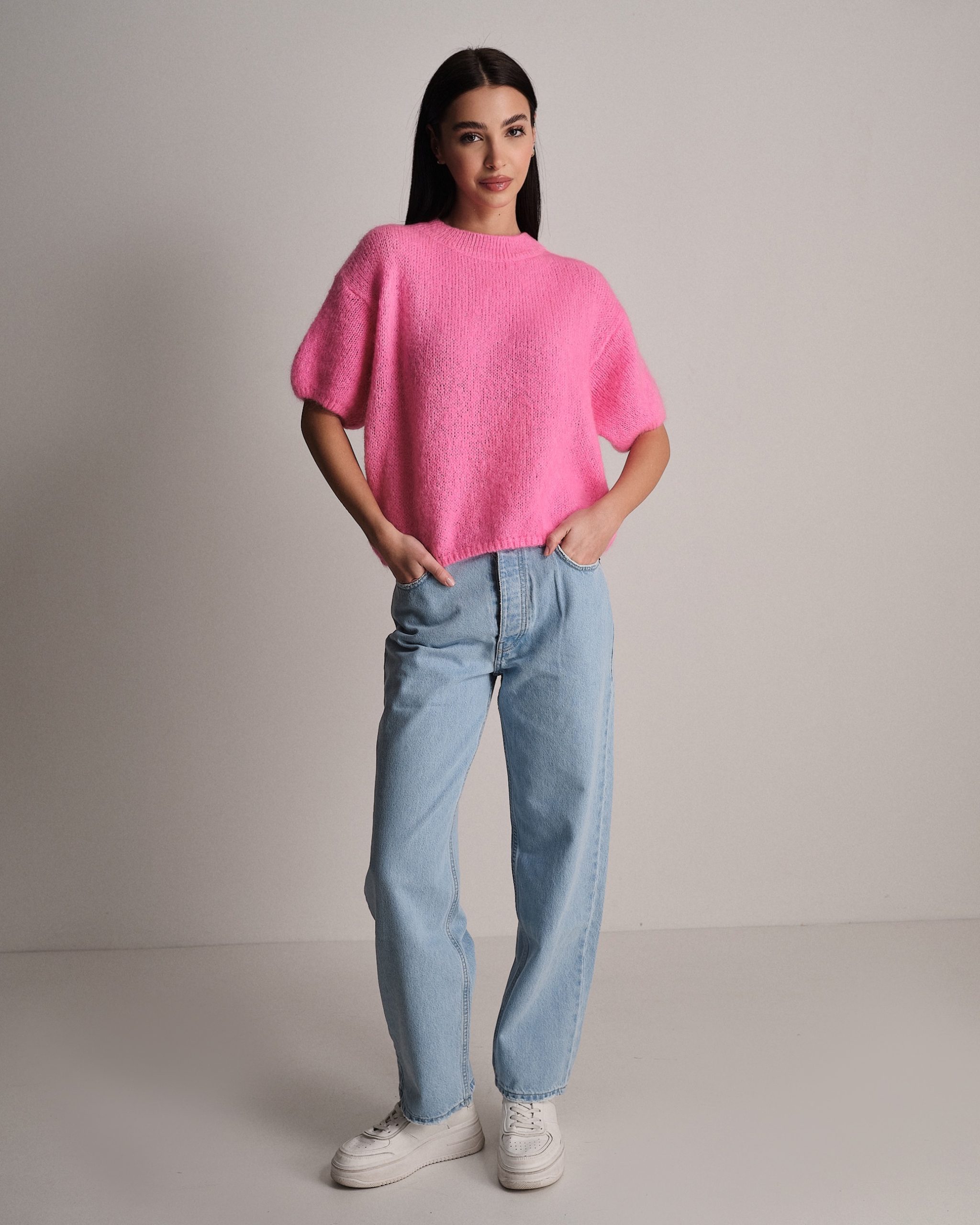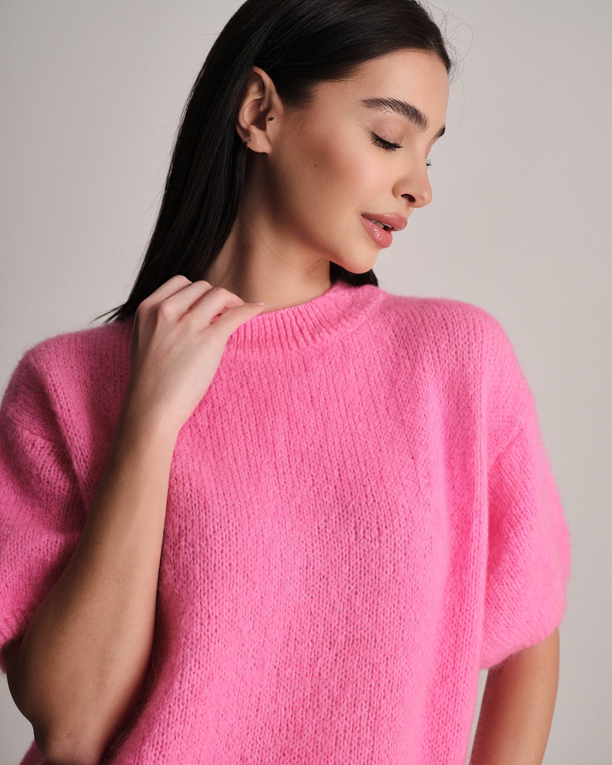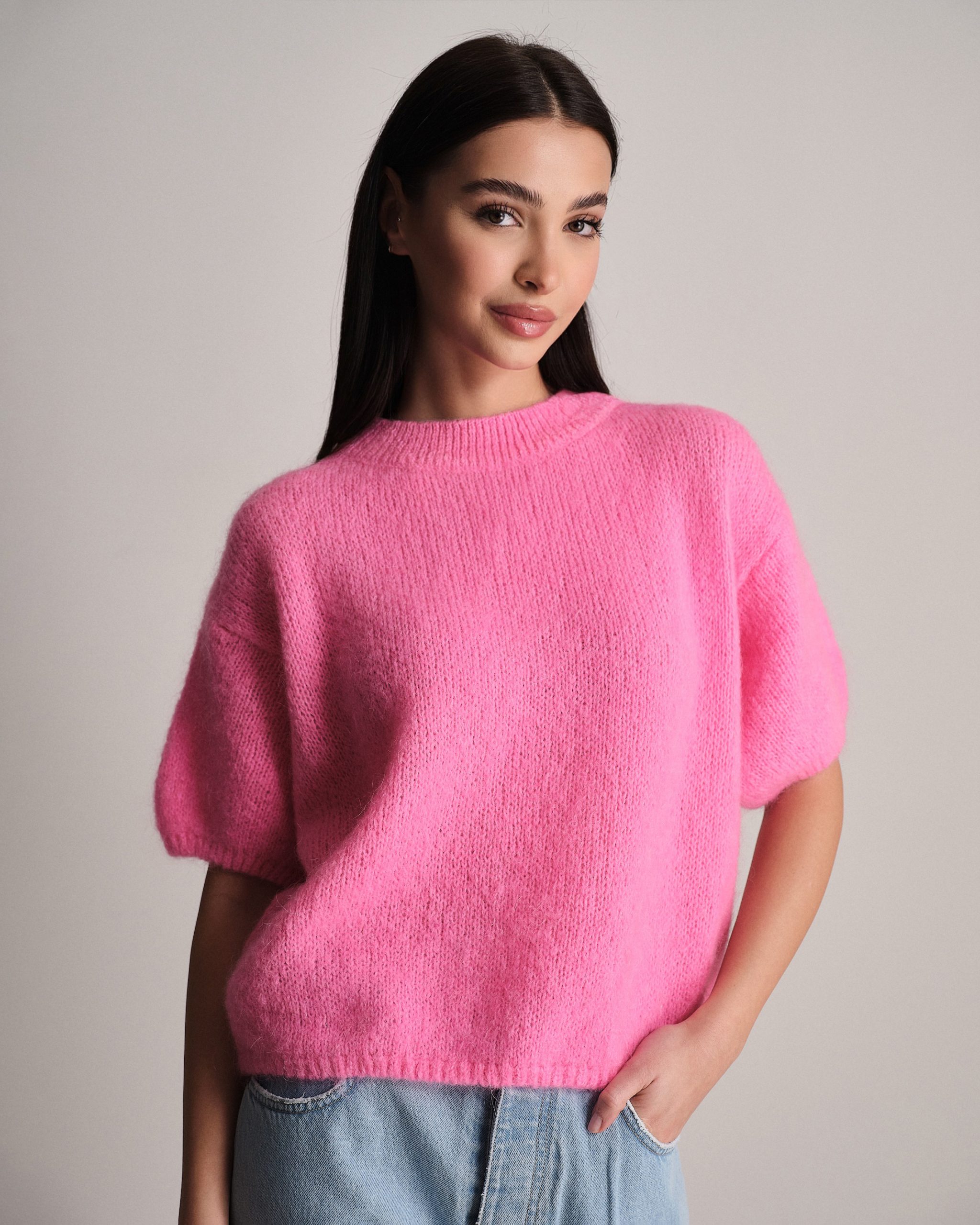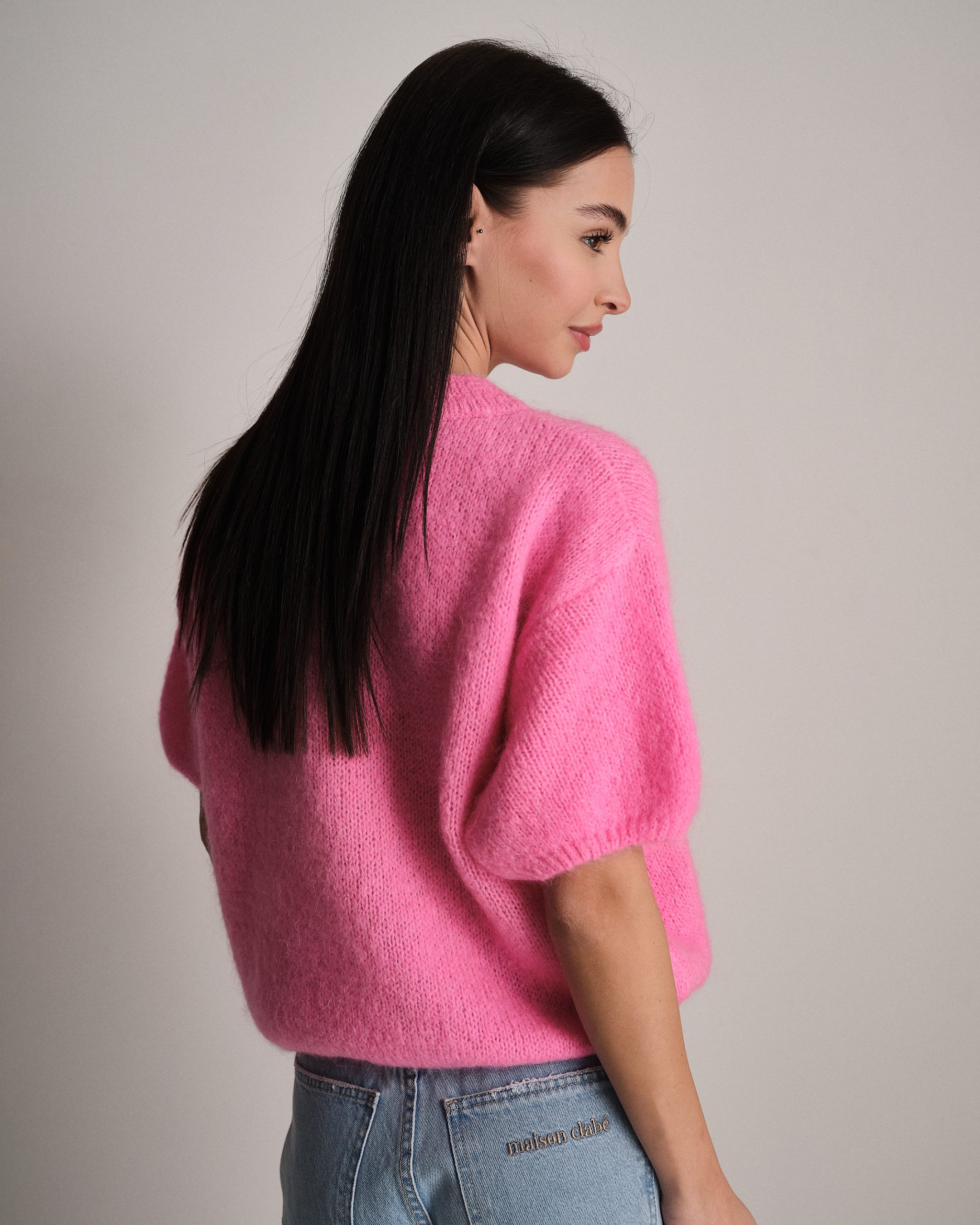 Pullover morbido a mezza manica in lana mohair.