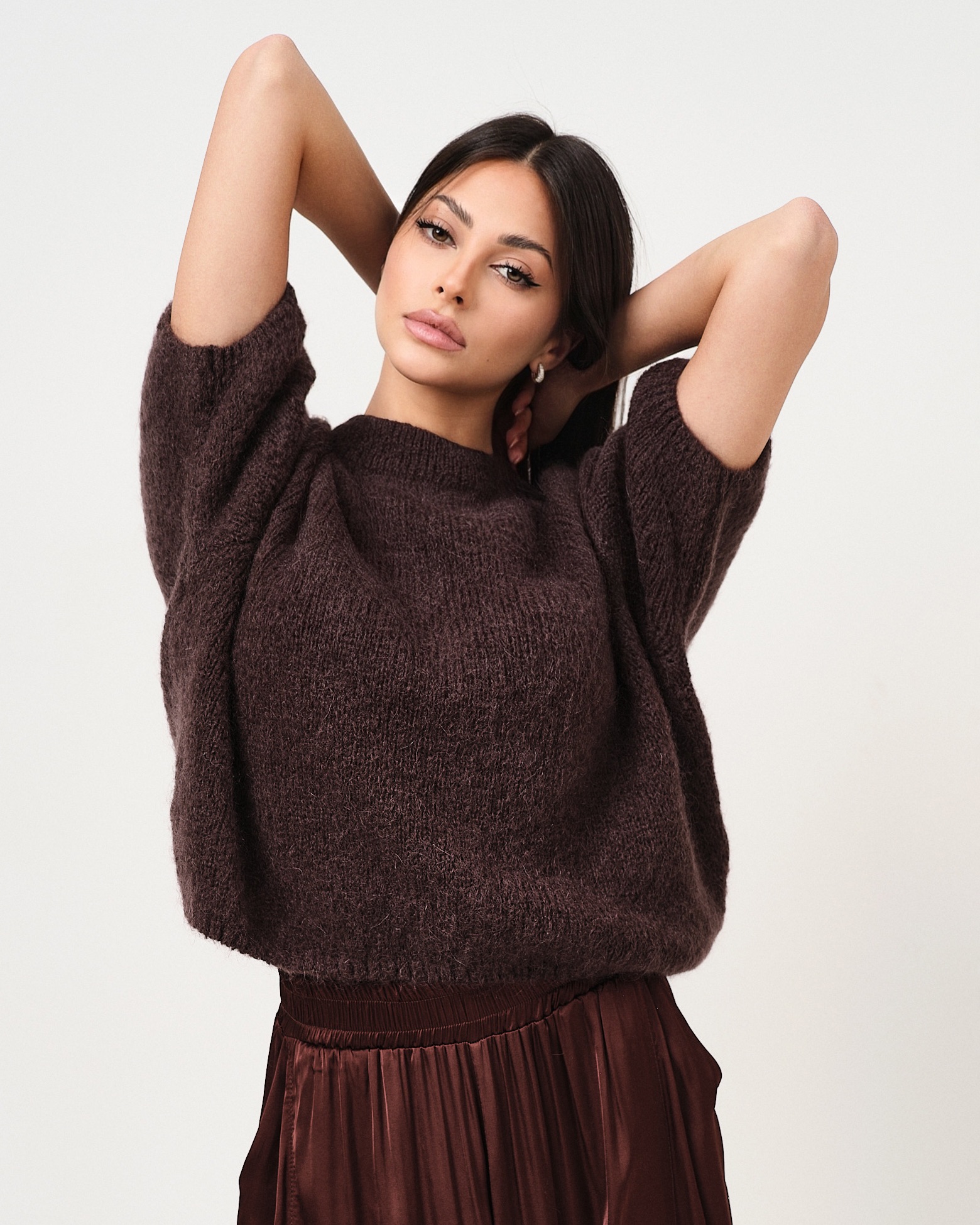 Pullover in misto lana a mezza manica con vestibilità ampia.