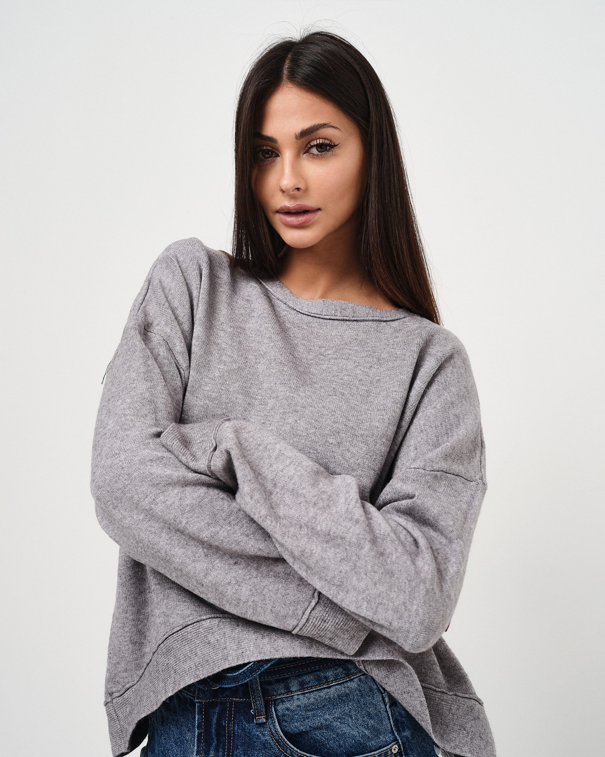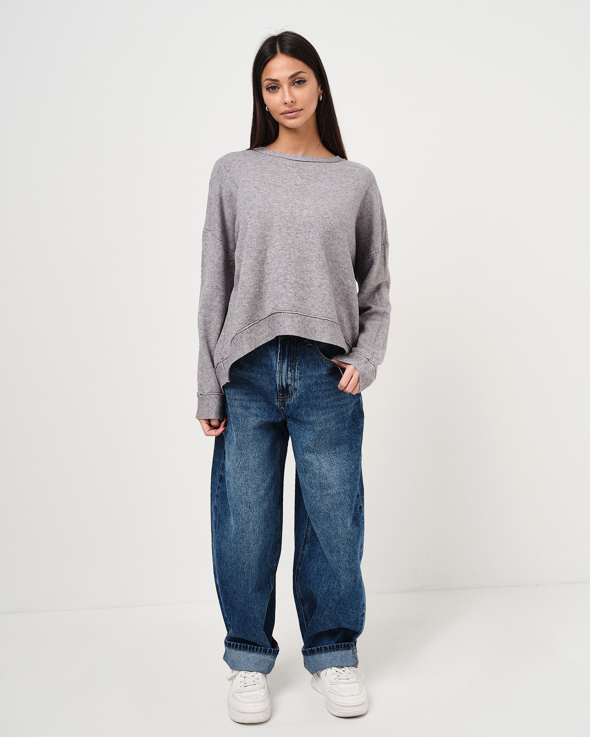 La modella è alta 1,63m e indossa la taglia UNI.