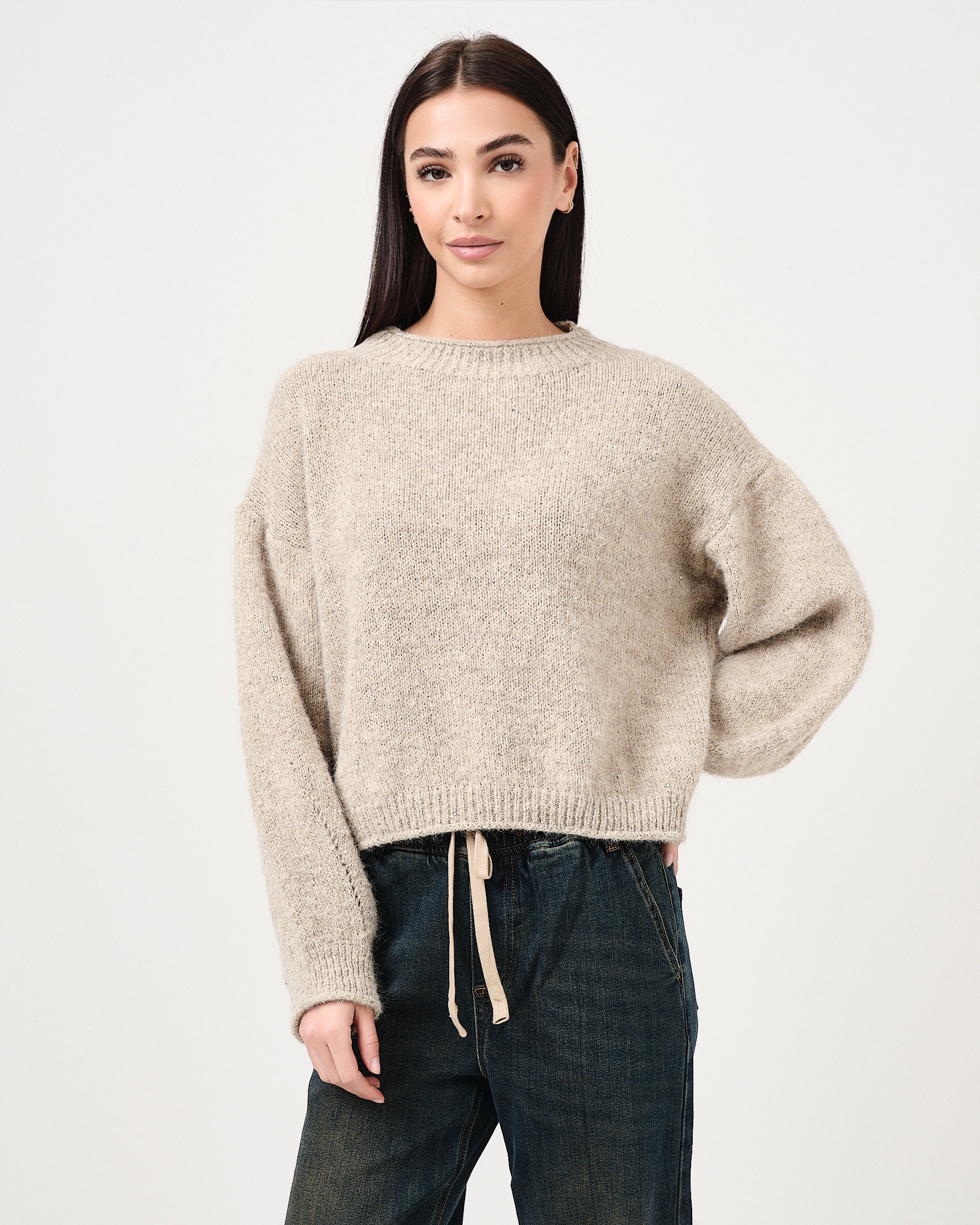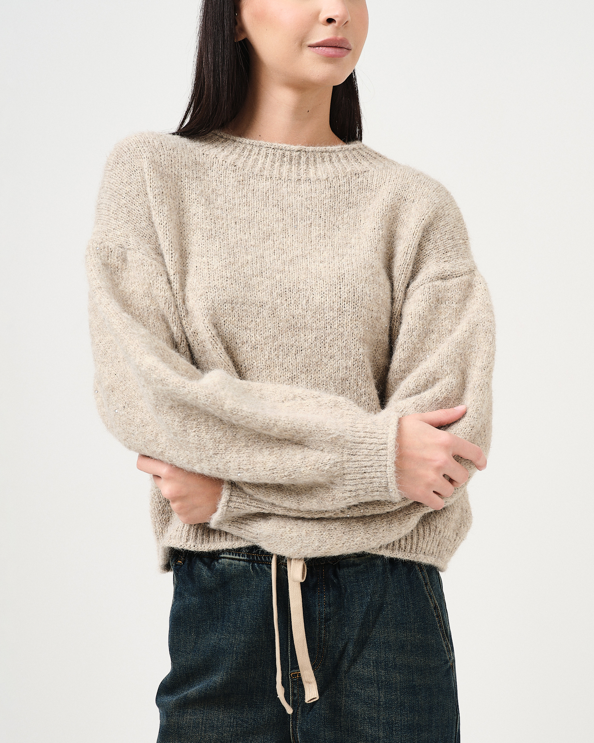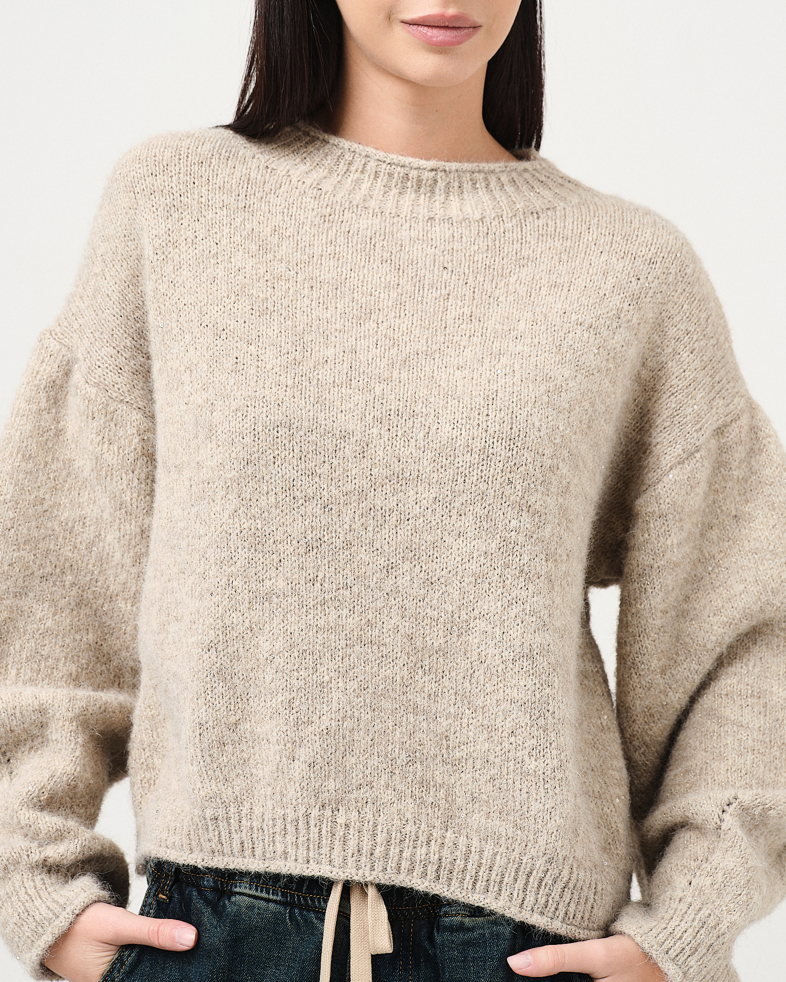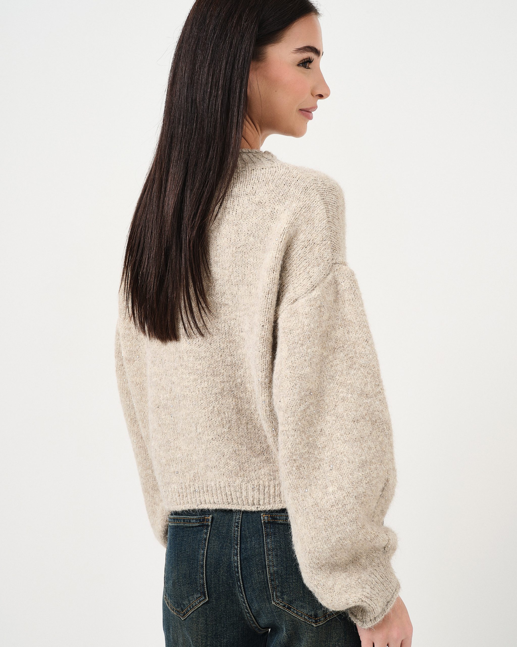 Pullover in lurex oversize a scatoletta con manica ampia e micropaillettes.