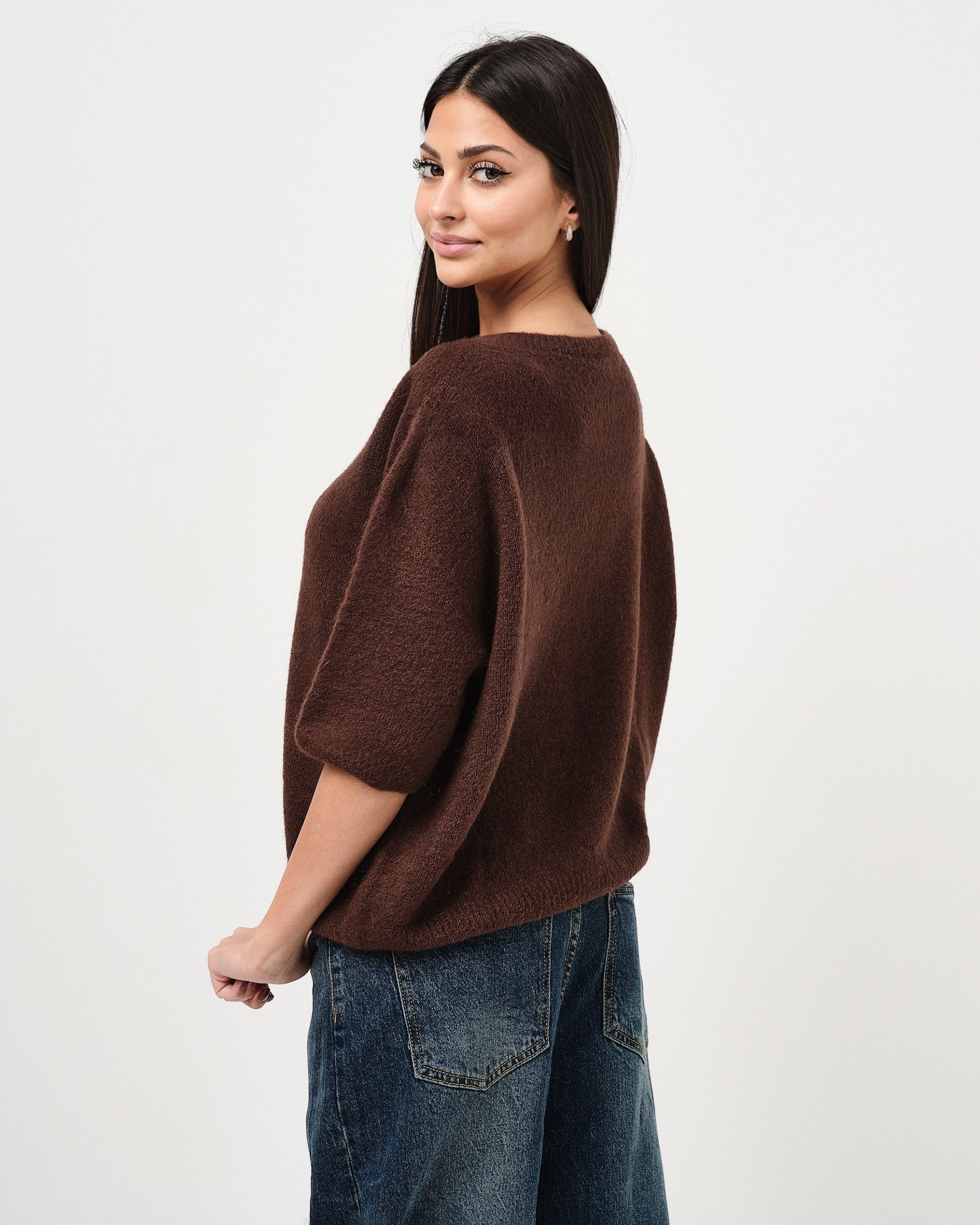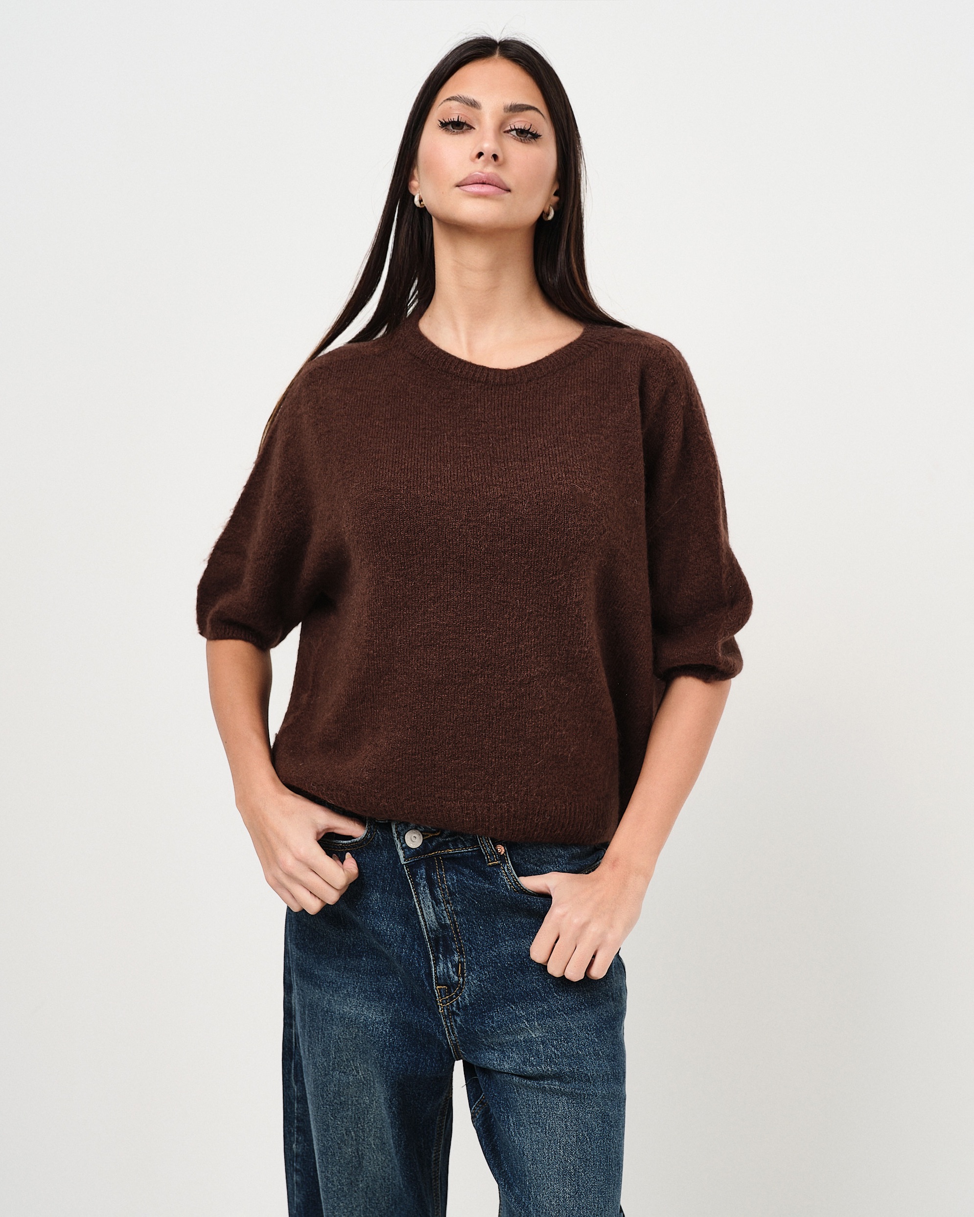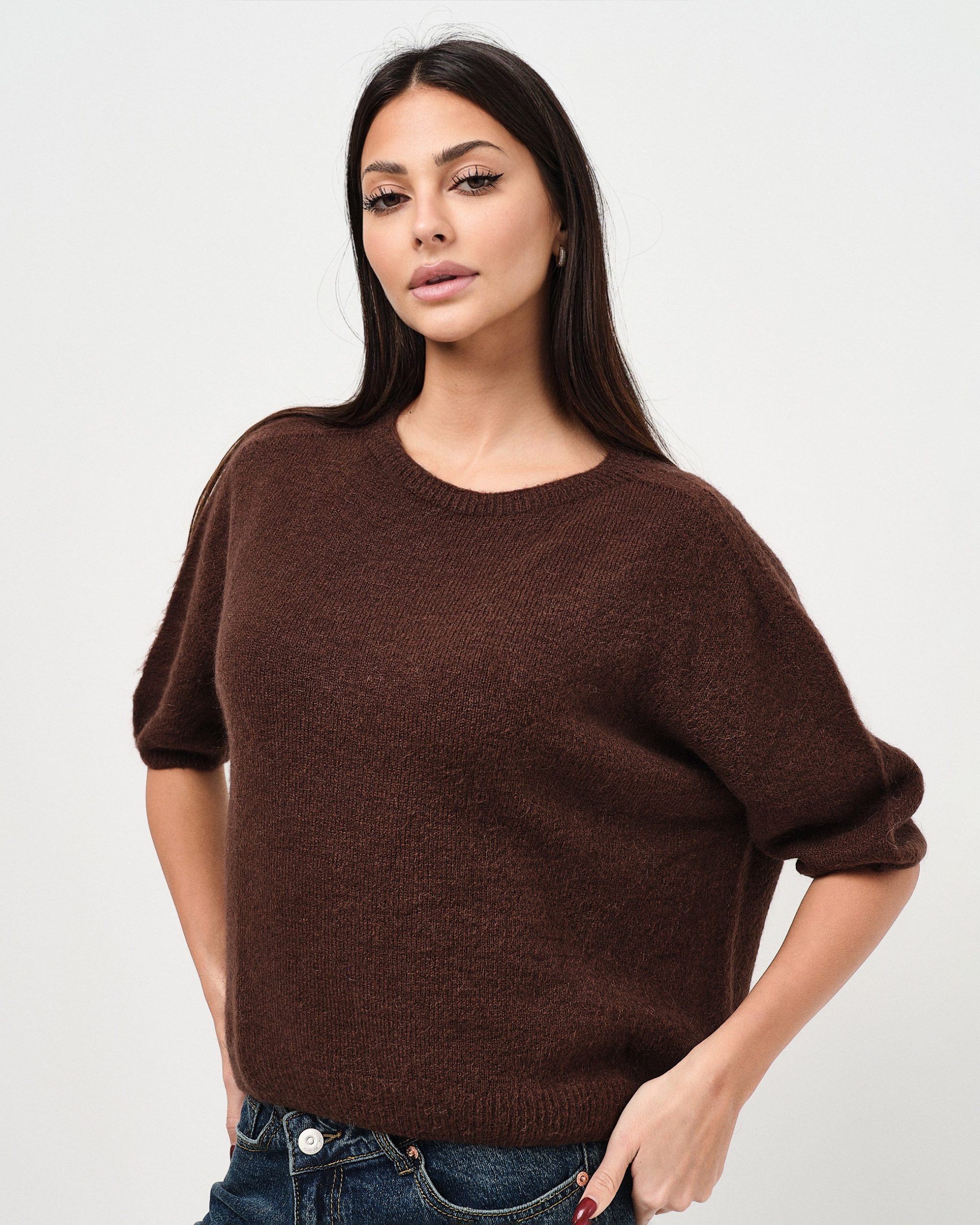 Pullover regular fit a girocollo con manica a tre quarti in alpaca.