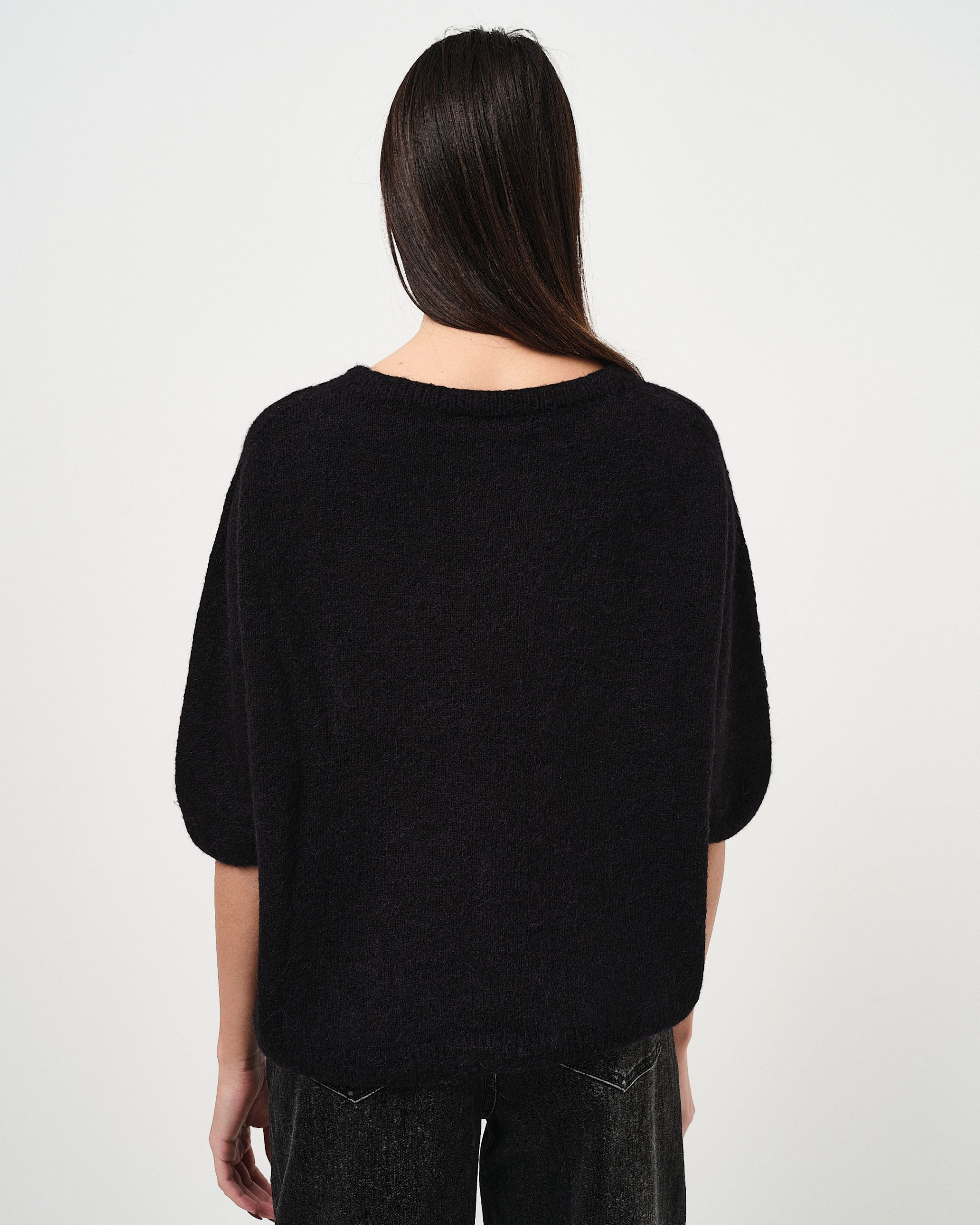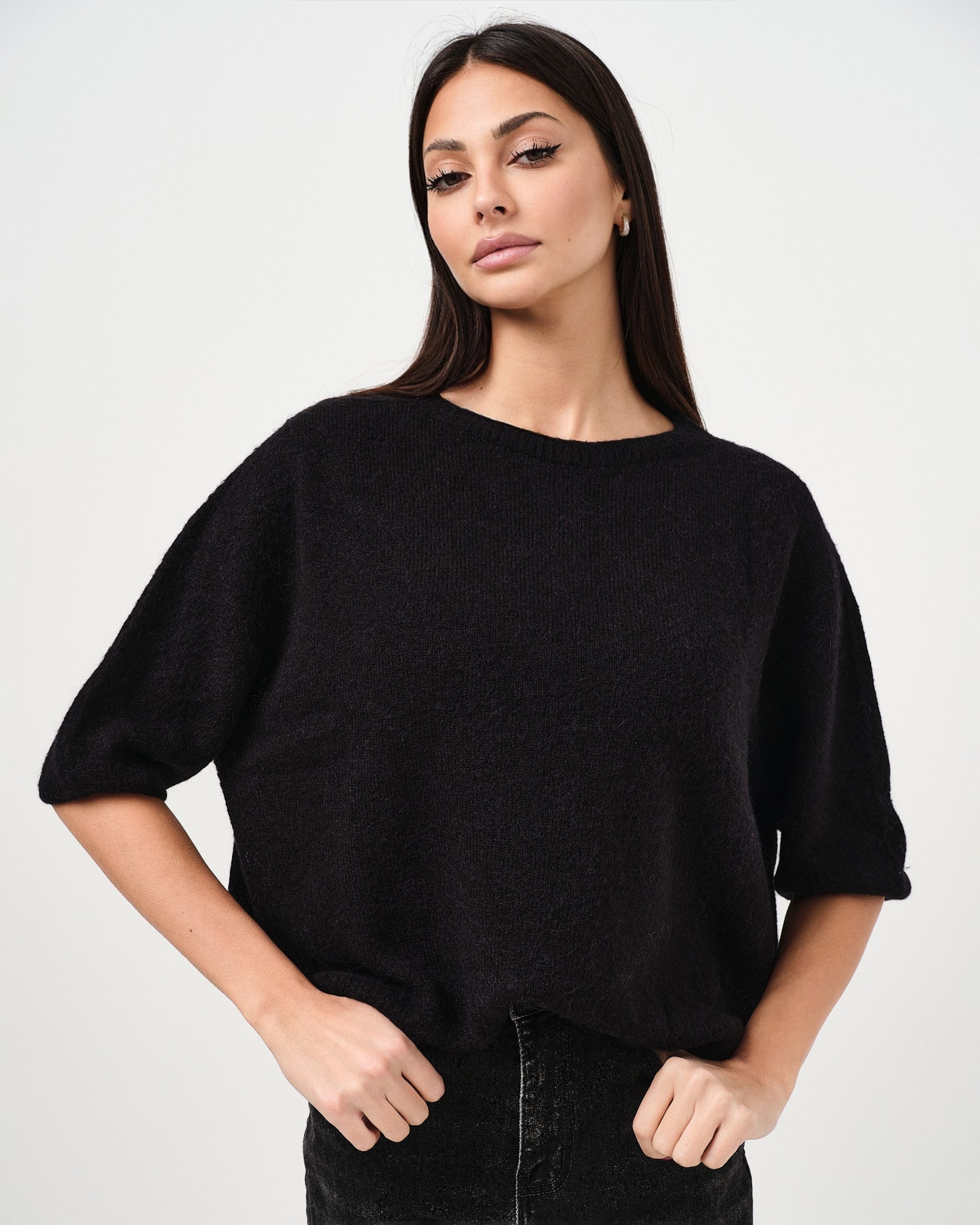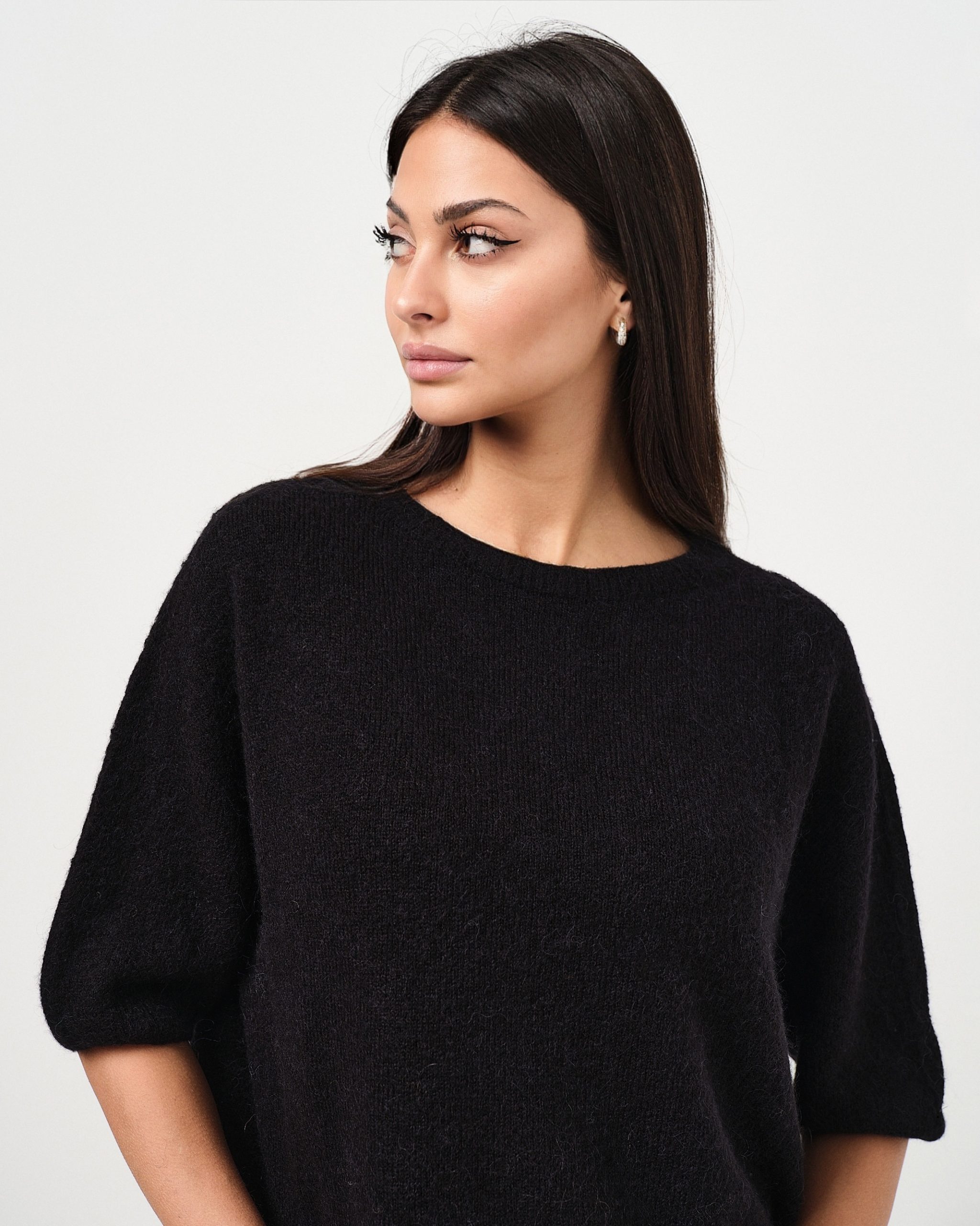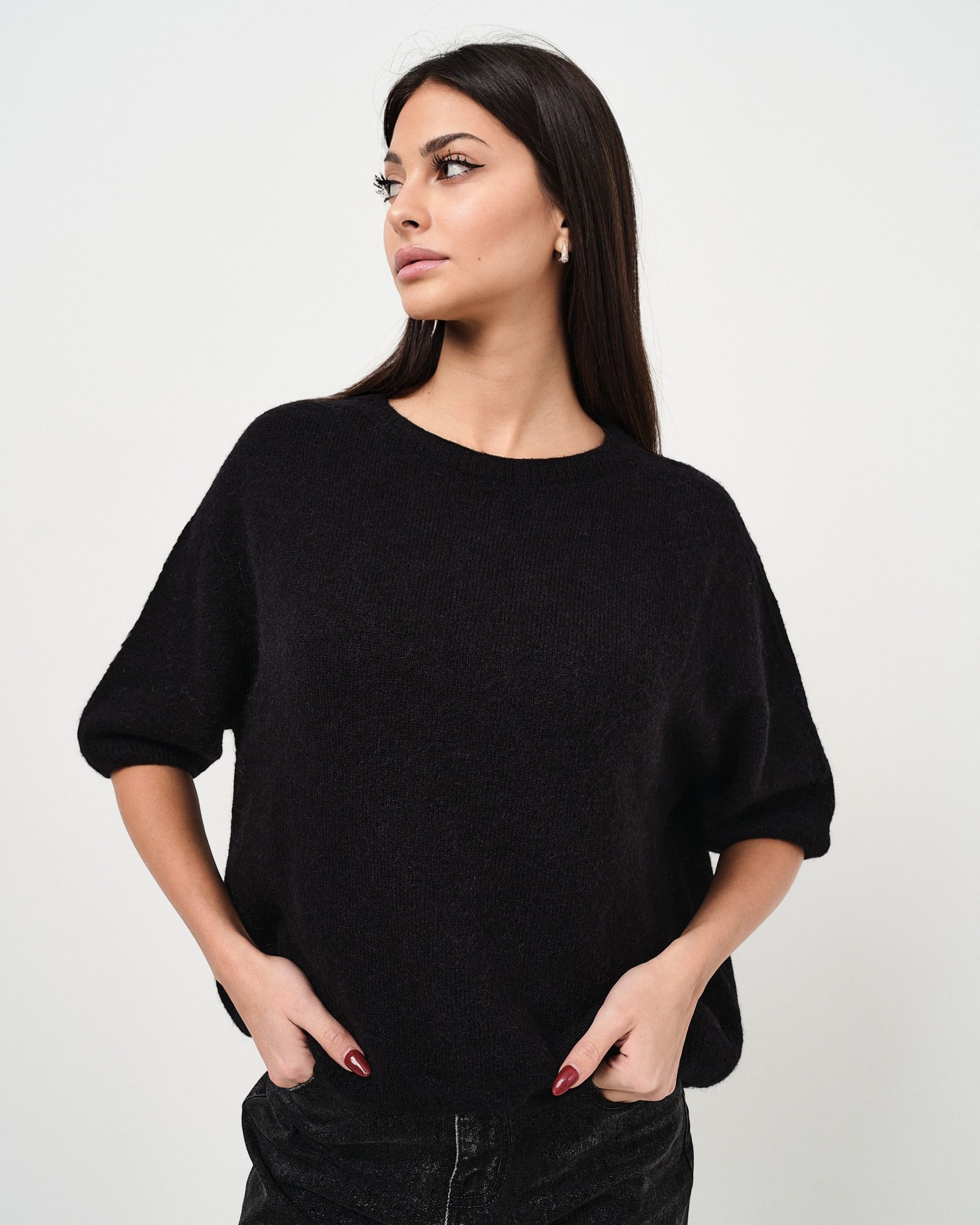 Pullover regular fit a girocollo con manica a tre quarti in alpaca.