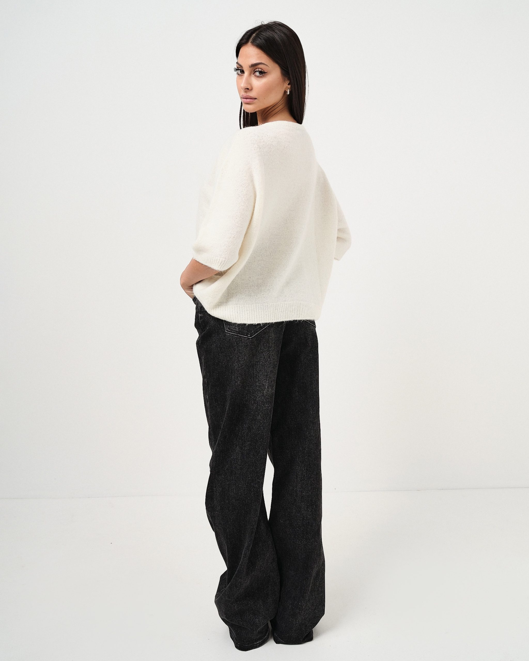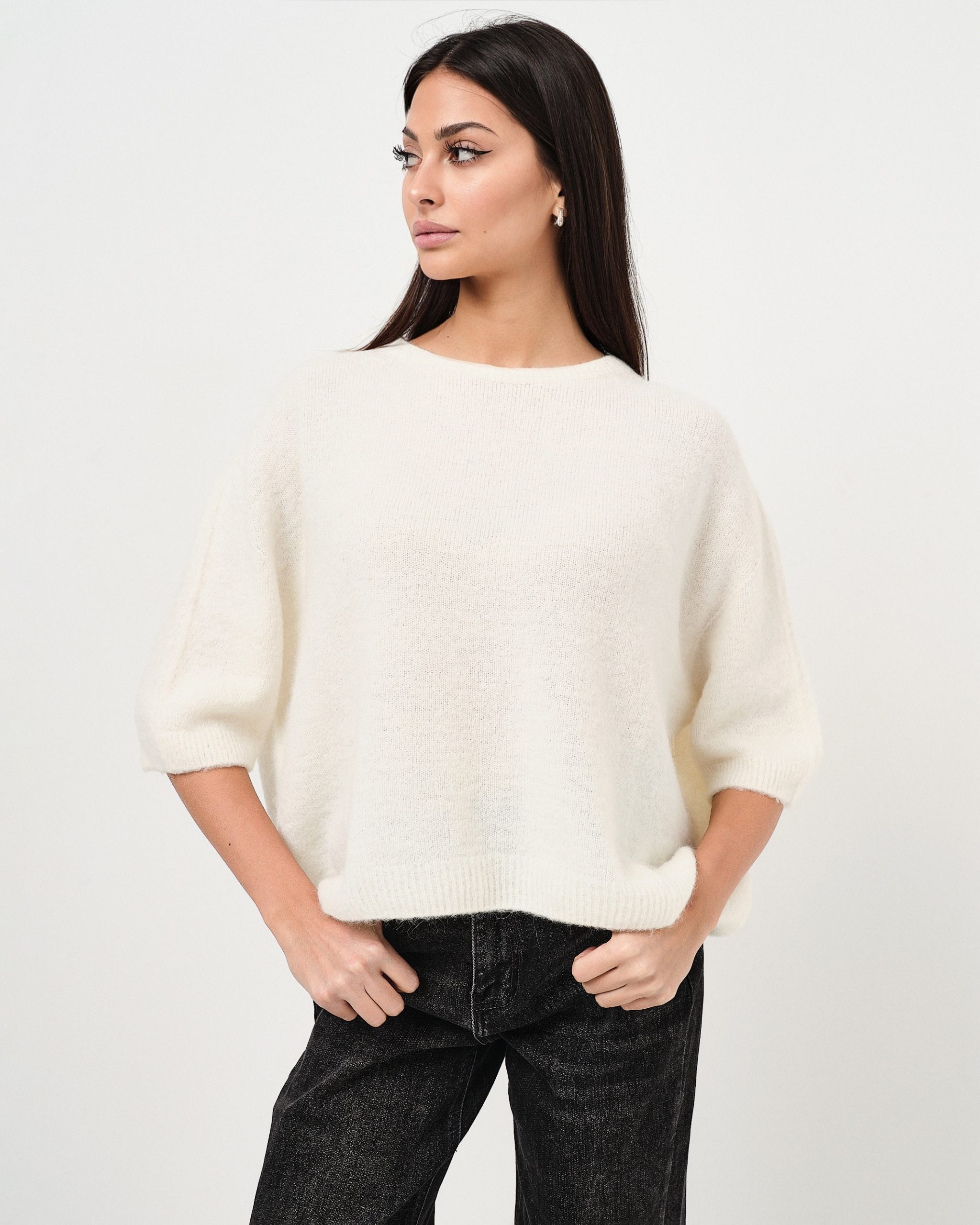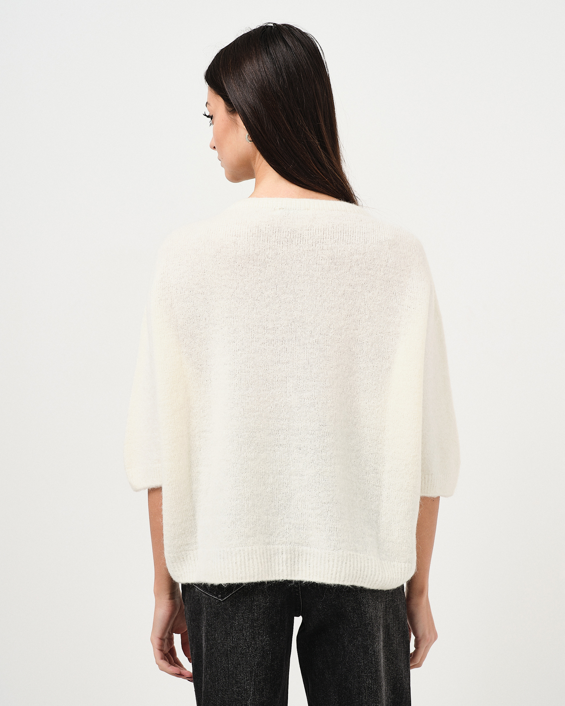 Pullover regular fit a girocollo con manica a tre quarti in alpaca.