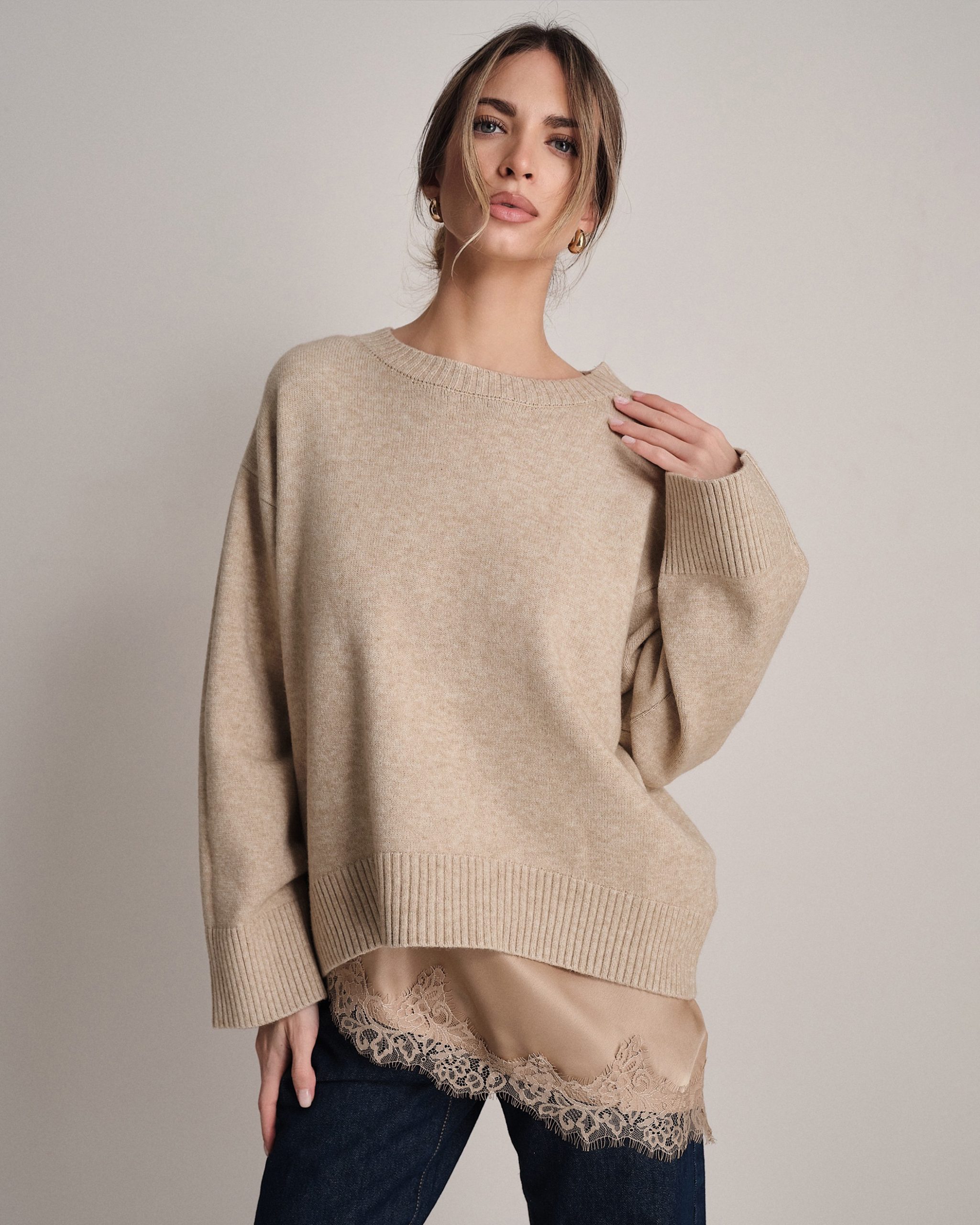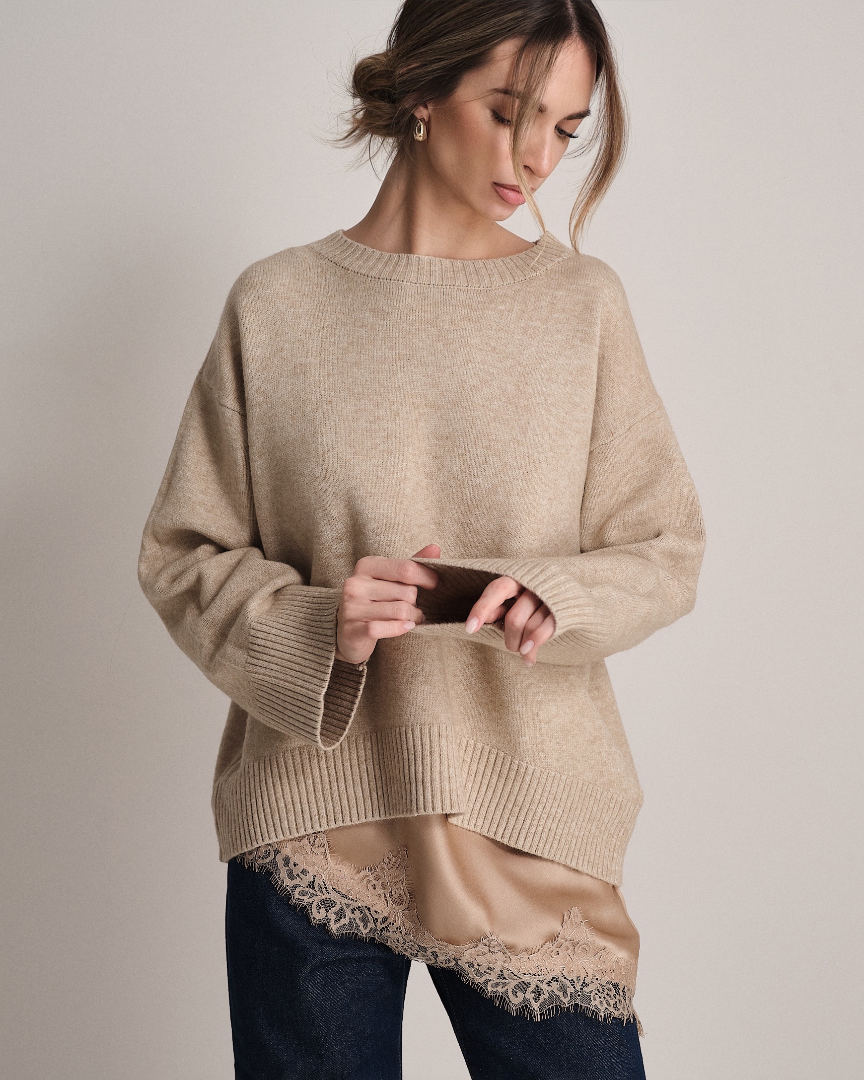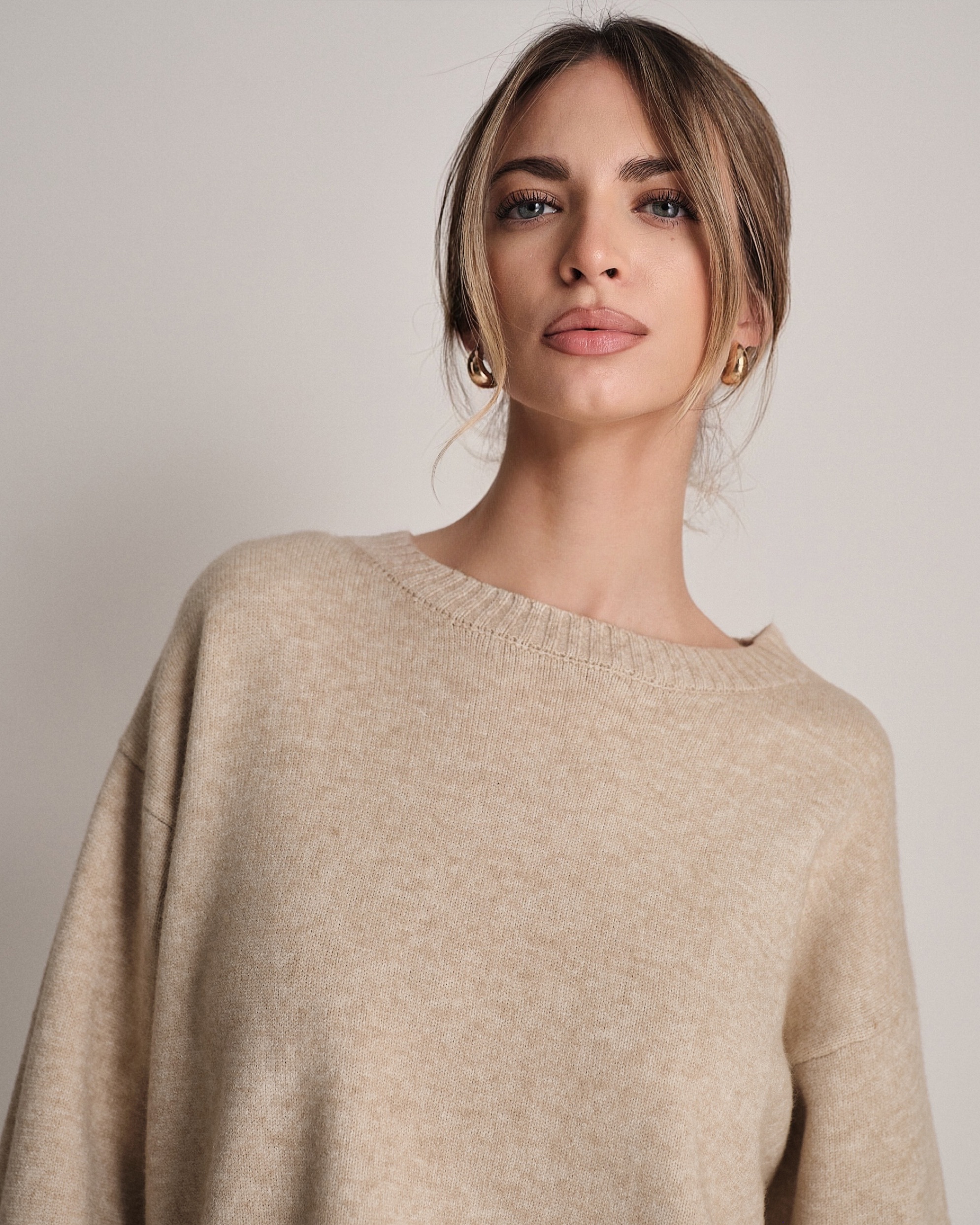 Pullover ampio a girocollo con fondo svasato e manica larga.
