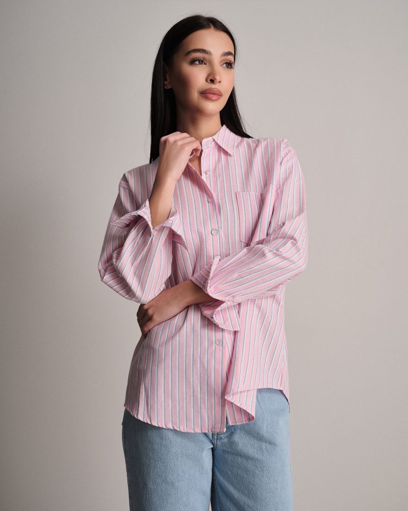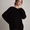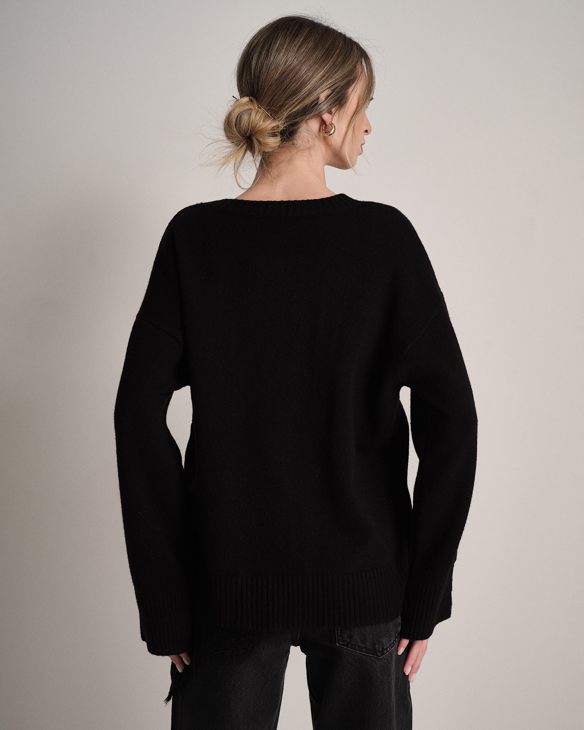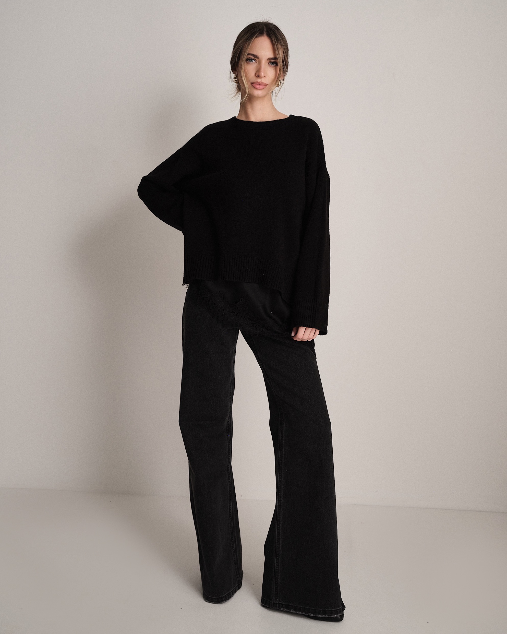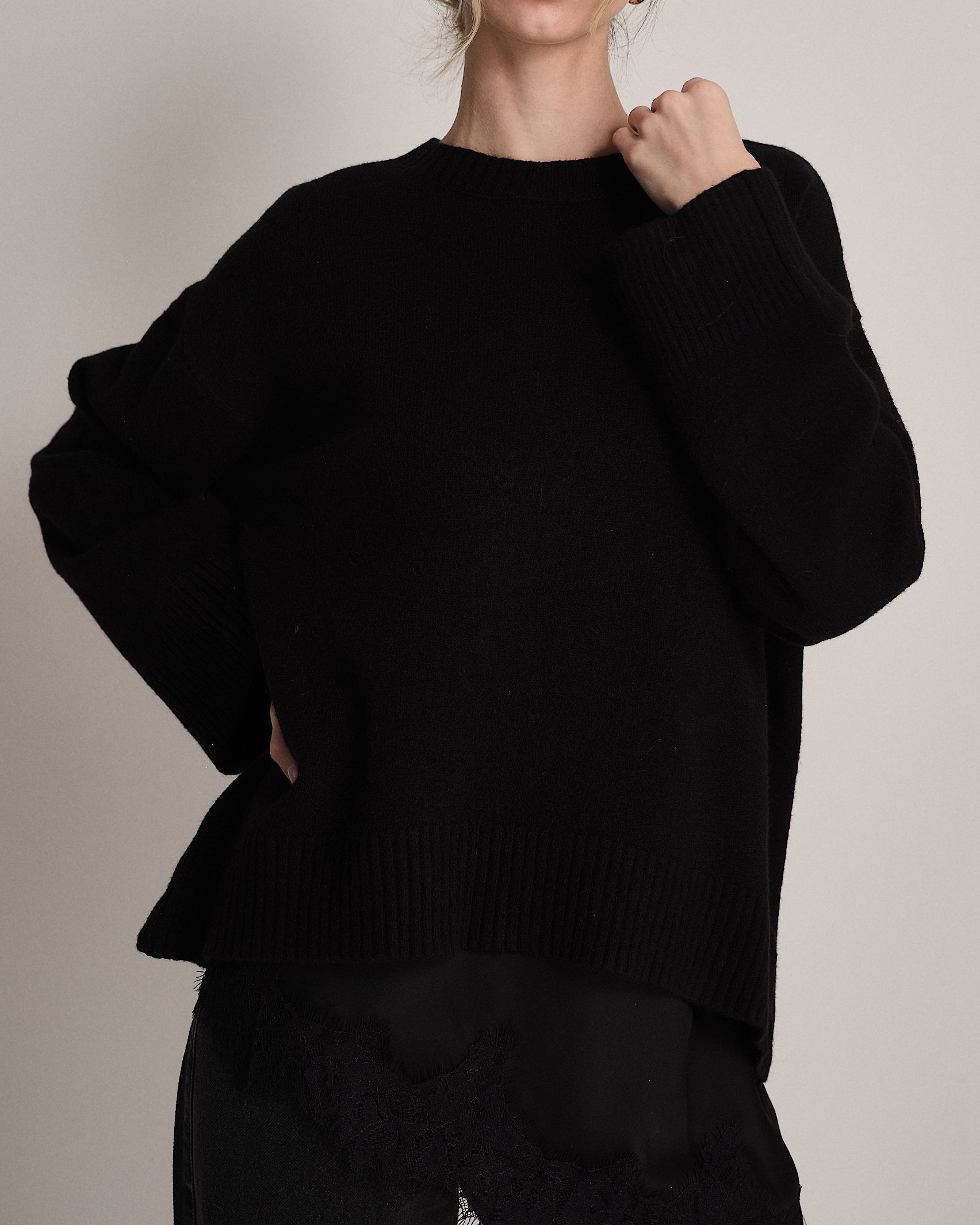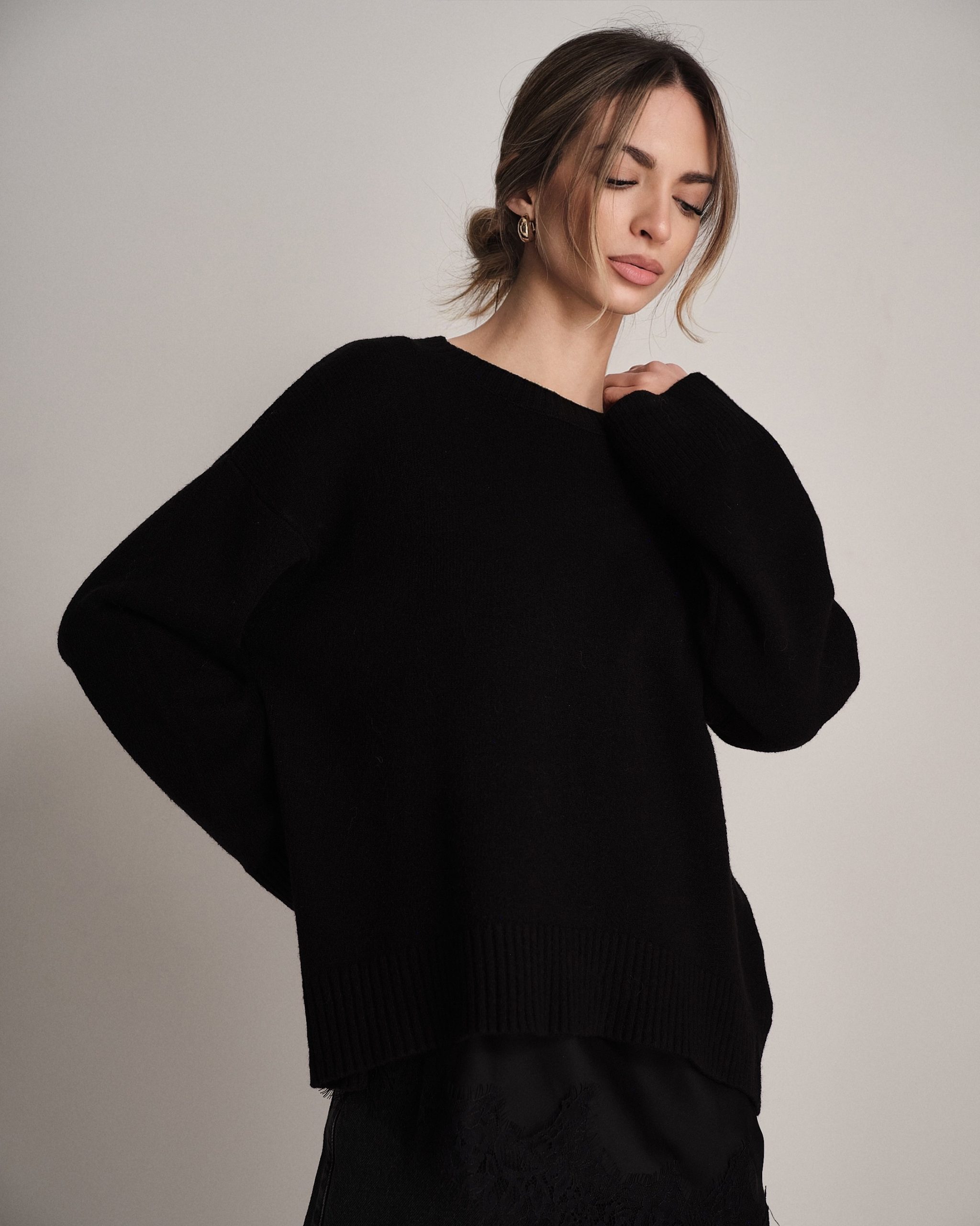 Pullover ampio a girocollo con fondo svasato e manica larga.