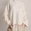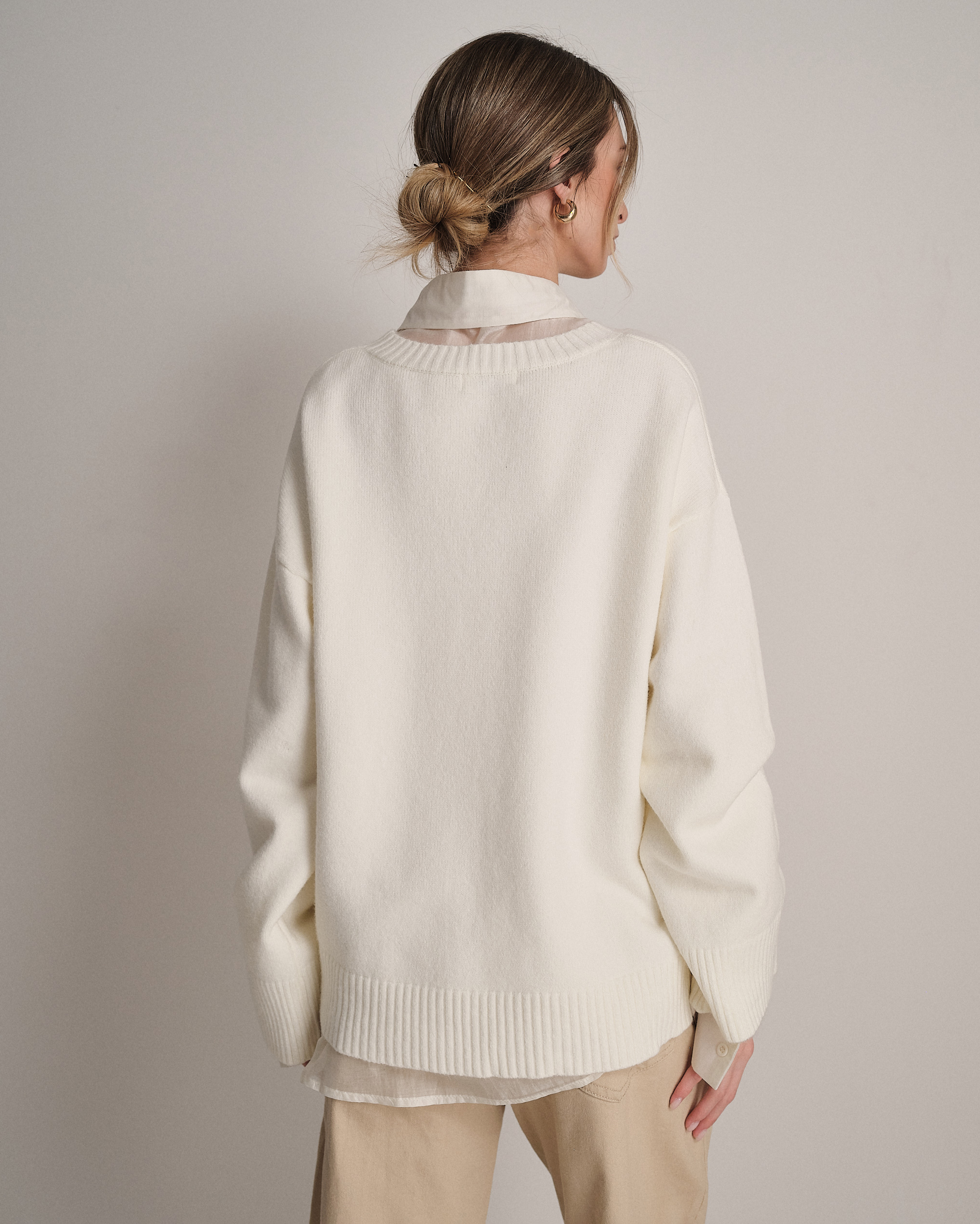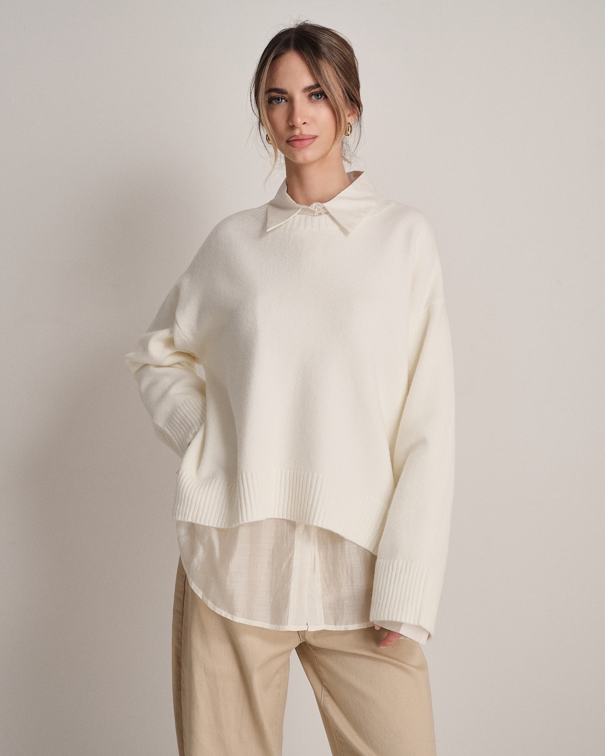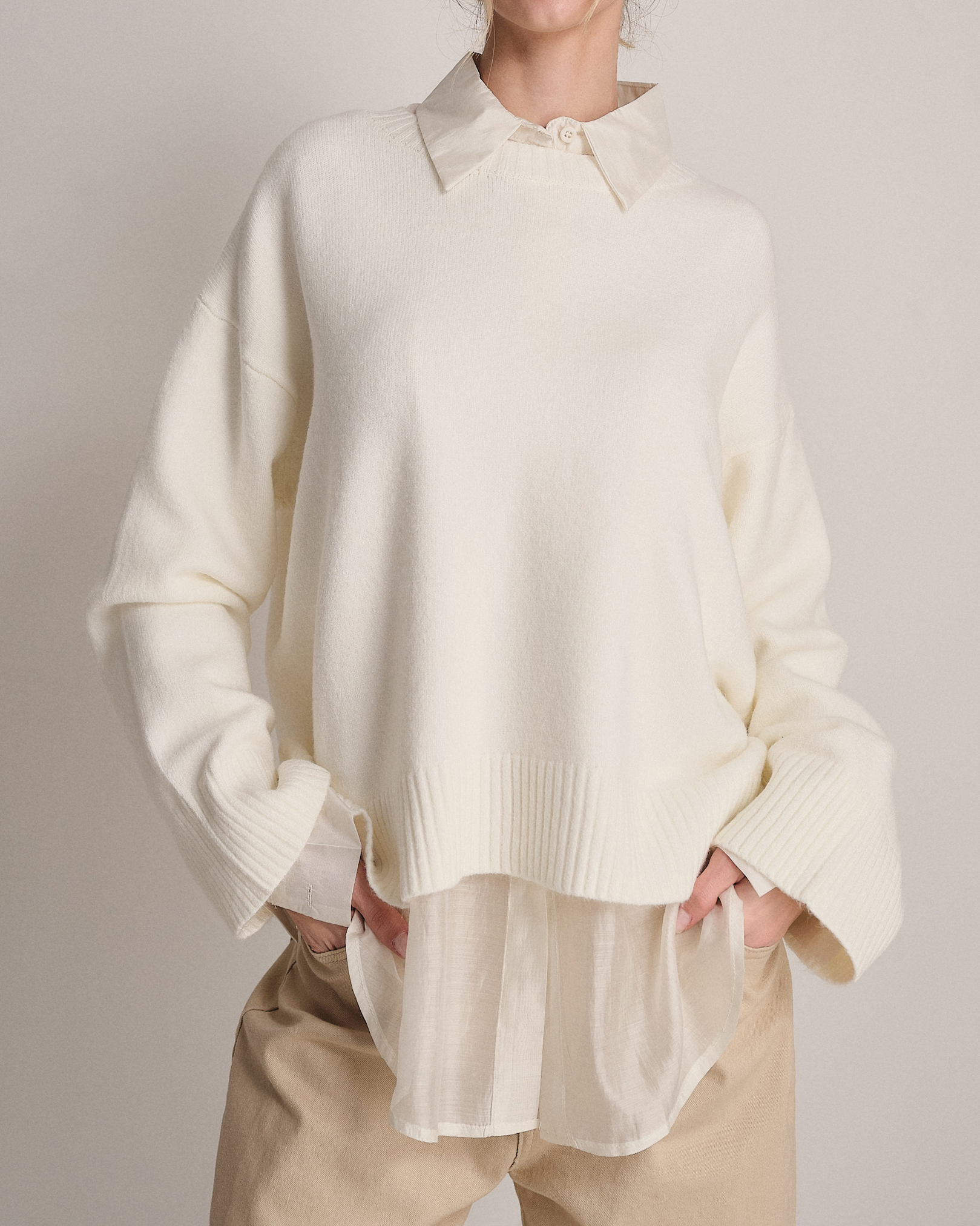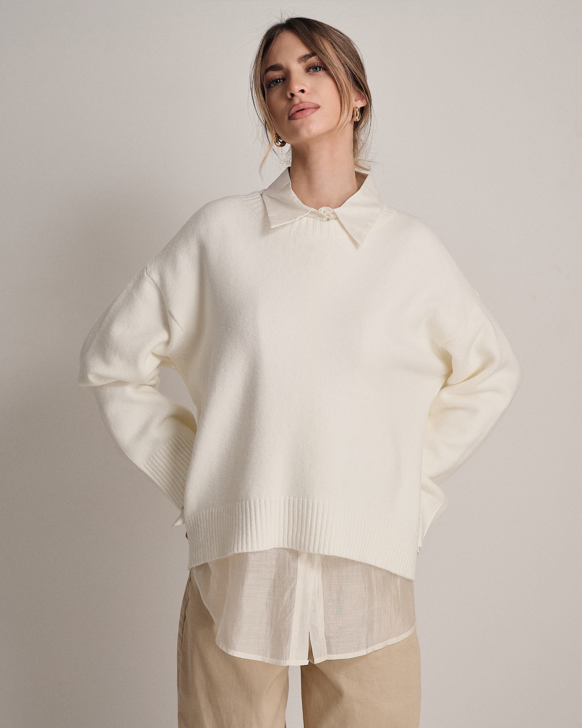Pullover ampio a girocollo con fondo svasato e manica larga.