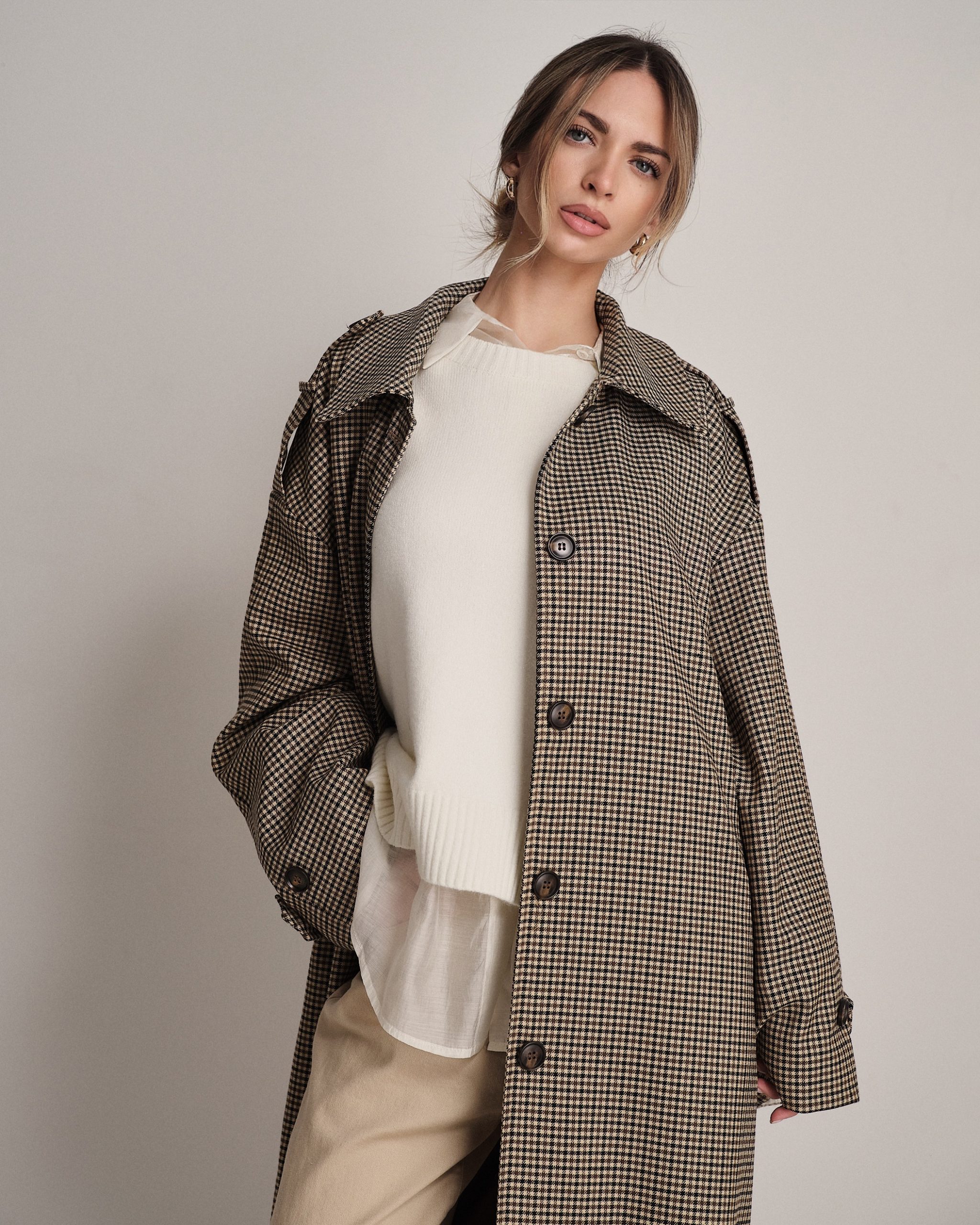 La modella è alta 1,75m e indossa la taglia UNI.