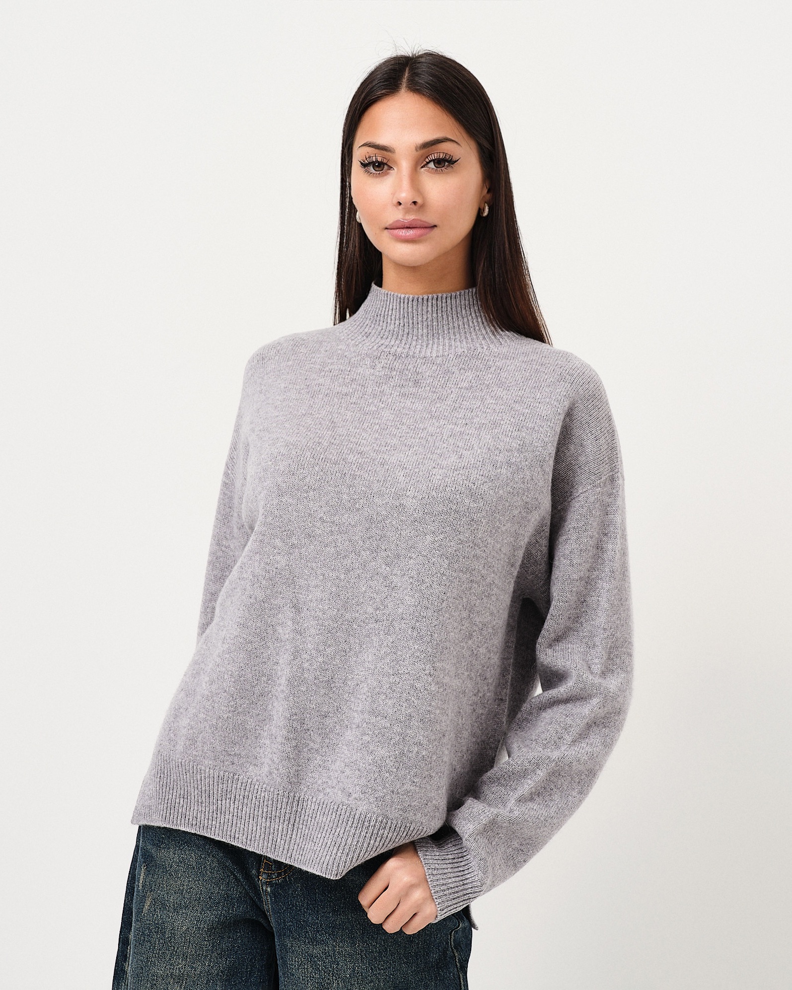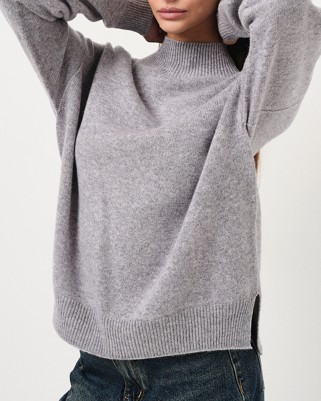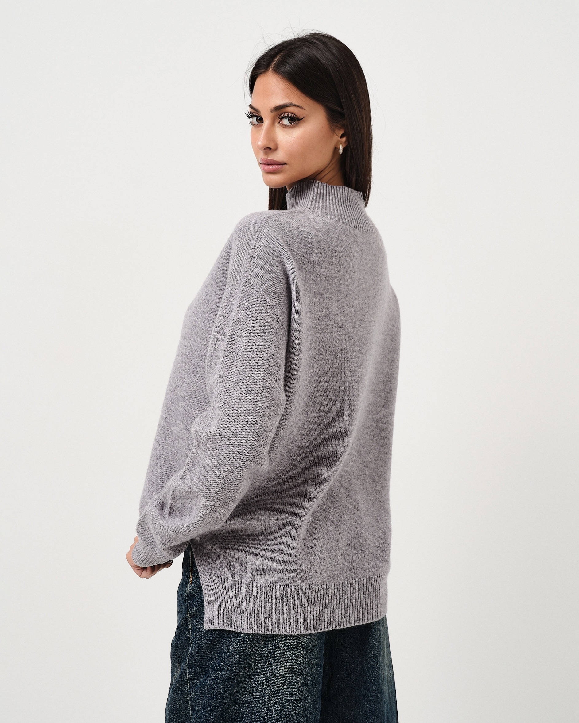 Maglione oversize a collo alto in pura lana con spacchi laterali.