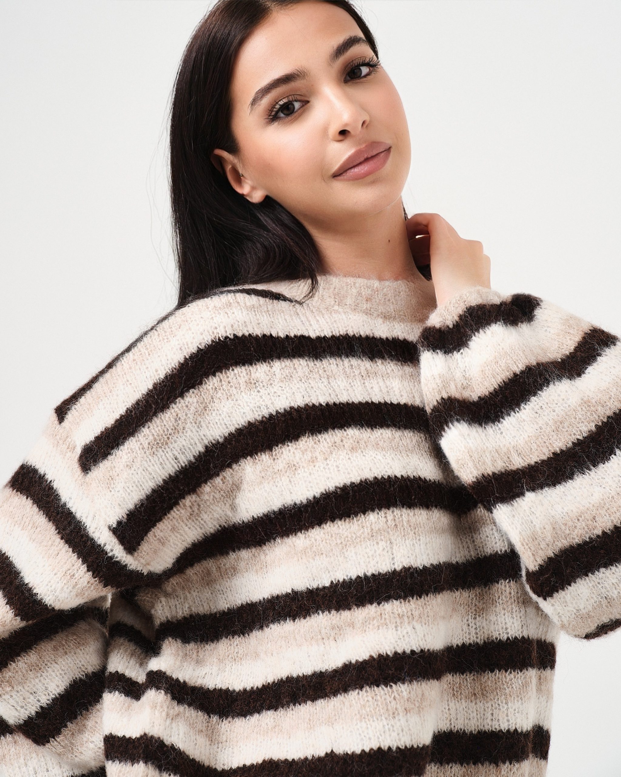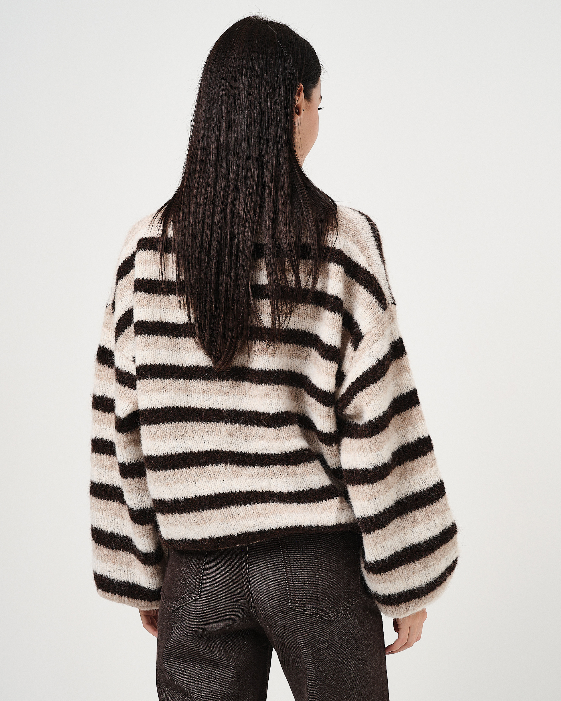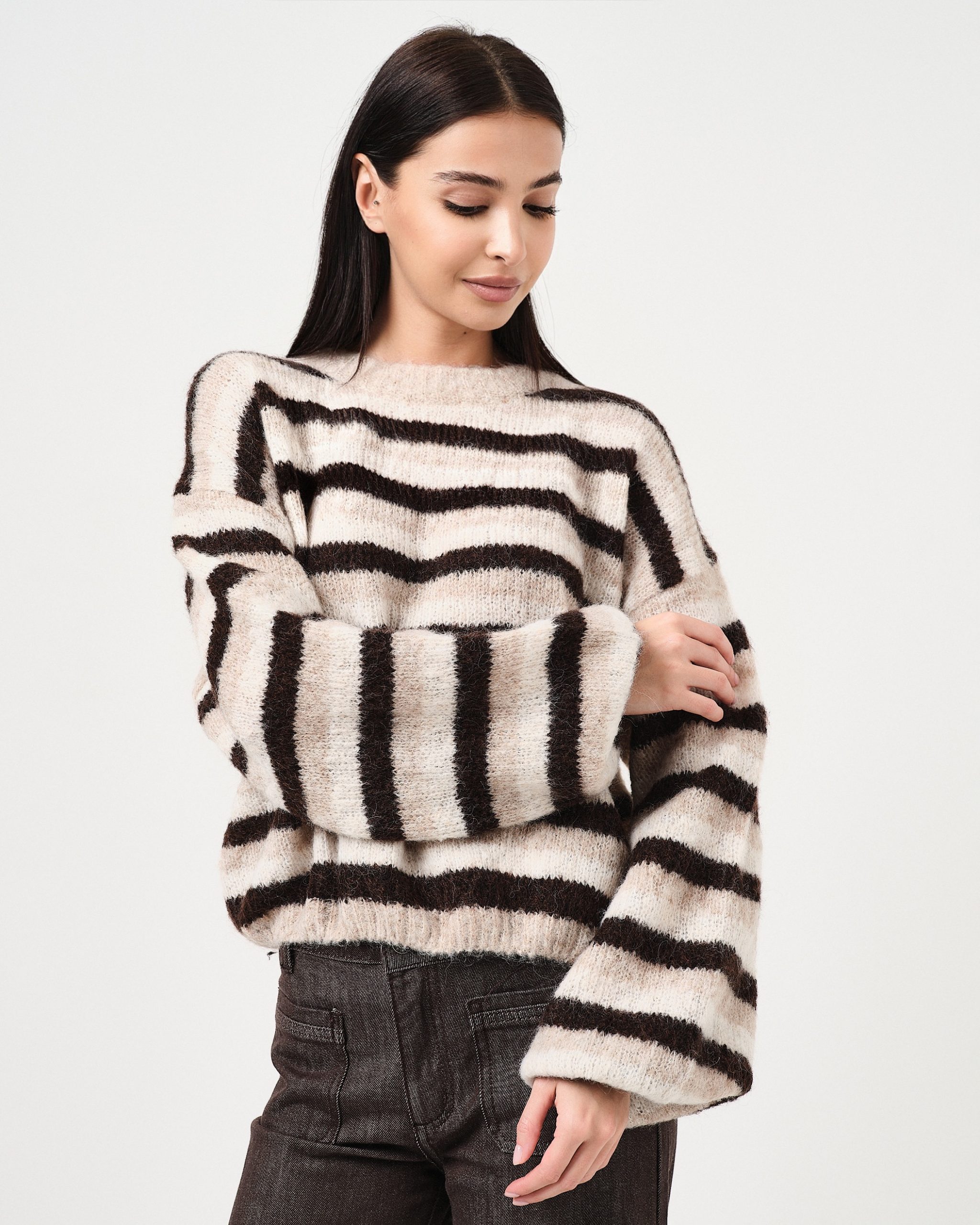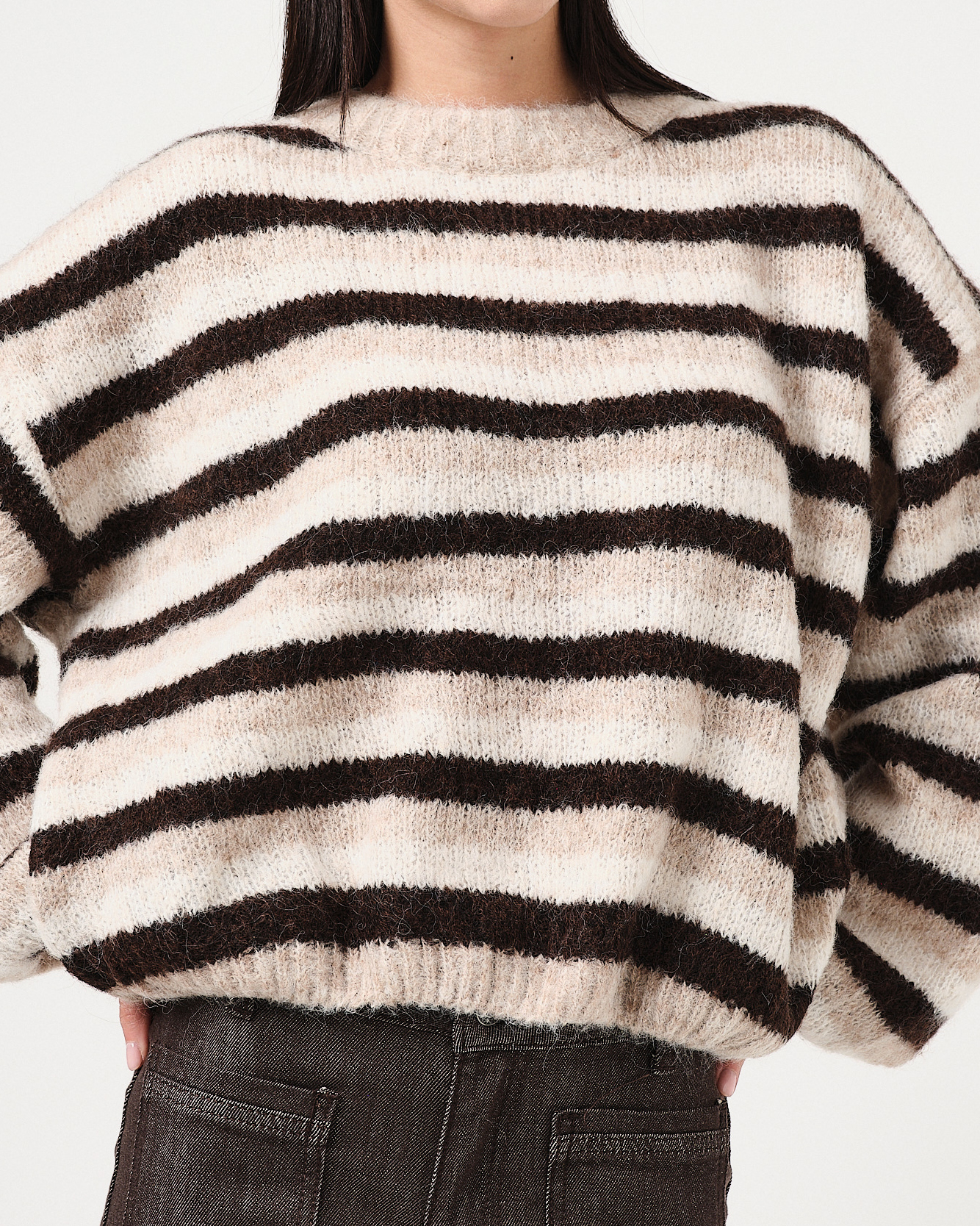 Pullover oversize in misto lana a righe con manica a palloncino.