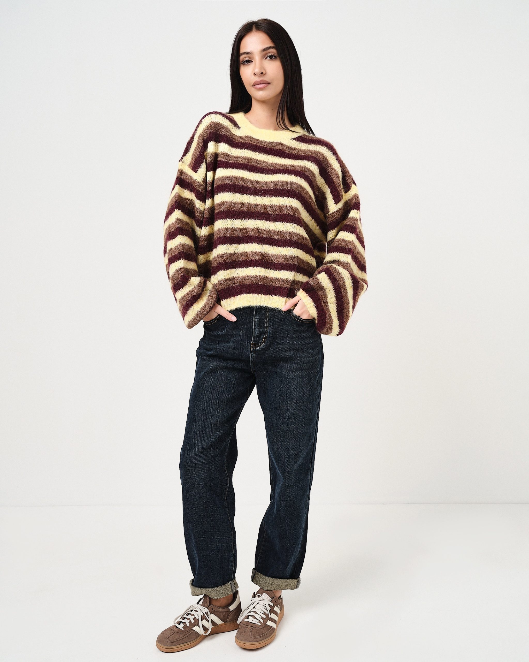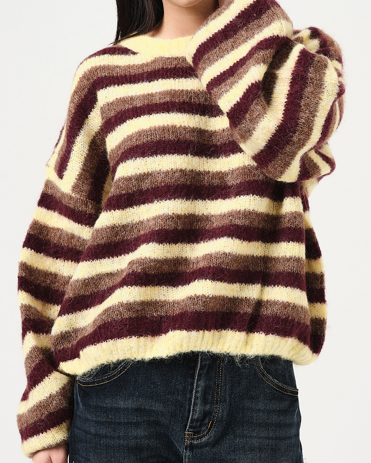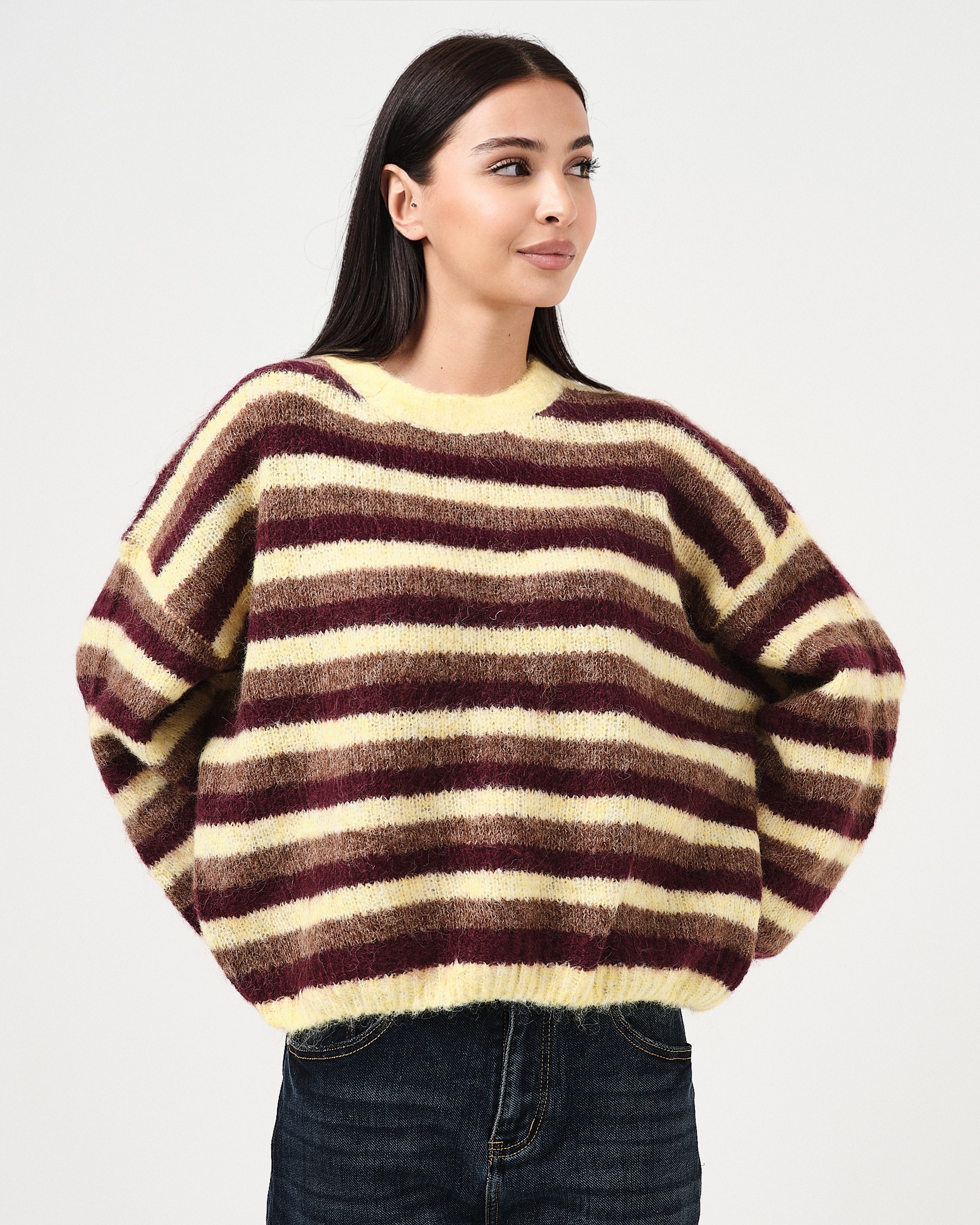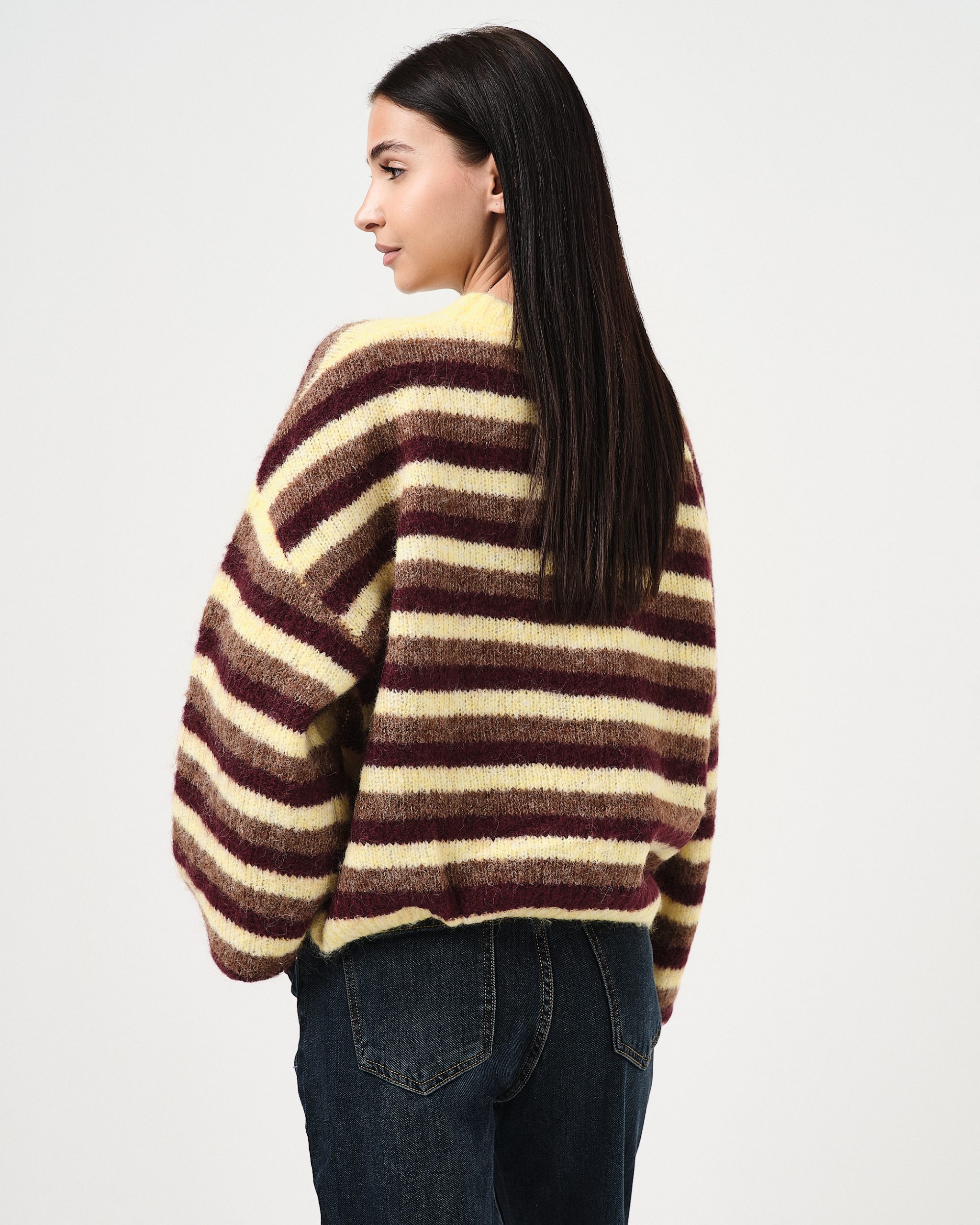 Pullover oversize in misto lana a righe con manica a palloncino.