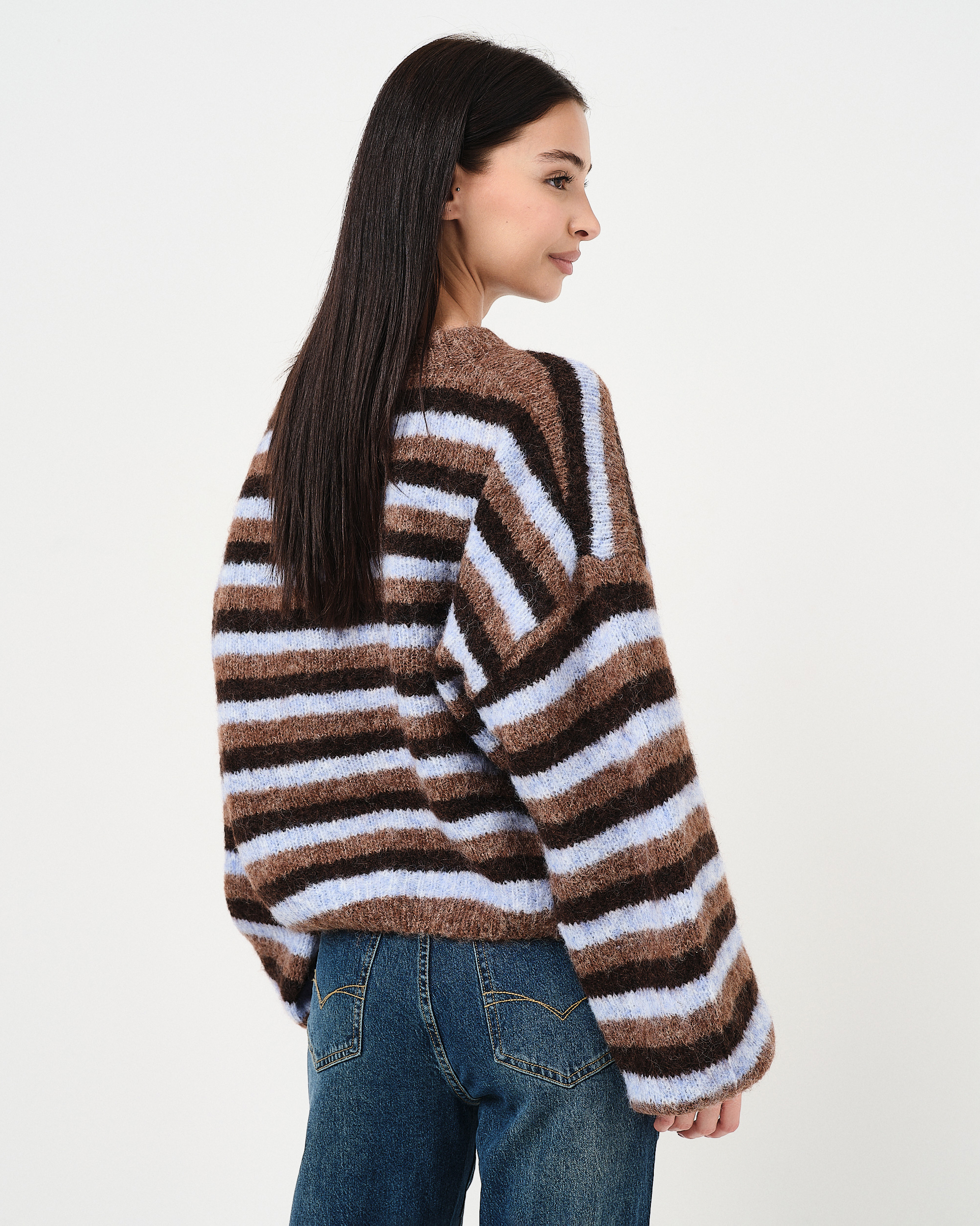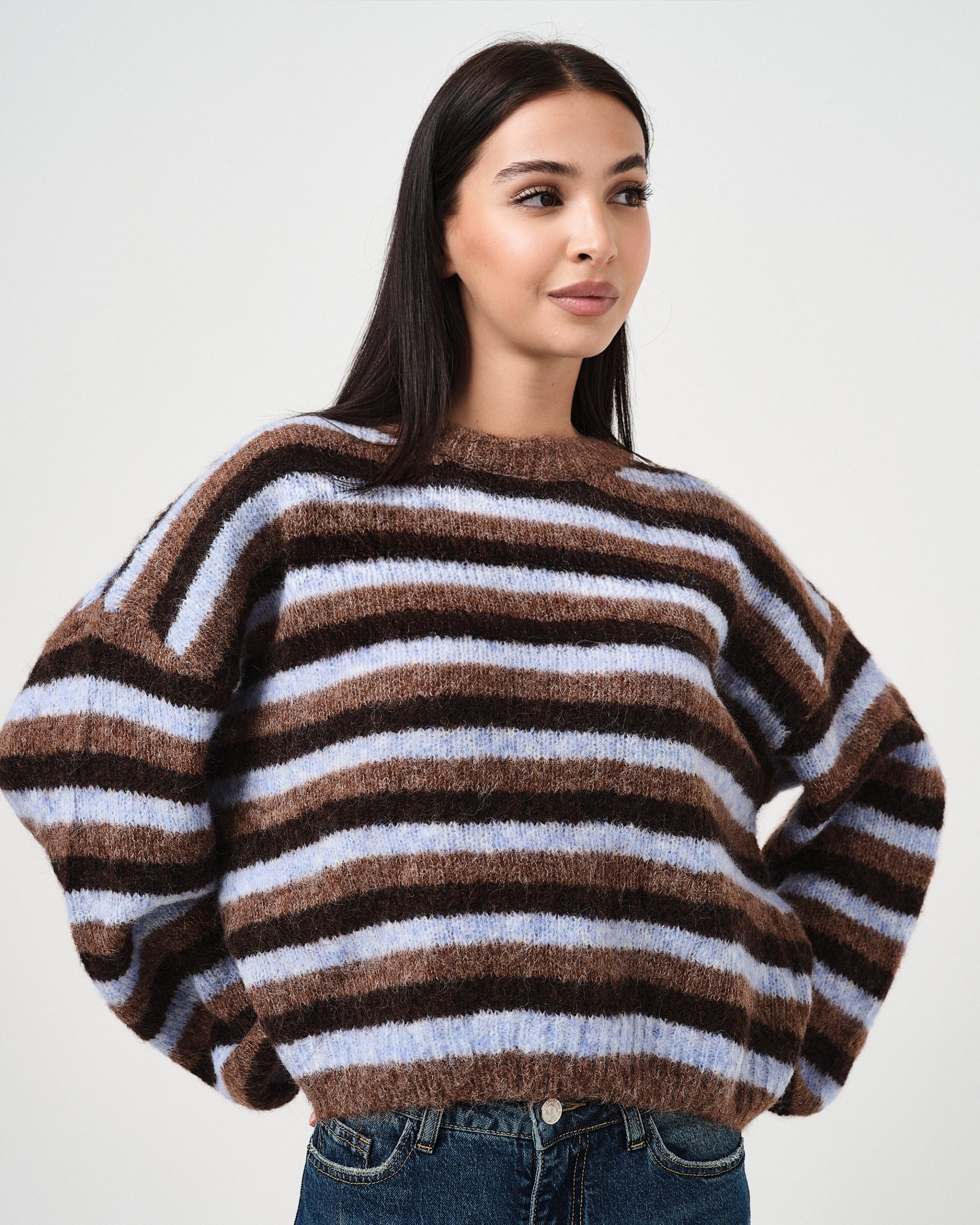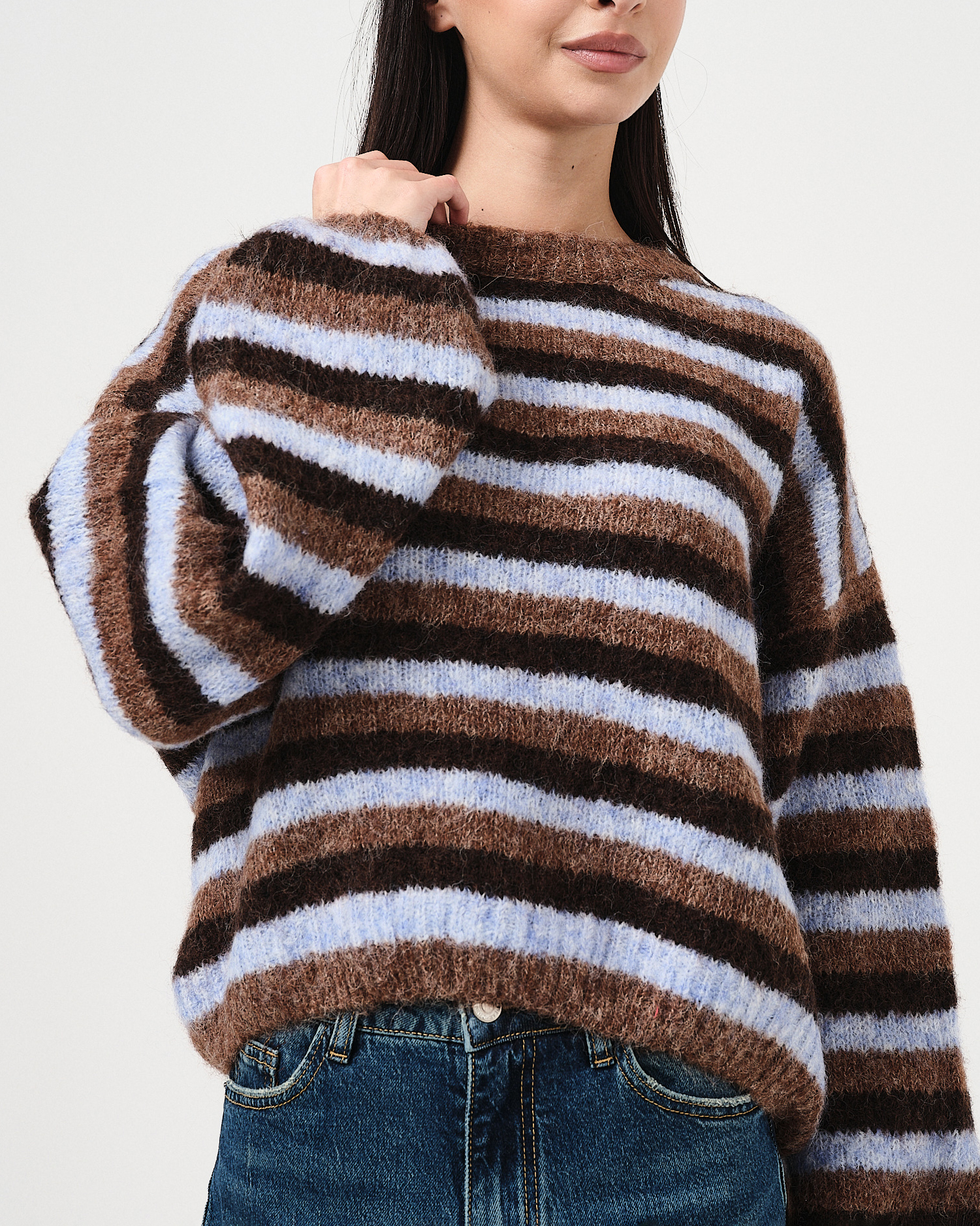 Pullover oversize in misto lana a righe con manica a palloncino.