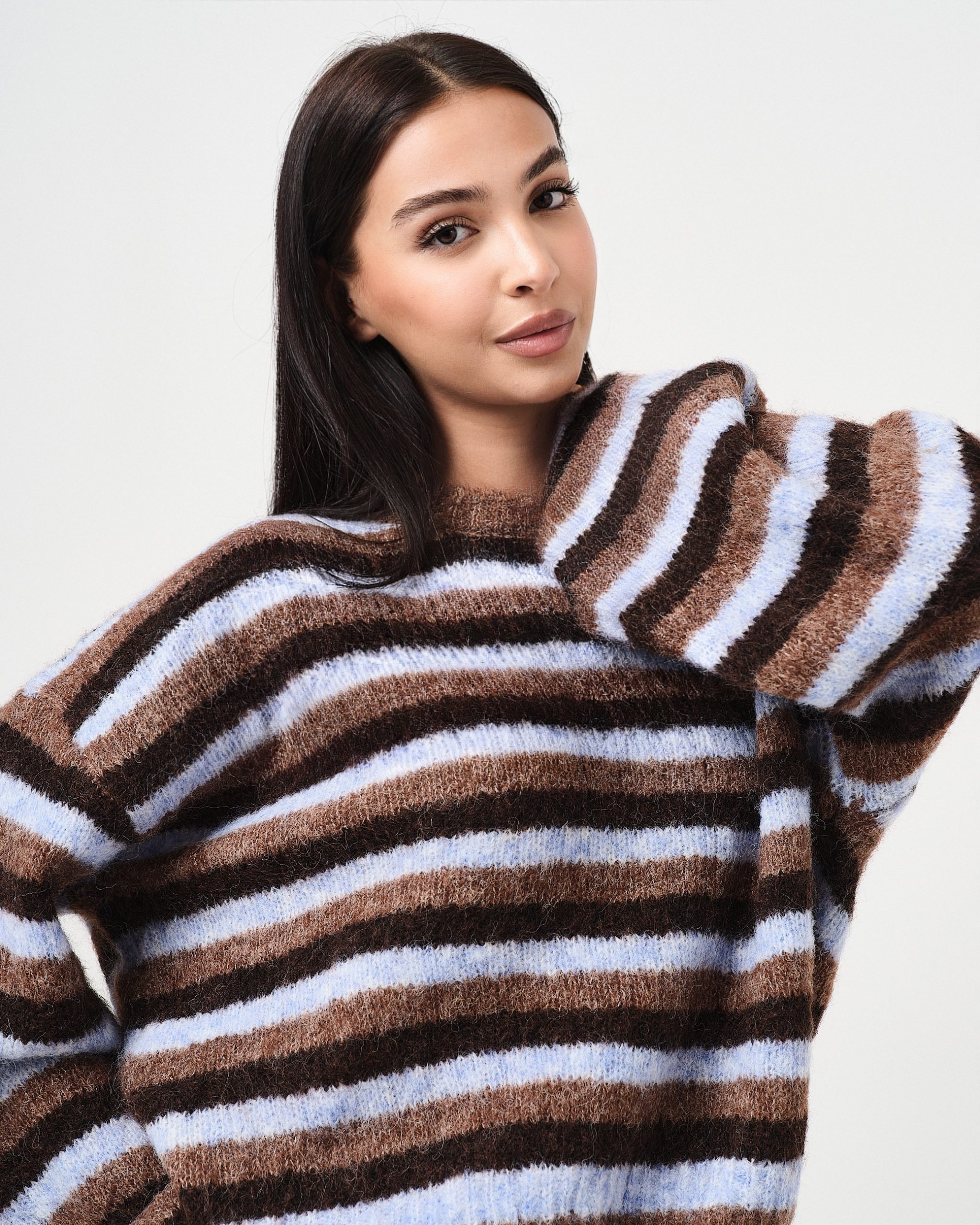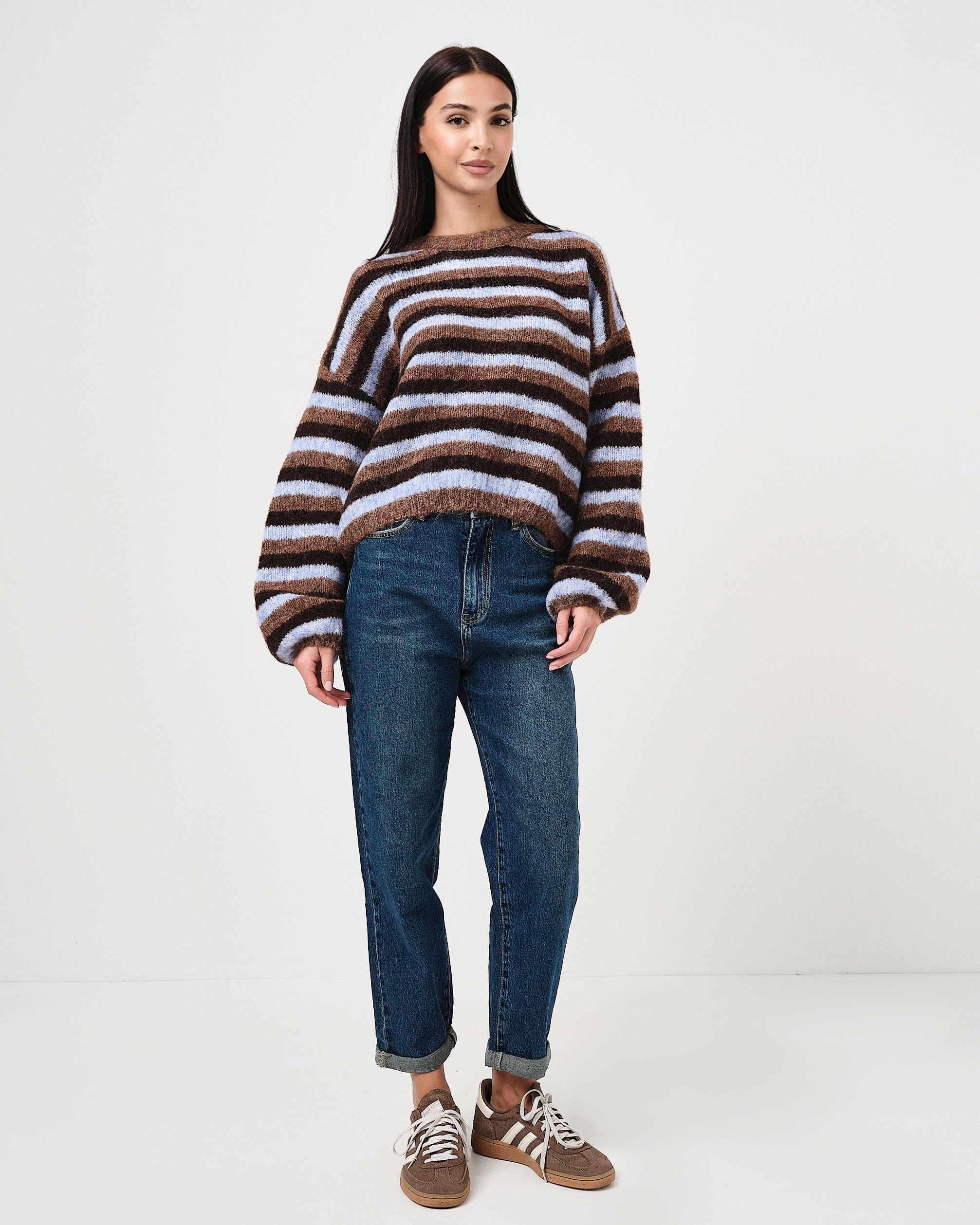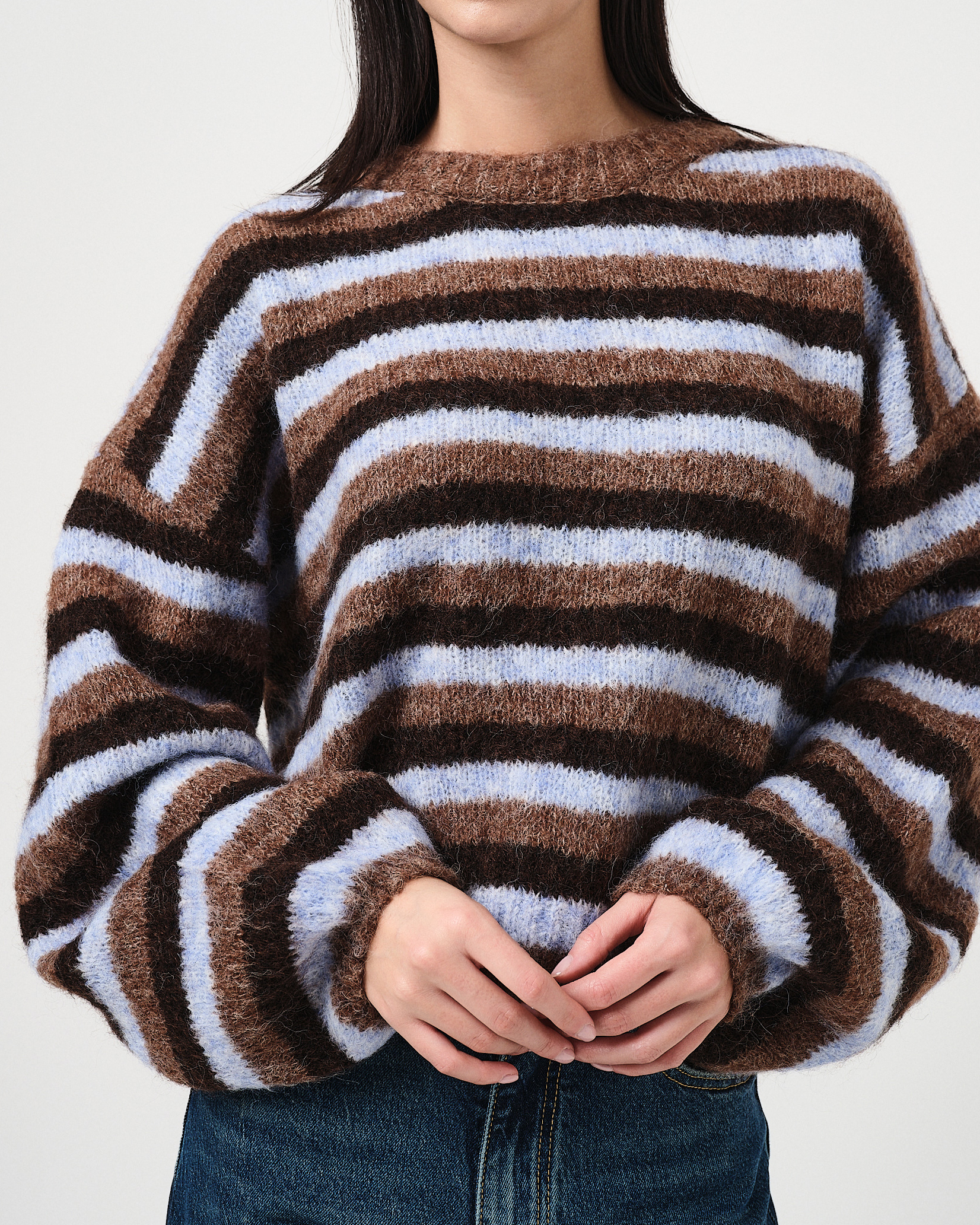 Pullover oversize in misto lana a righe con manica a palloncino.