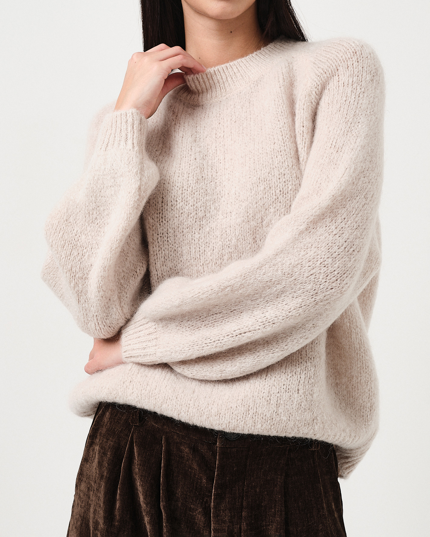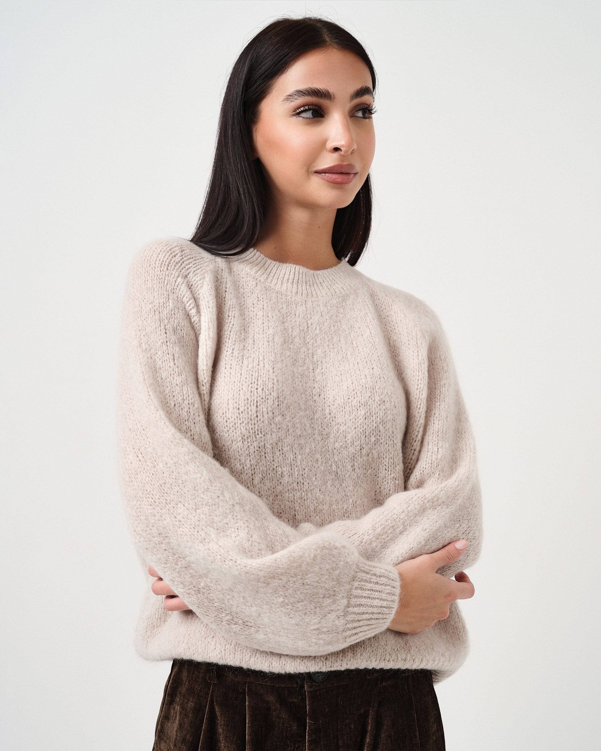 Pullover oversize a girocollo effetto fluffy con manica a palloncino.