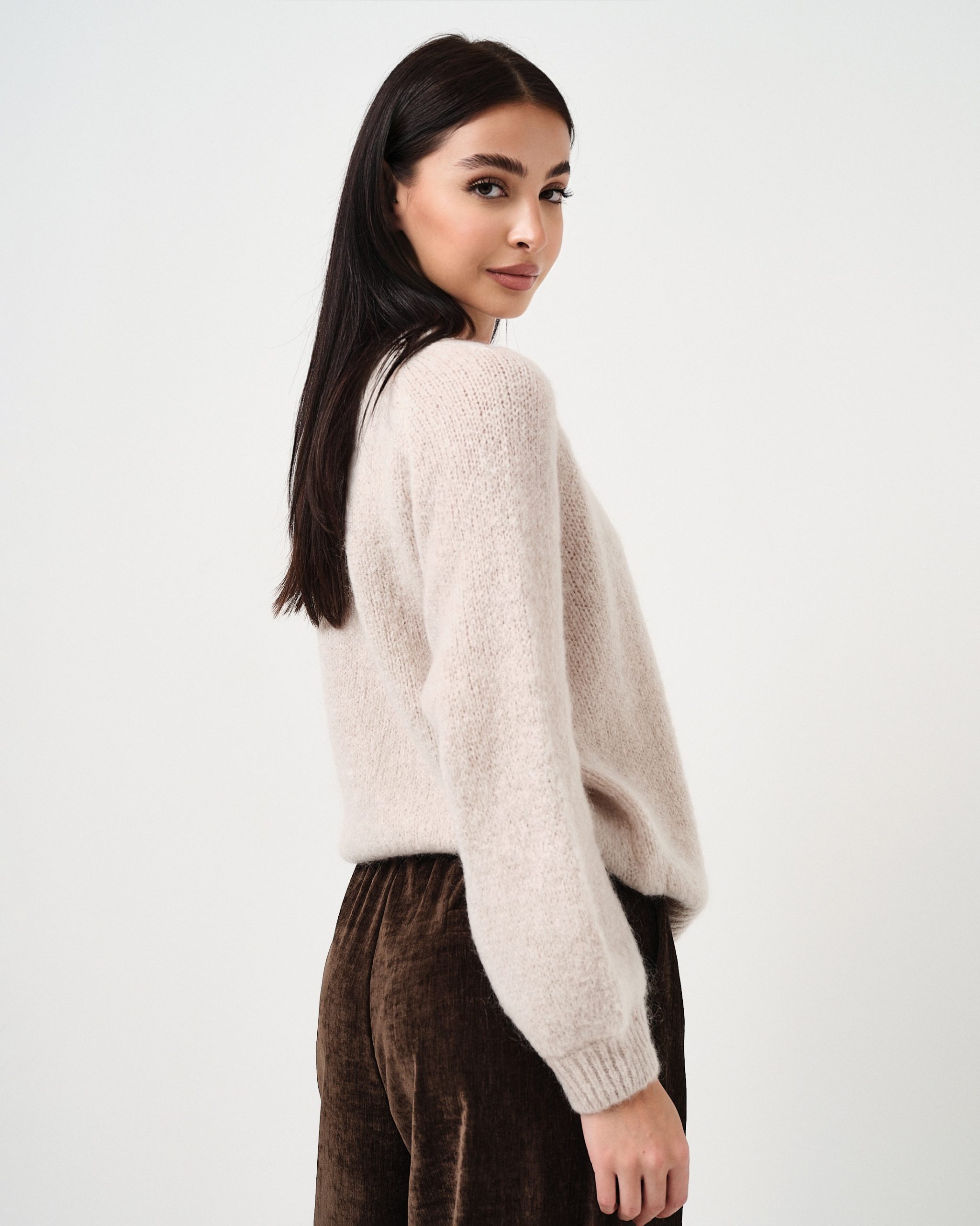 Pullover in lana con manica a palloncino