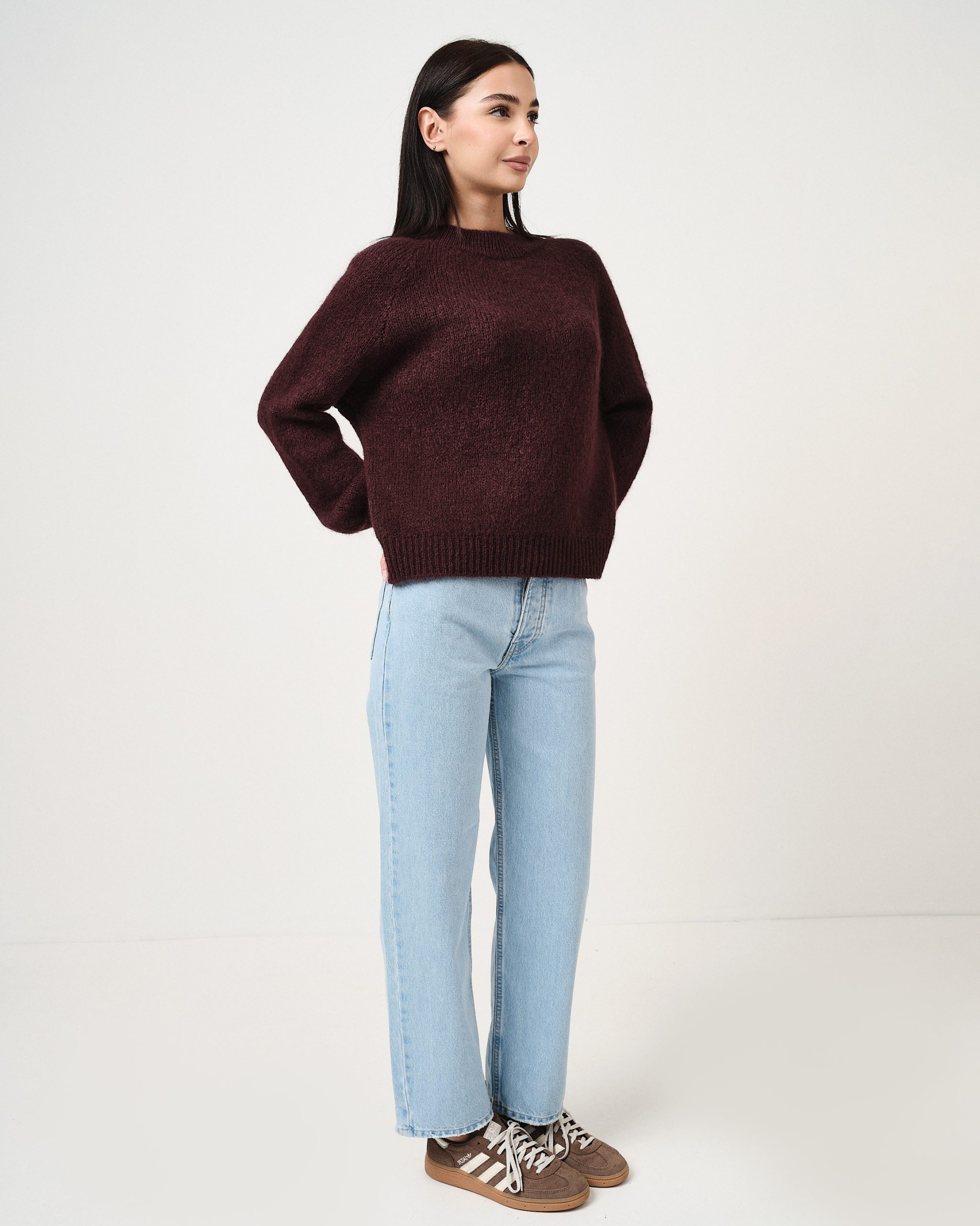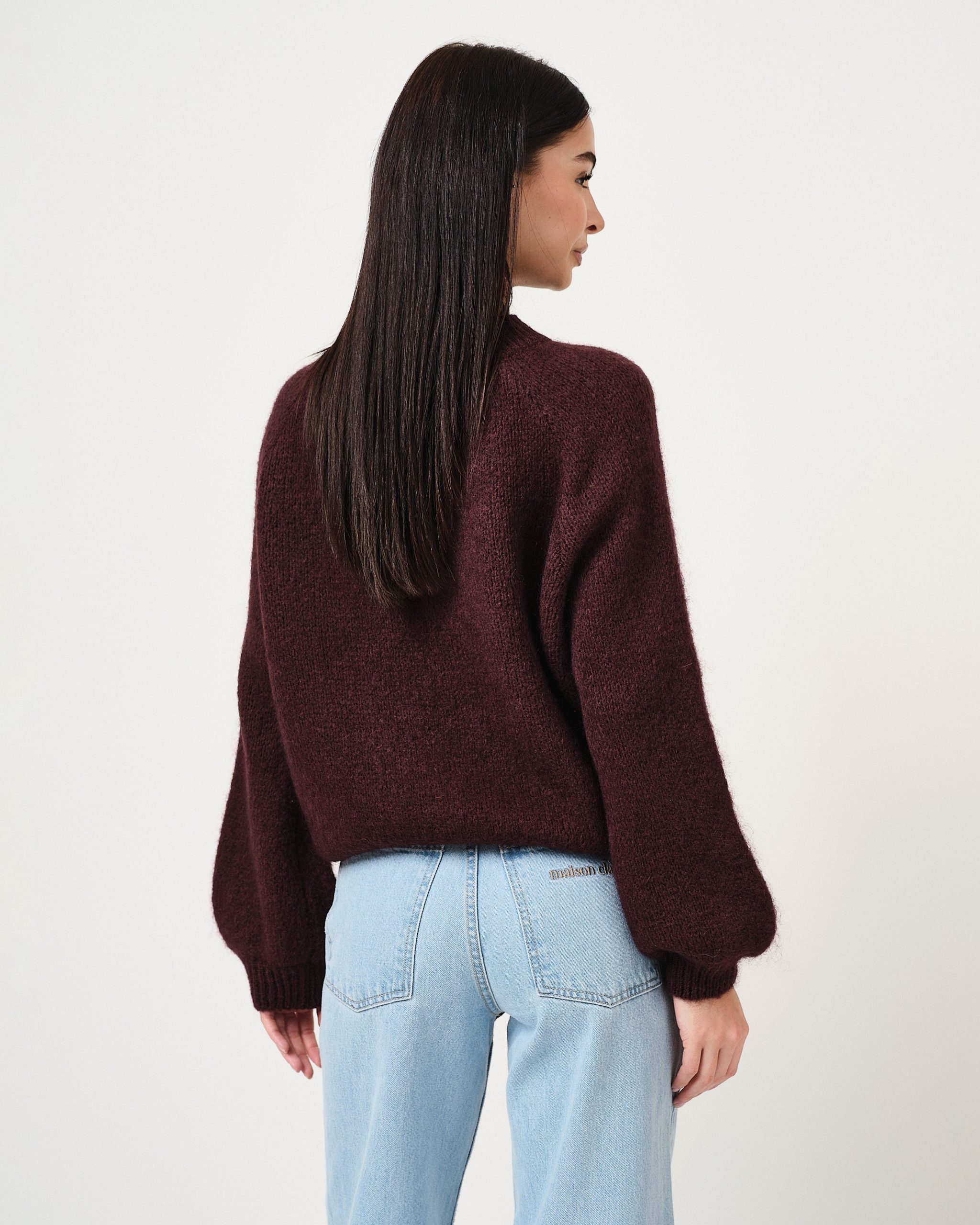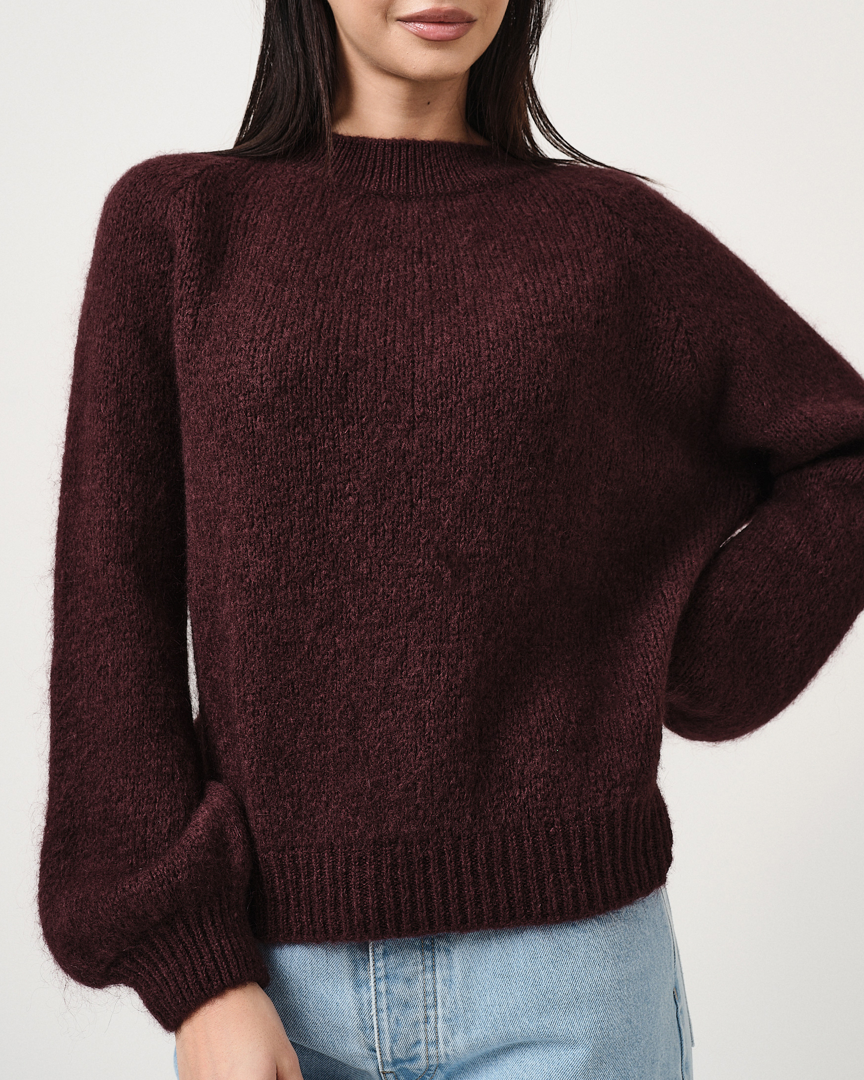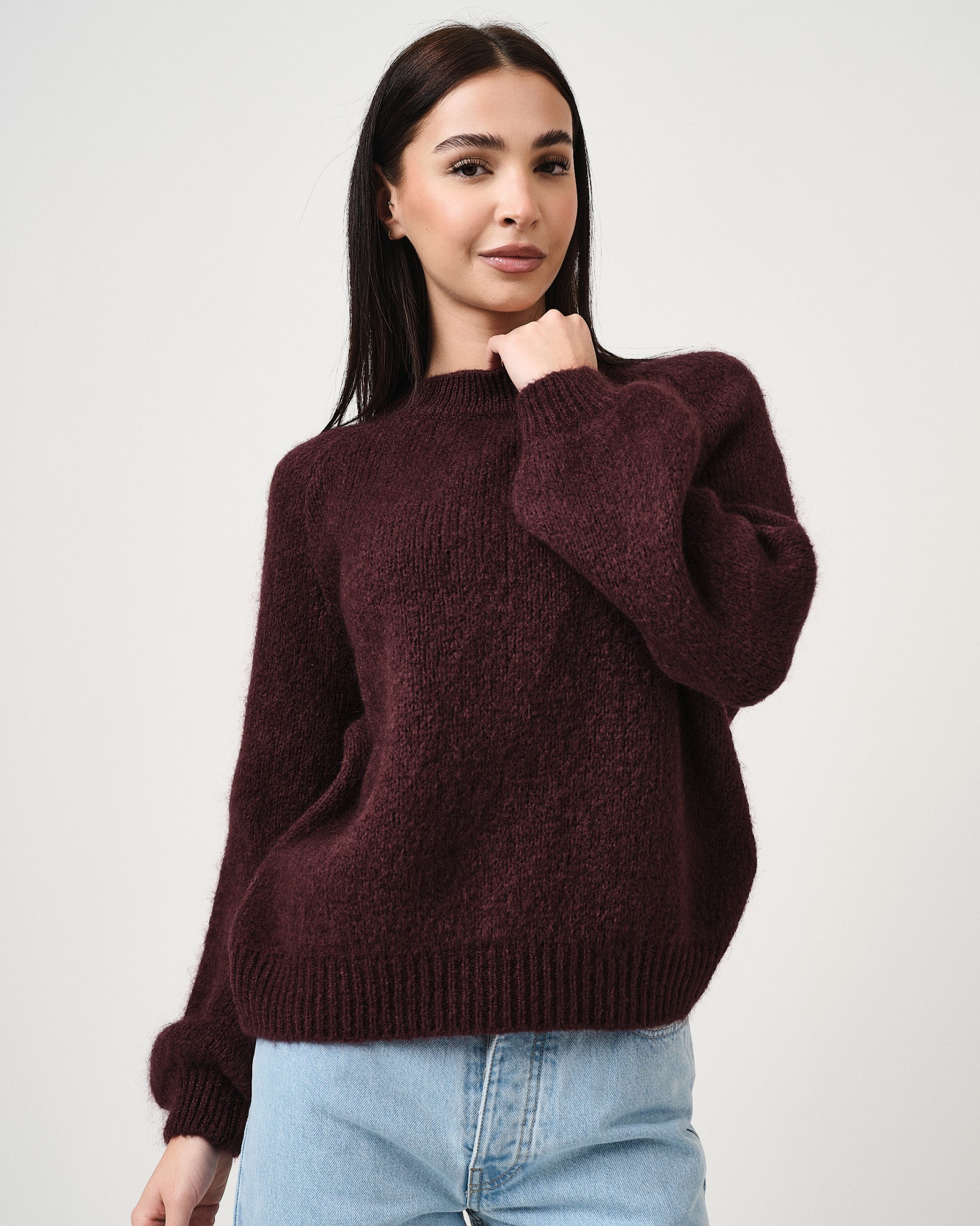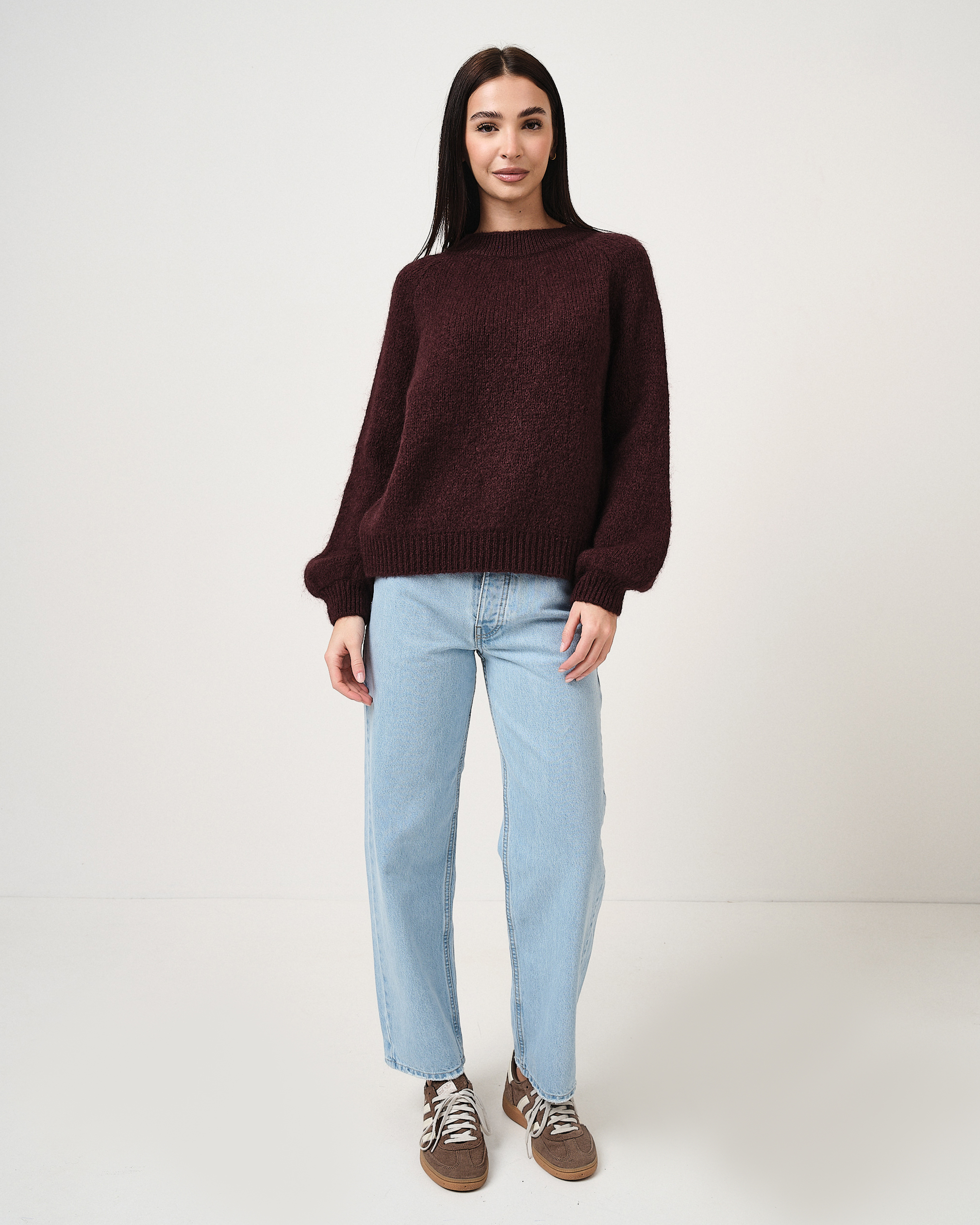 Pullover oversize a girocollo effetto fluffy con manica a palloncino.