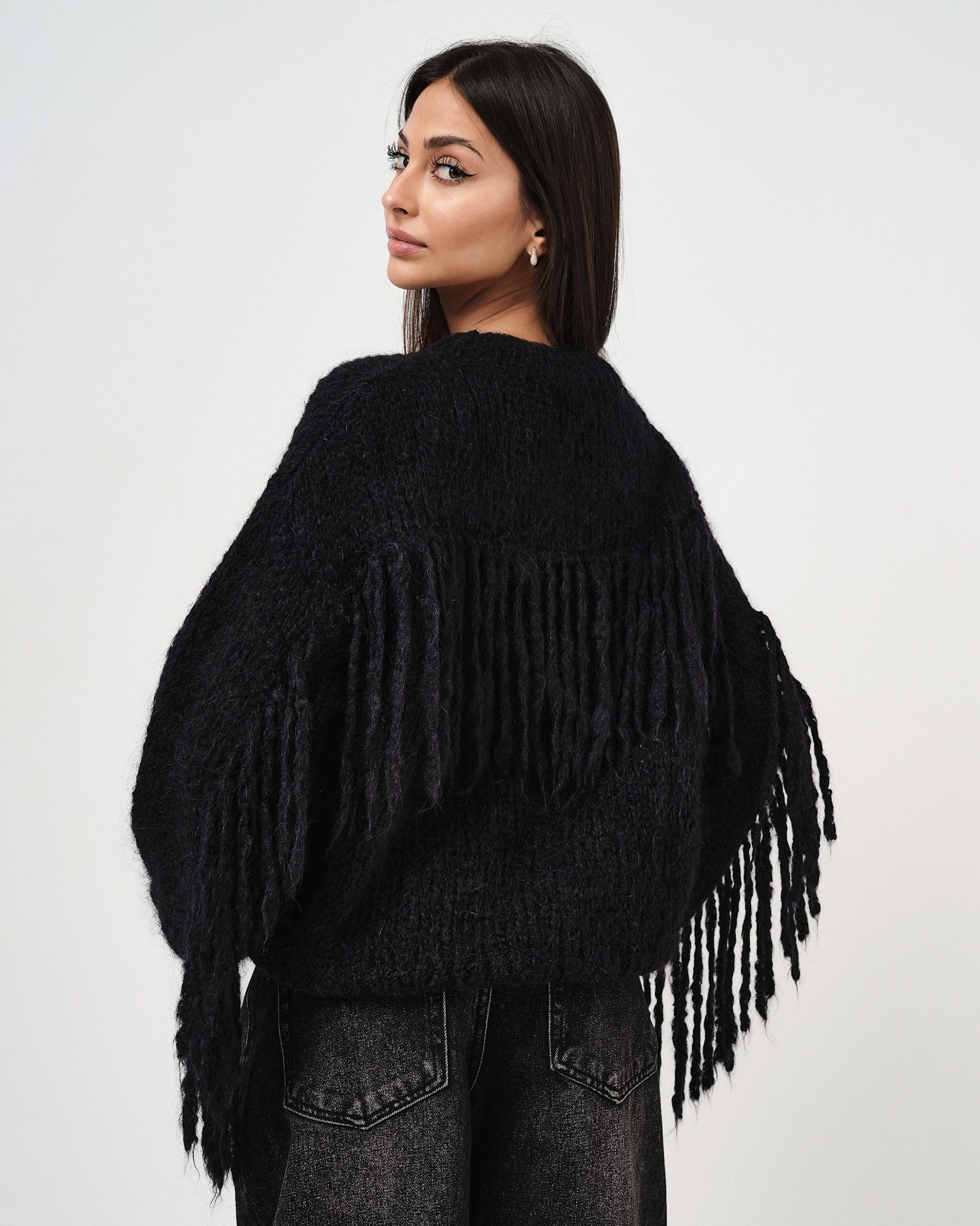 Pullover in mohair con frange