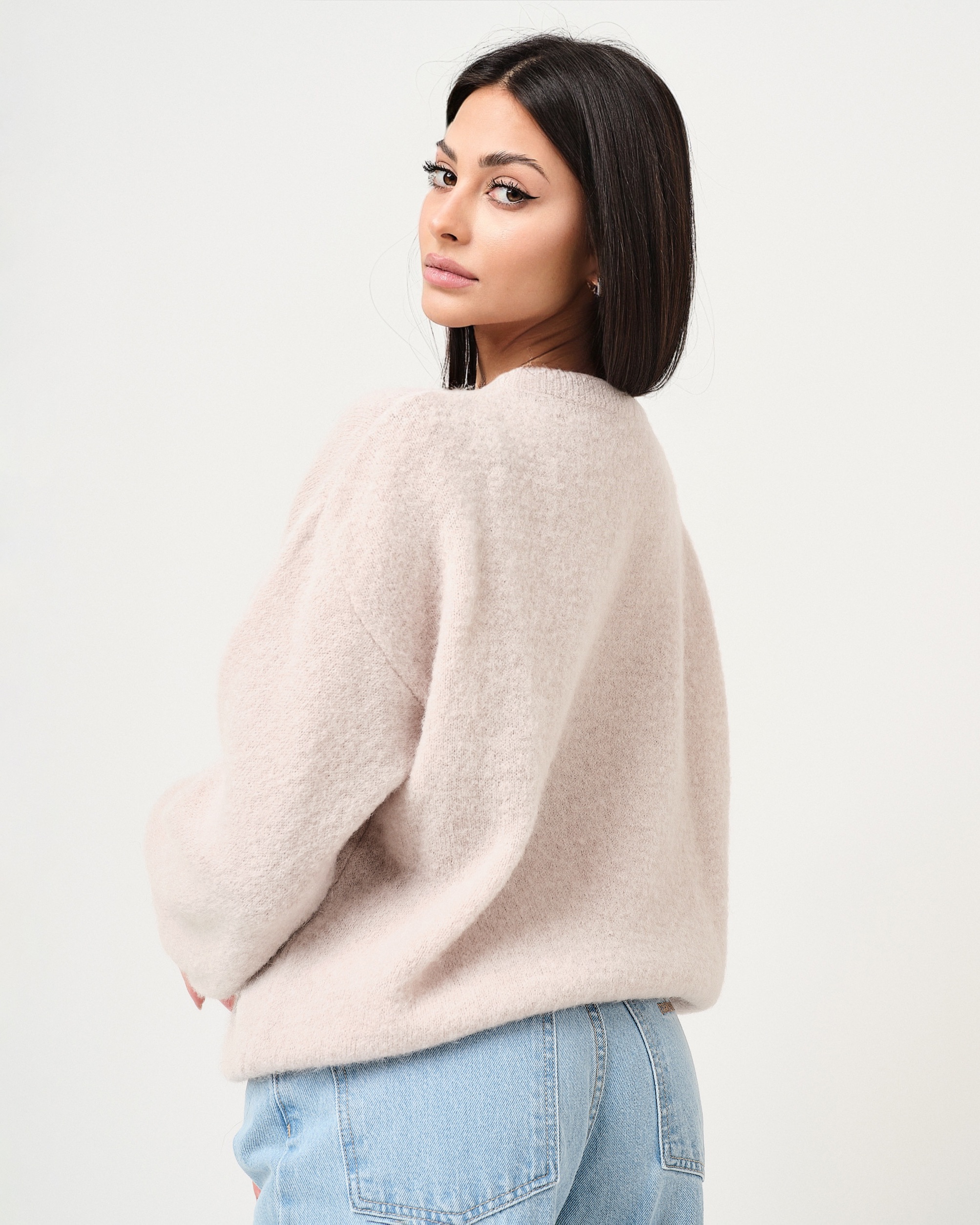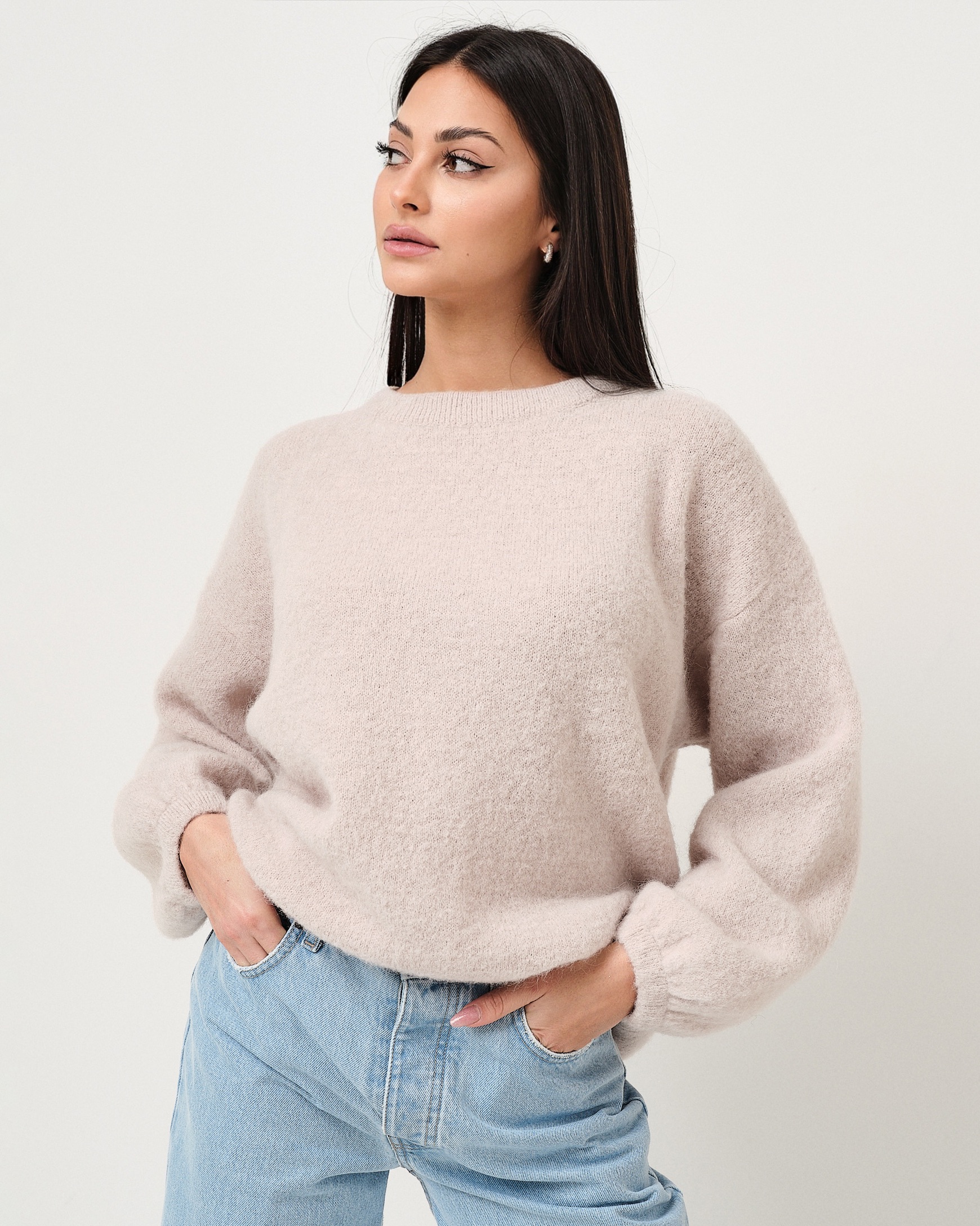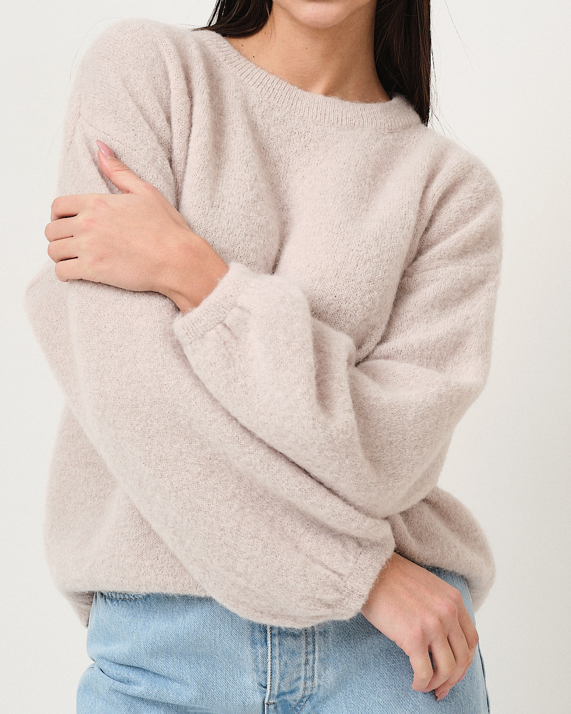 Pullover in misto lana mohair vestibilità ampia con manica a palloncino.