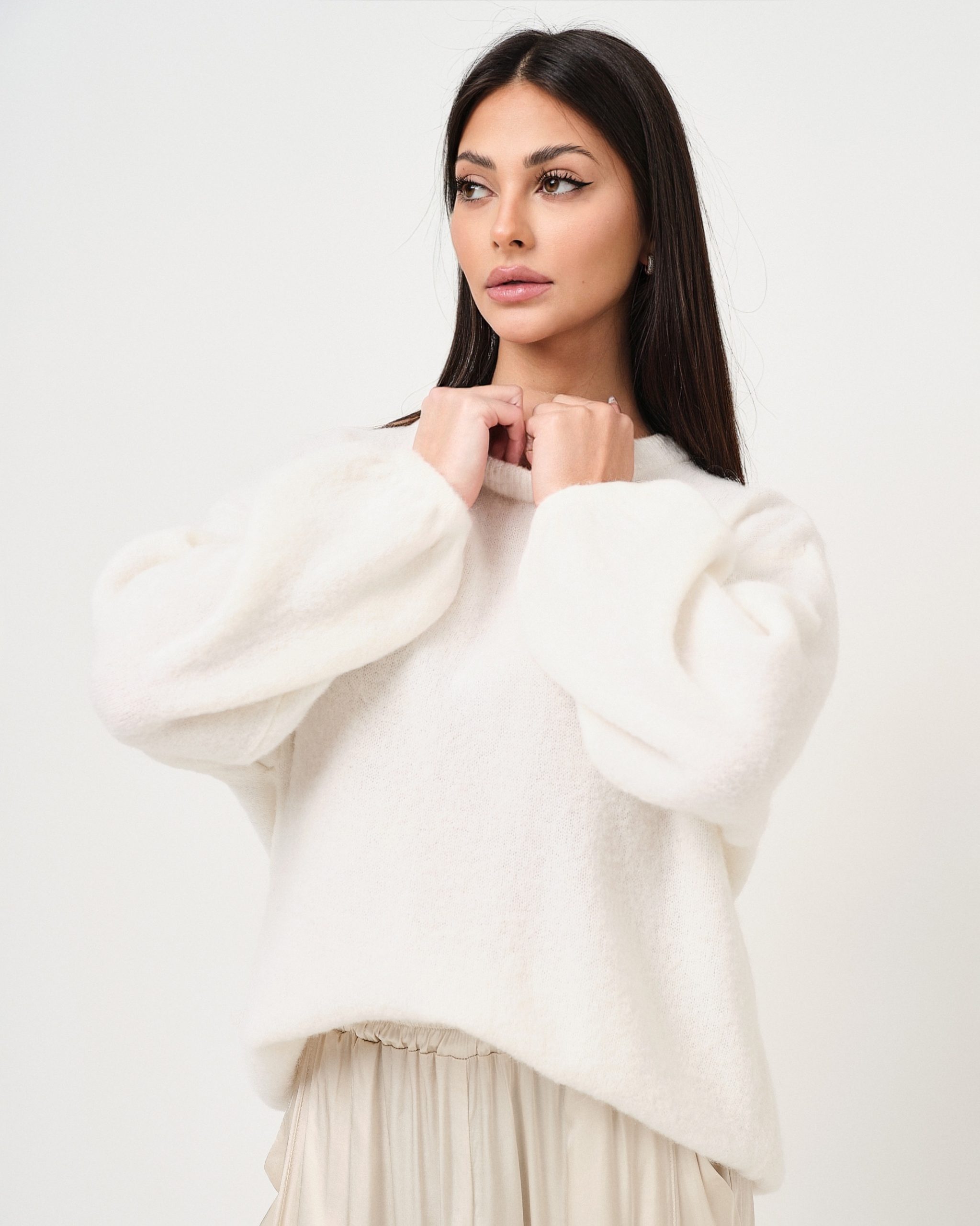 Pullover in misto lana mohair vestibilità ampia con manica a palloncino.