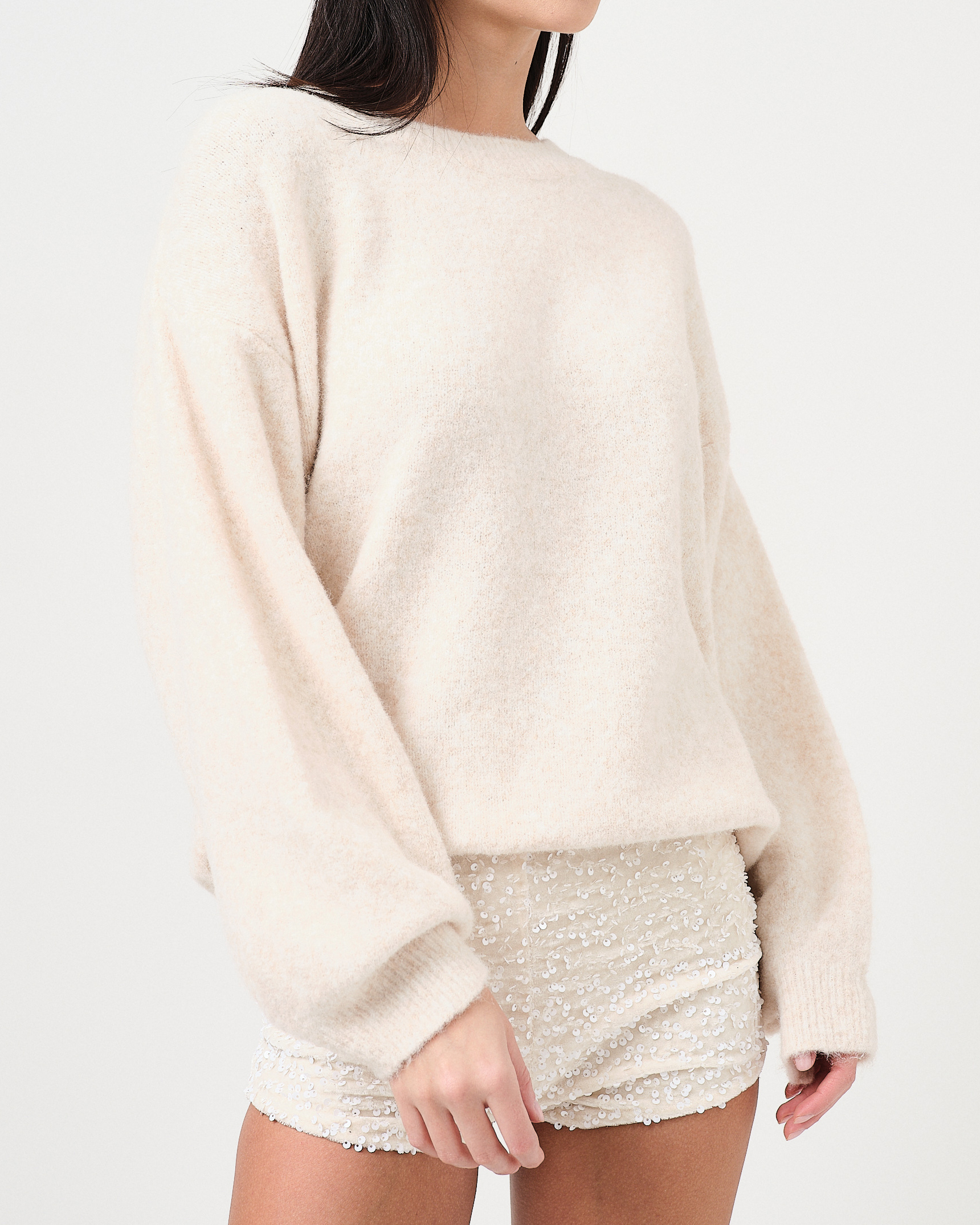 Pullover oversize a girocollo in misto lana e mohair con manica ampia a palloncino.