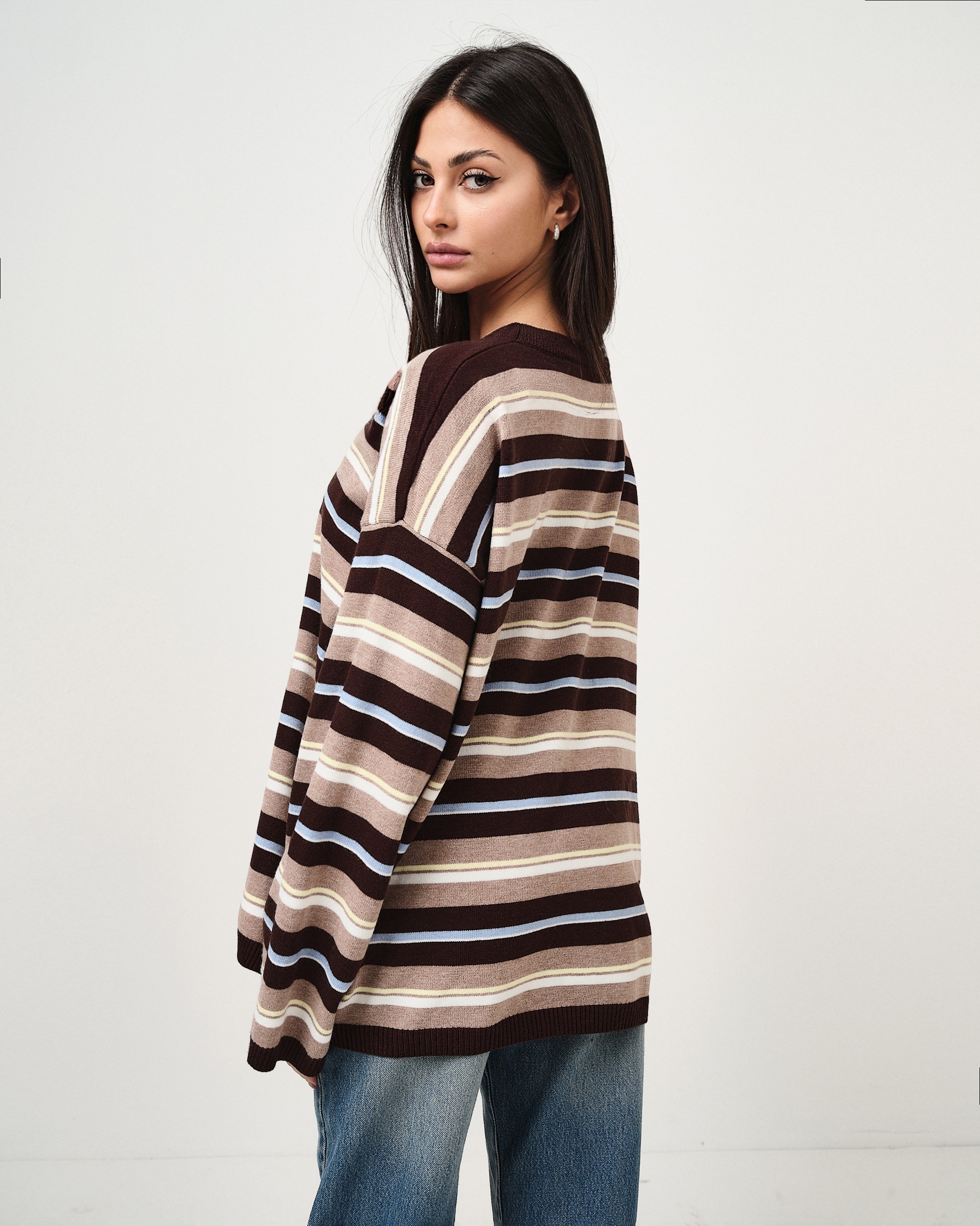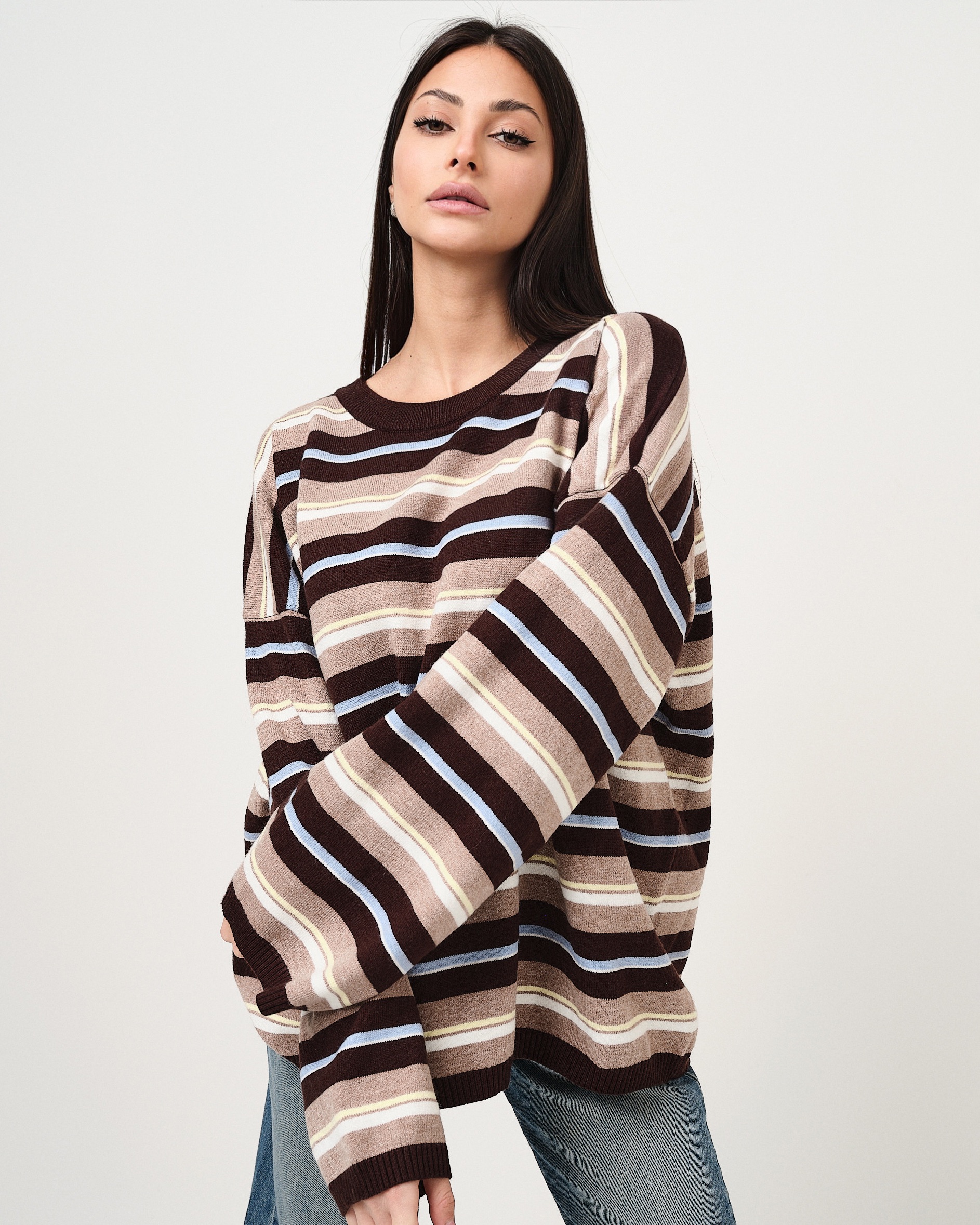 Maxi maglia oversize con fantasia a righe e manica ampia.