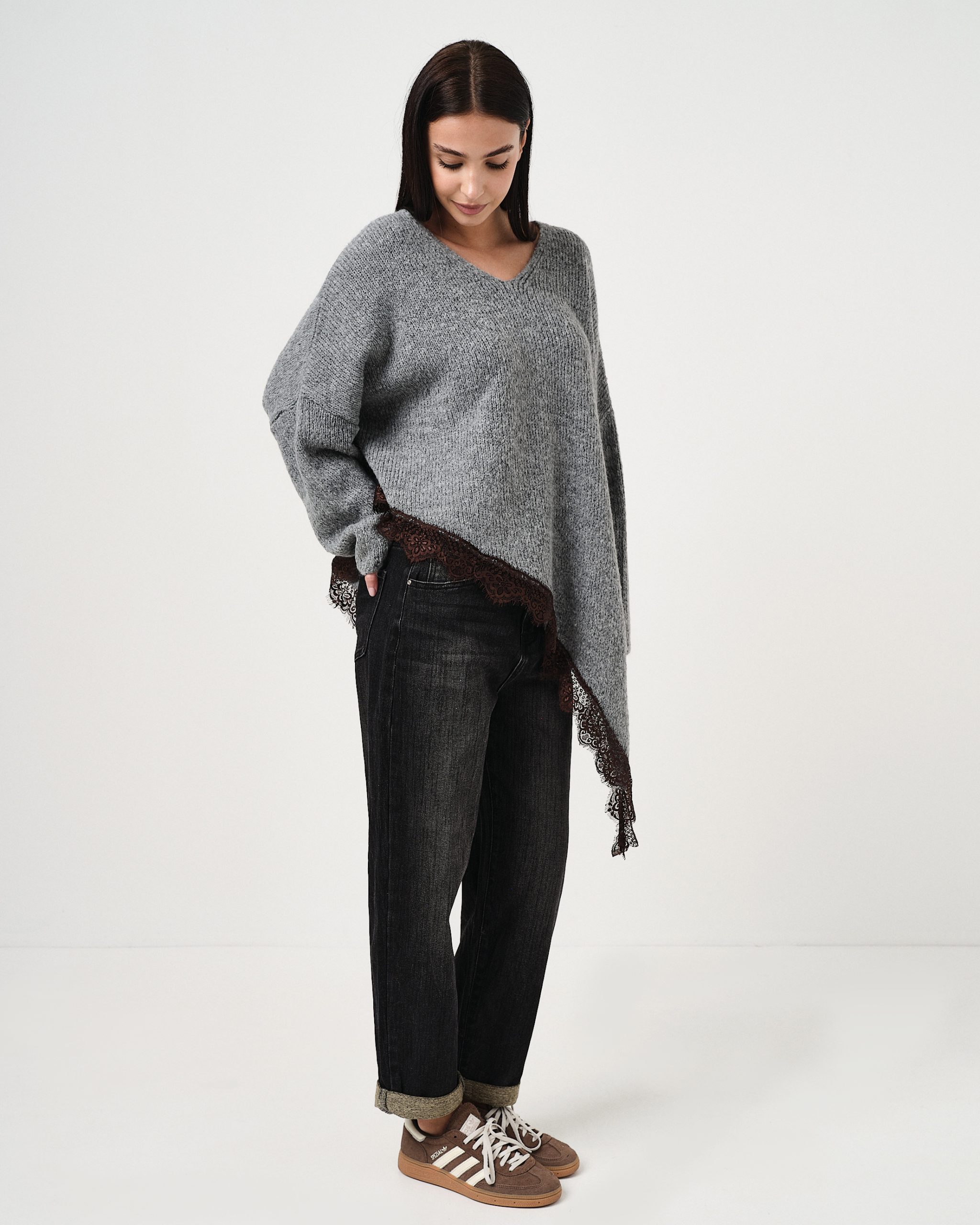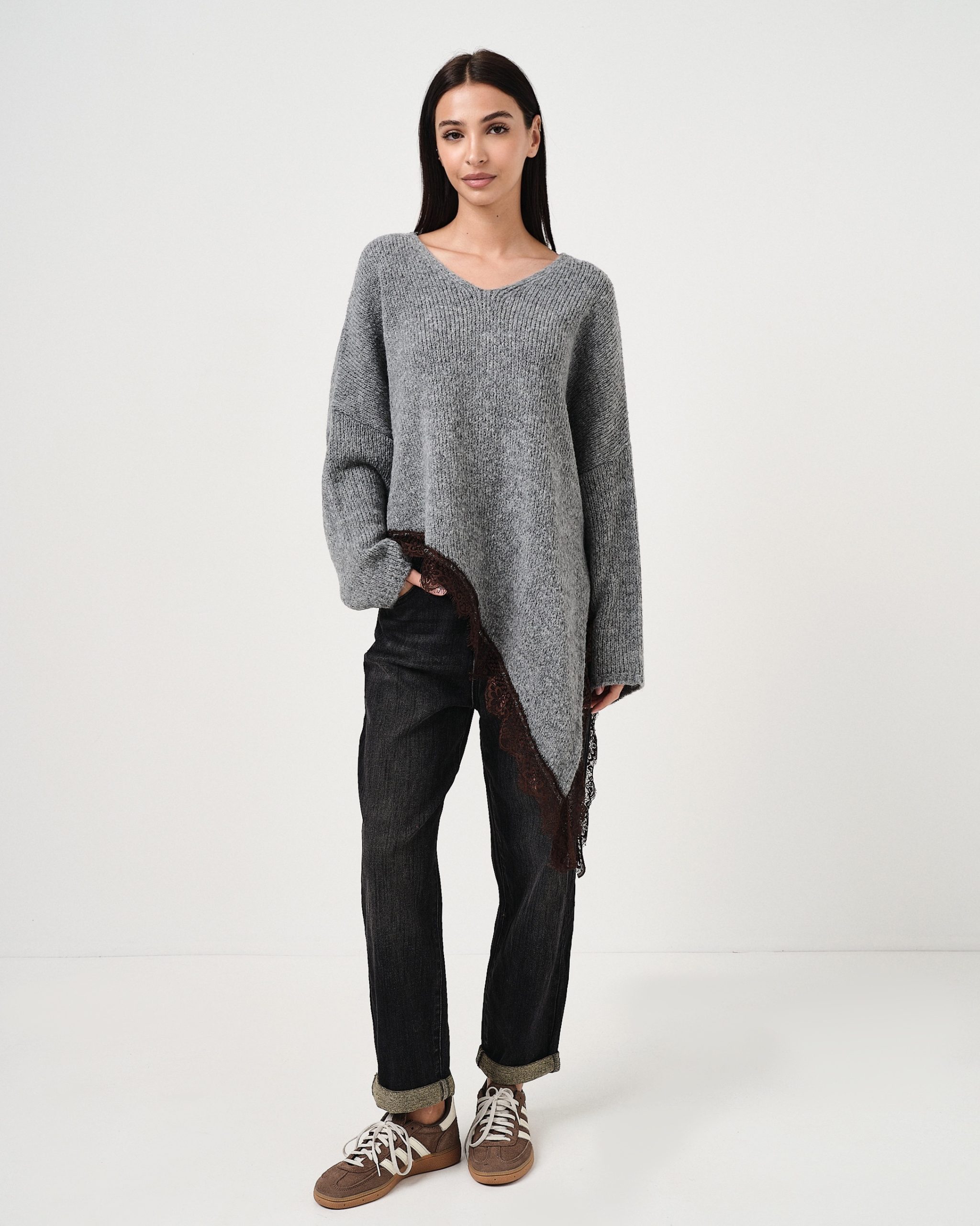 La modella è alta 1,73m e indossa la taglia UNI.