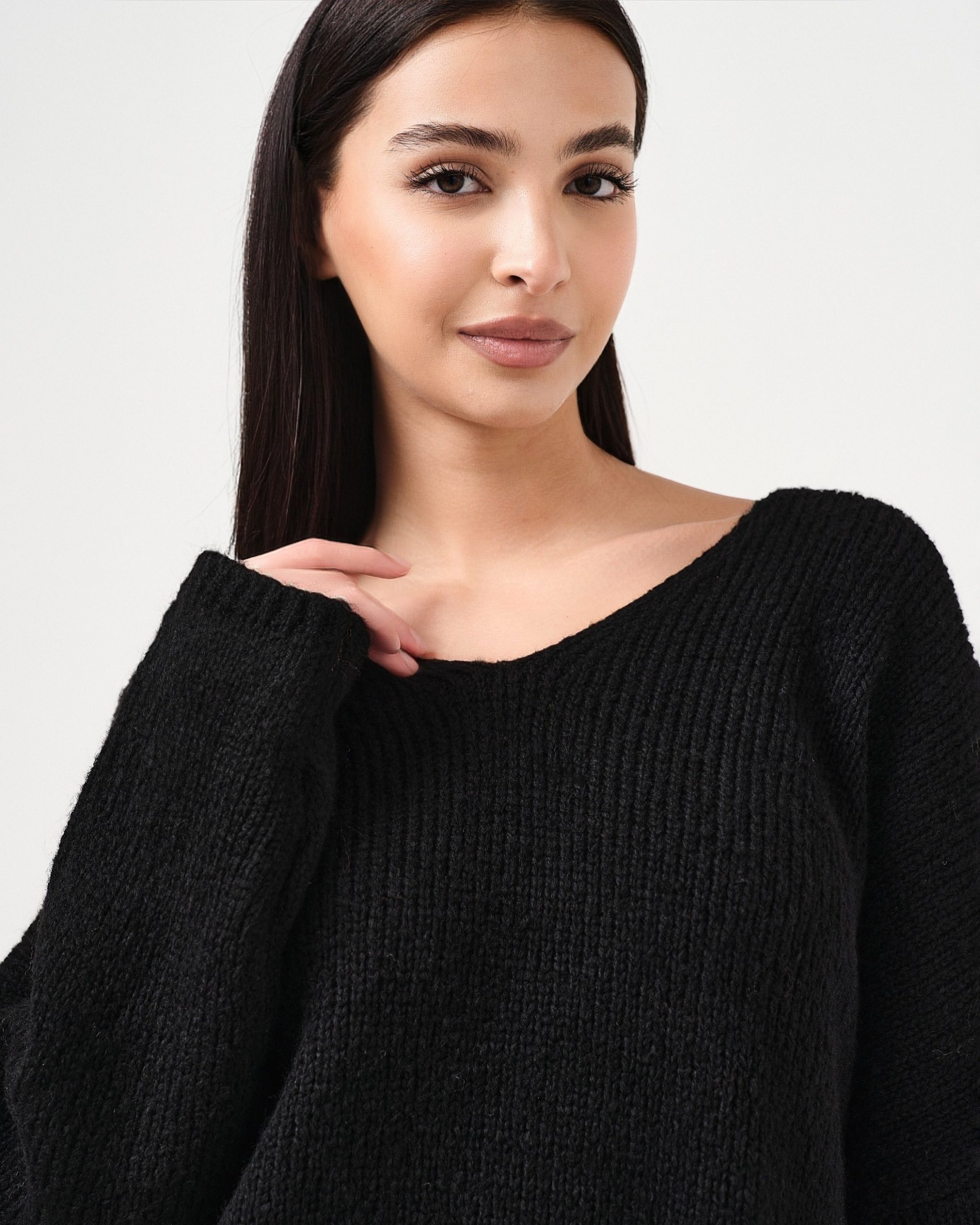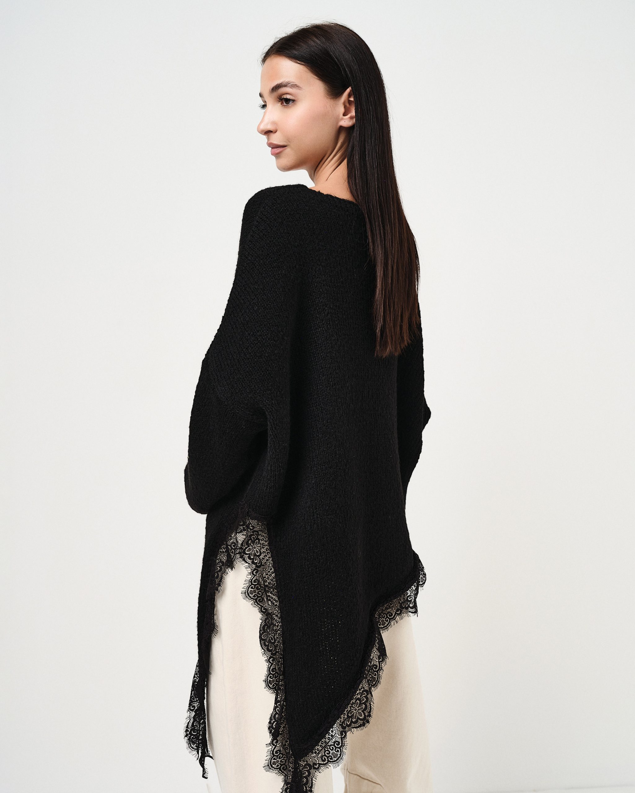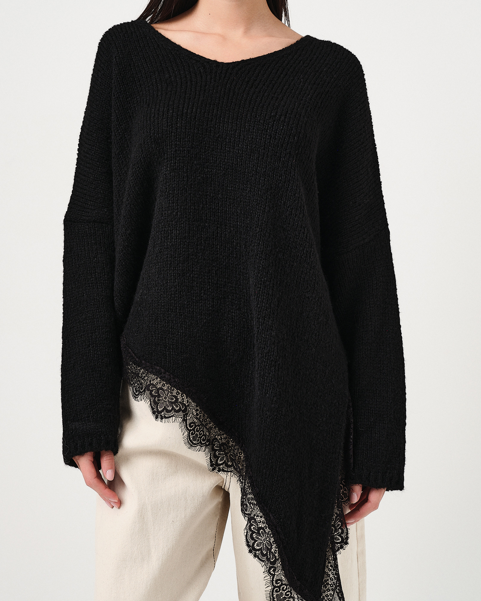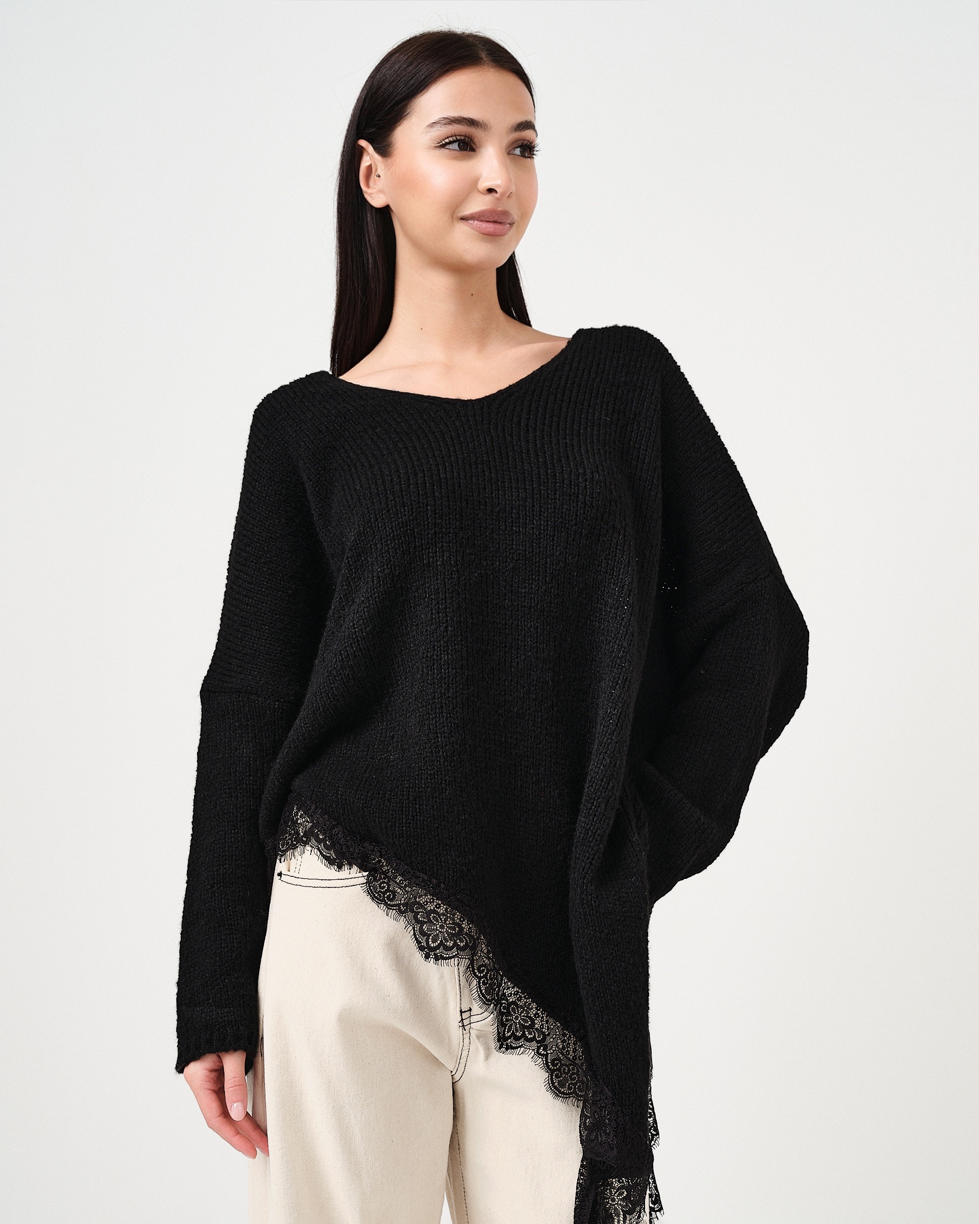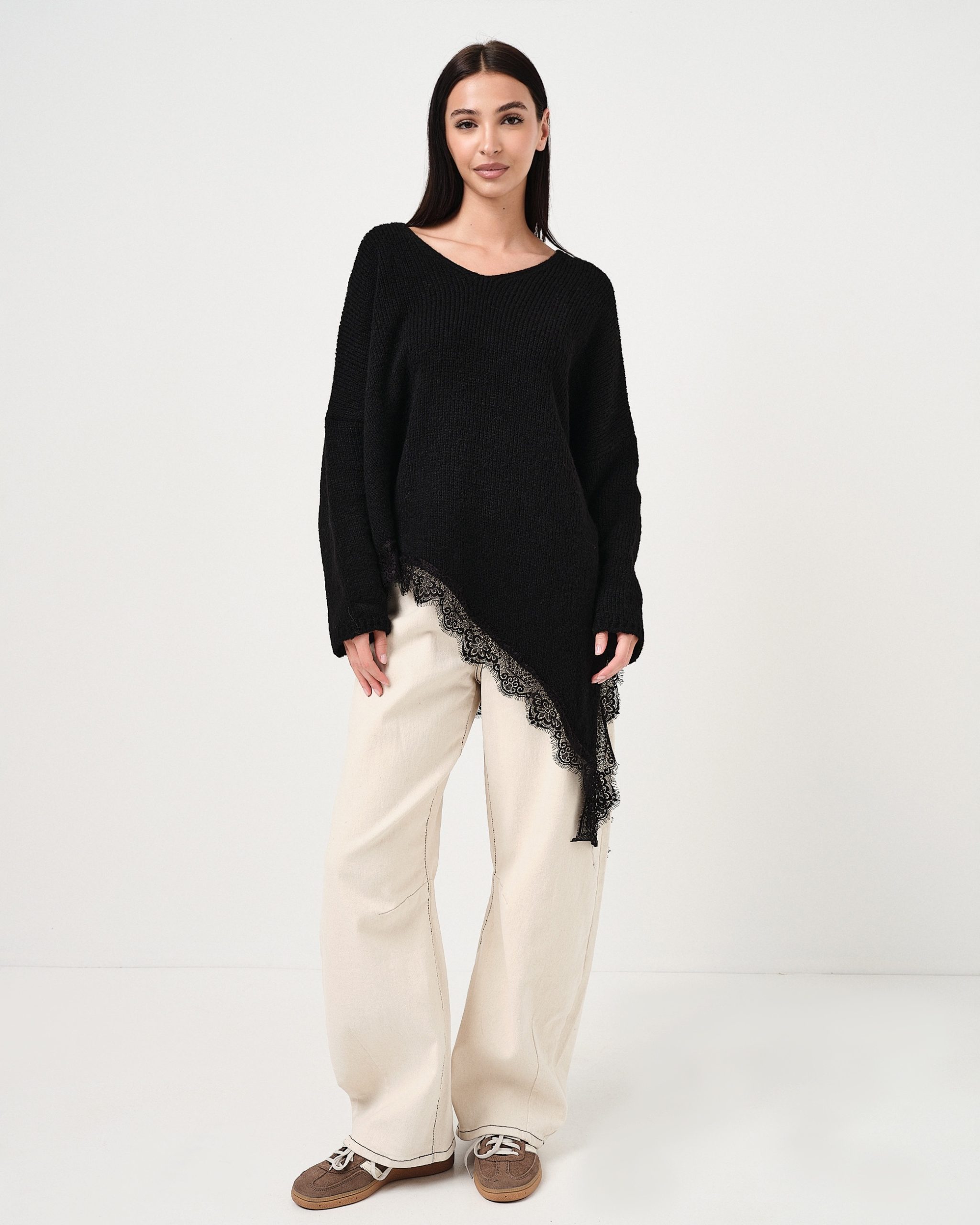 Pullover oversize con fondo svasato, scollo a V e inserto in pizzo.